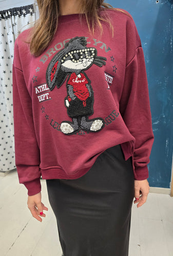 Felpa Paricollo Pietre Scollatura Cotone Felpato