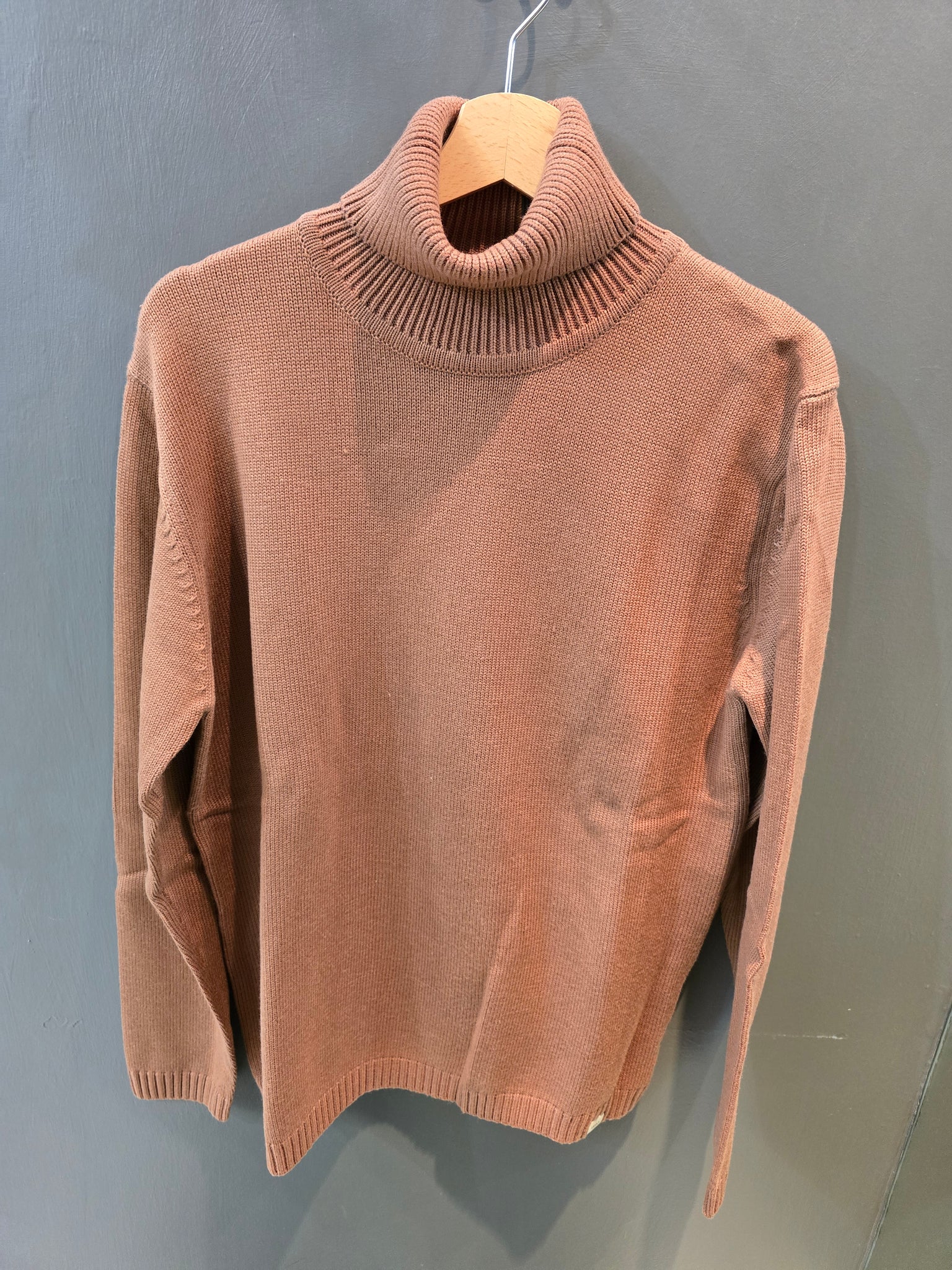 Calore delizioso che coccola! Questa maglia dolcevita media pesantezza biscotto è perfetta per look casual caldi e golosi.