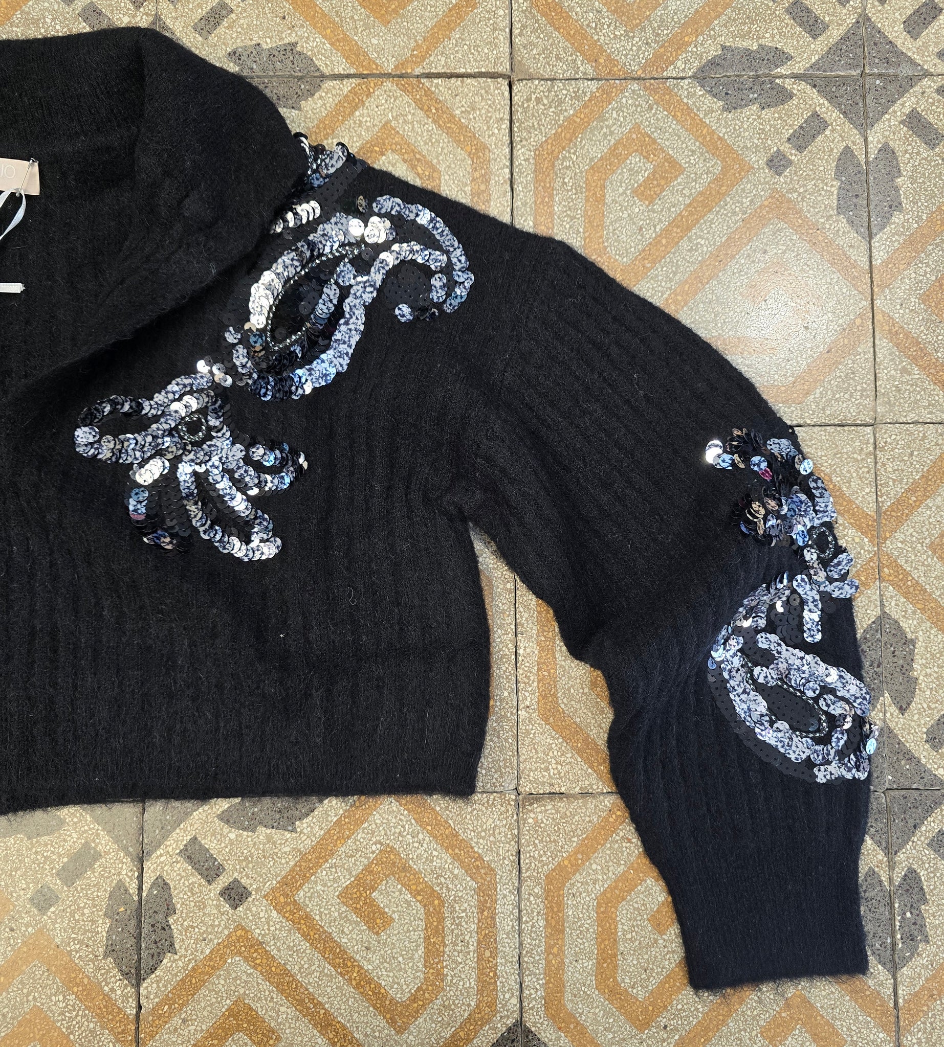 Sporty glam che brilla con stile! Questa maglia corta polo con paillettes nera taglia 42 è perfetta per aggiungere luce ai look casual.