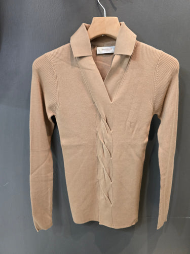 Maglia Filo Paillettes Paricollo Trecce Rosa Chiaro