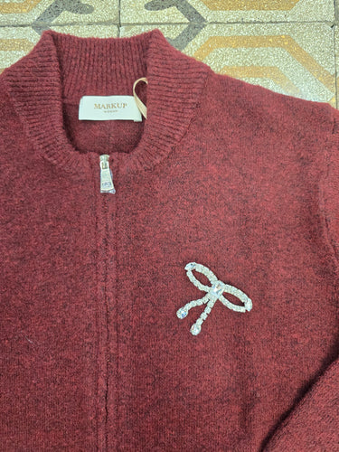 Maglia Lana Bomber Corto Zip Spilla Strass