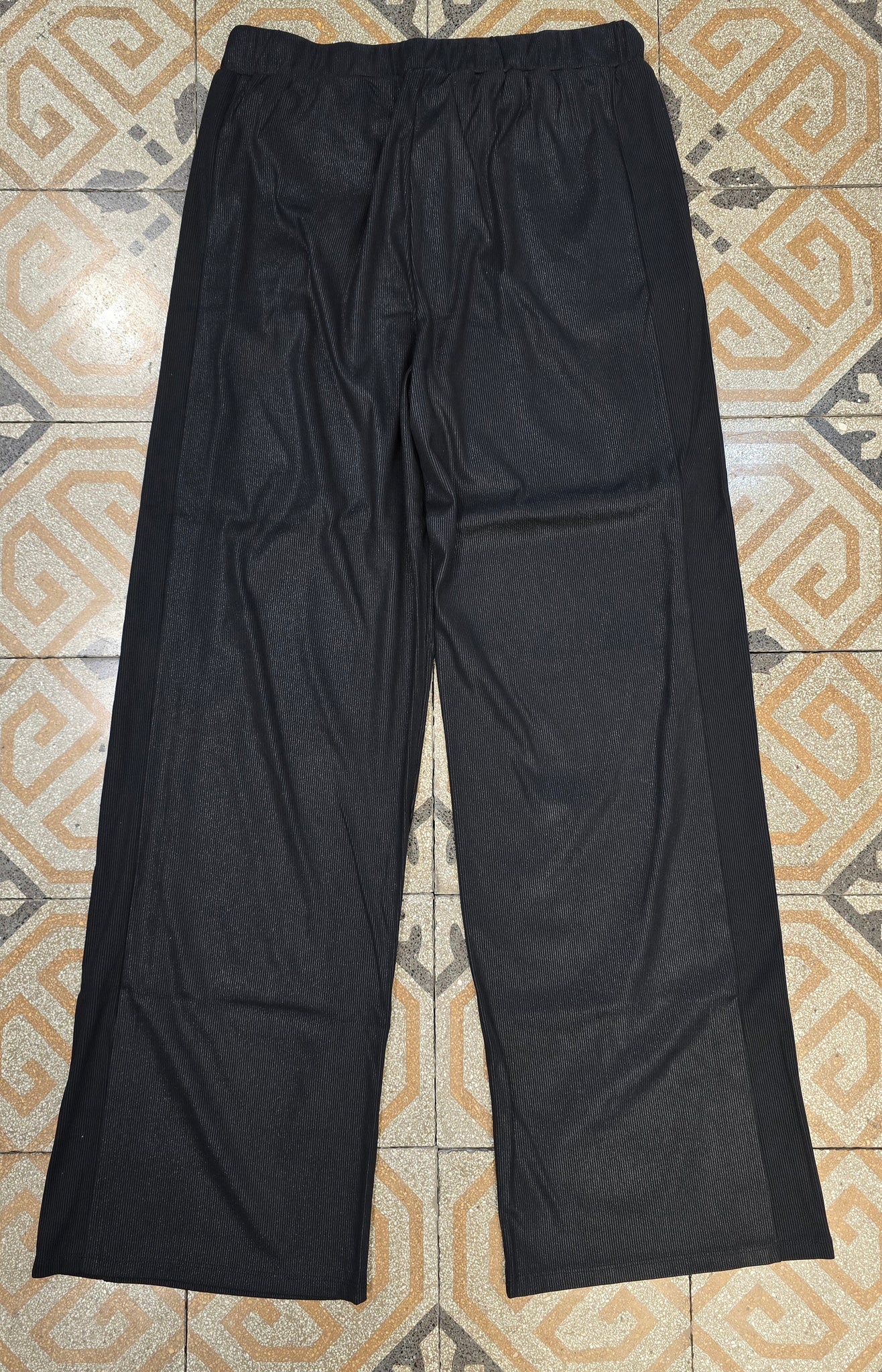 Comfort sporty che libera il movimento! Questo pantalone tuta nero a gamba larga con coulisse è perfetto per look casual confortevoli e trendy.