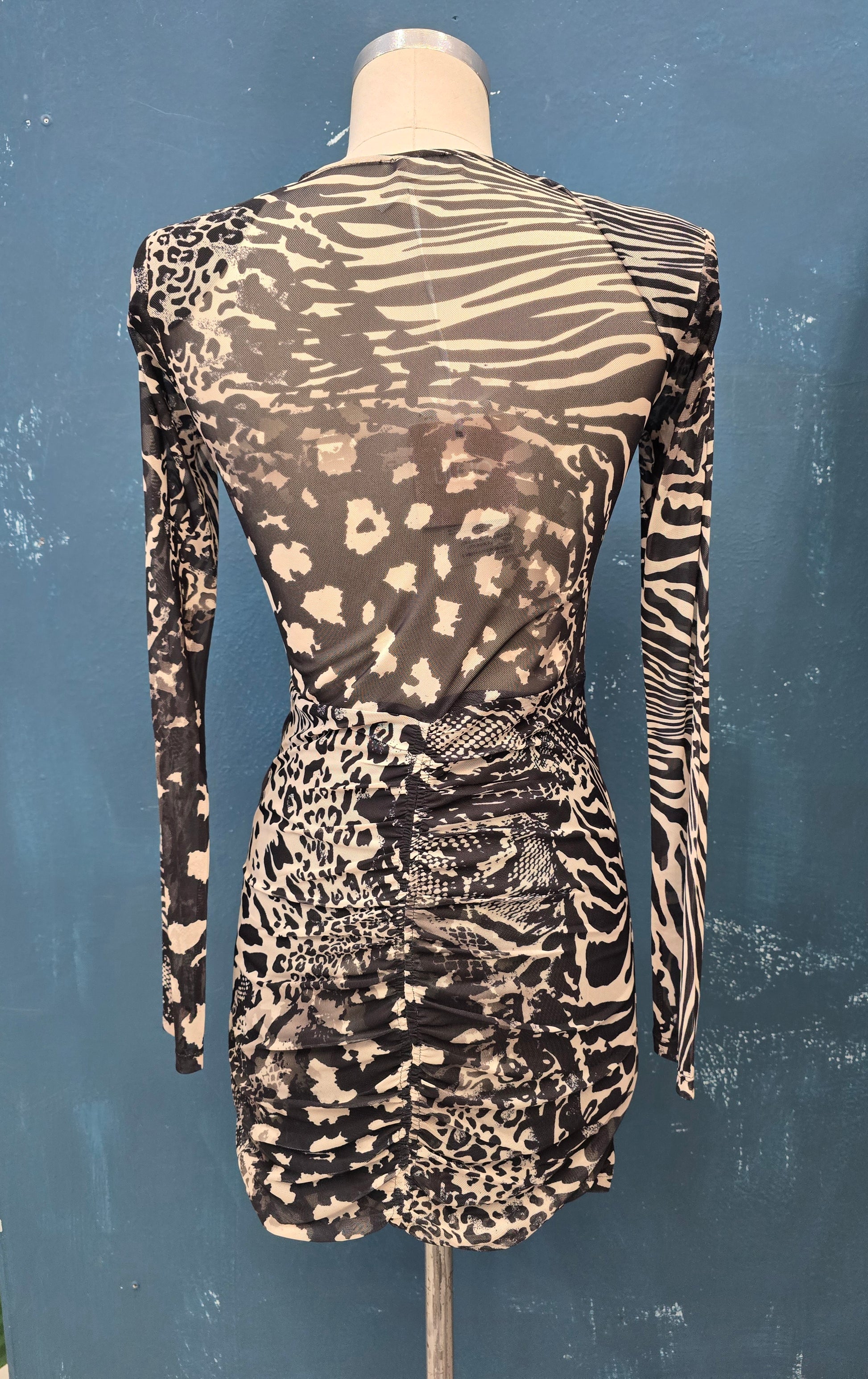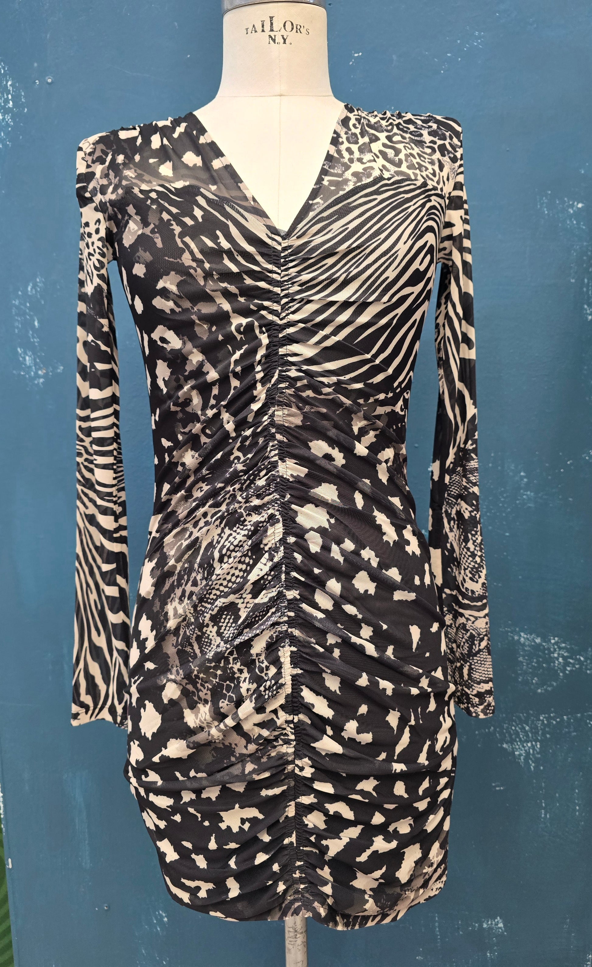 Abito Tulle Fantasia Bianco Nero Foderato Aderente Arricciatura Scollo V Spalline Taglia 42