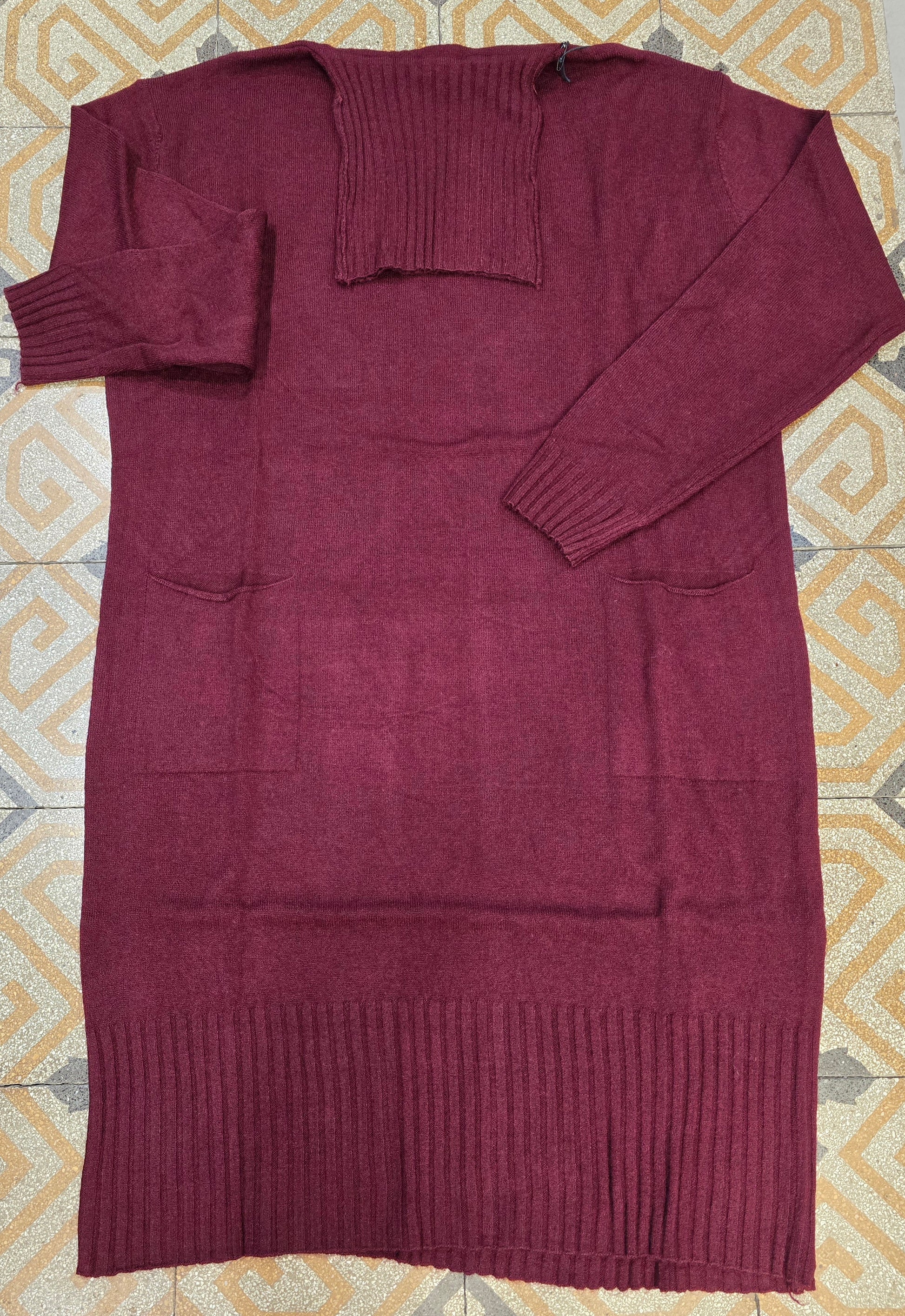 Abito in maglia di viscosa morbido e caldo modello con collo a dolcevita taglio dritto con tasche davanti linea curvy disponibile in marrone e bordeaux in taglia unica con vestibilità dalla taglia 48 alla 52