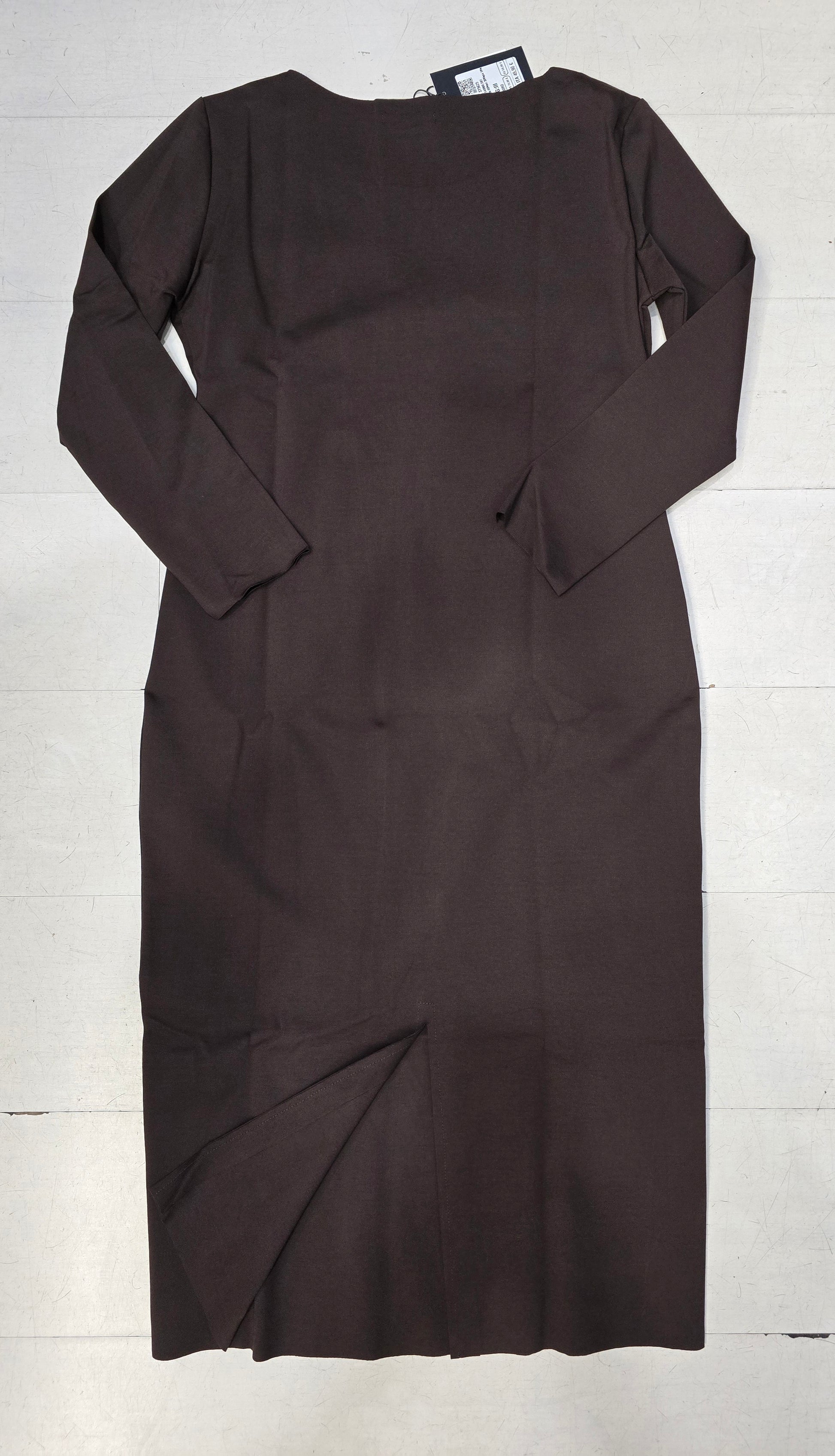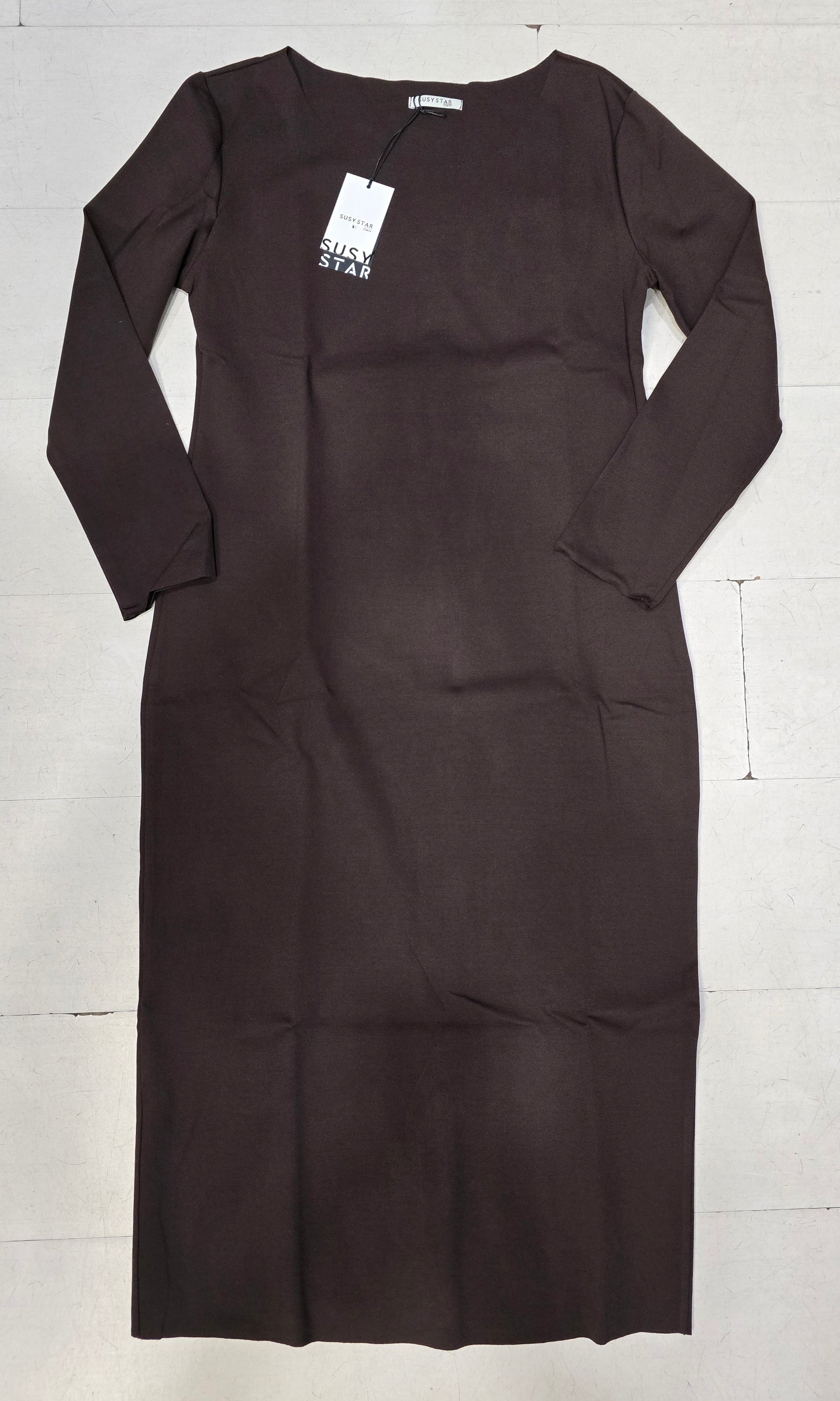 Abito donna a tubino in tessuto punto Milano modello lungo sopra la caviglia e con linea aderente disponibile nel colore moro