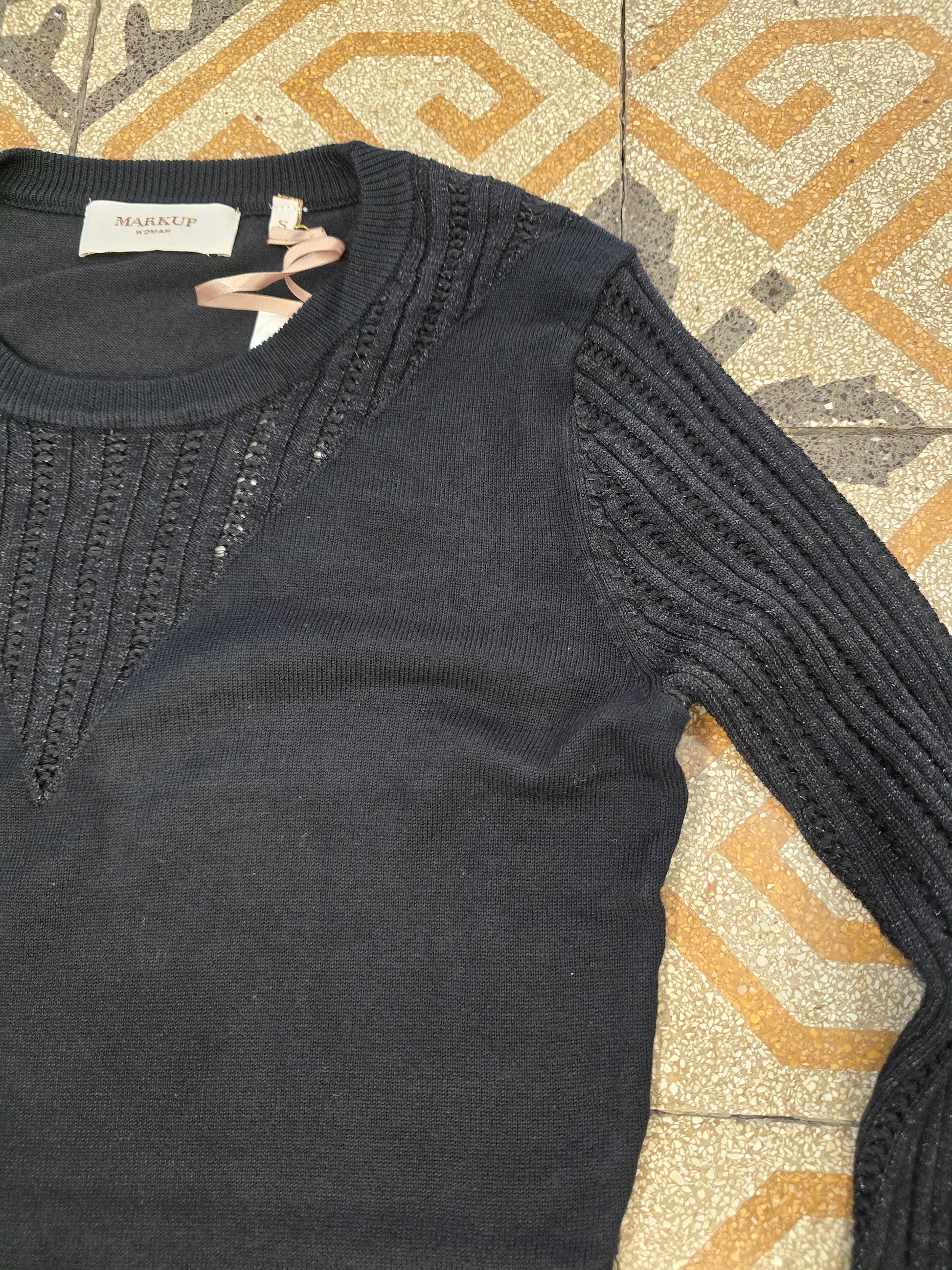 Abito Maglia Viscosa Tubino Ginocchio Manica Traforata