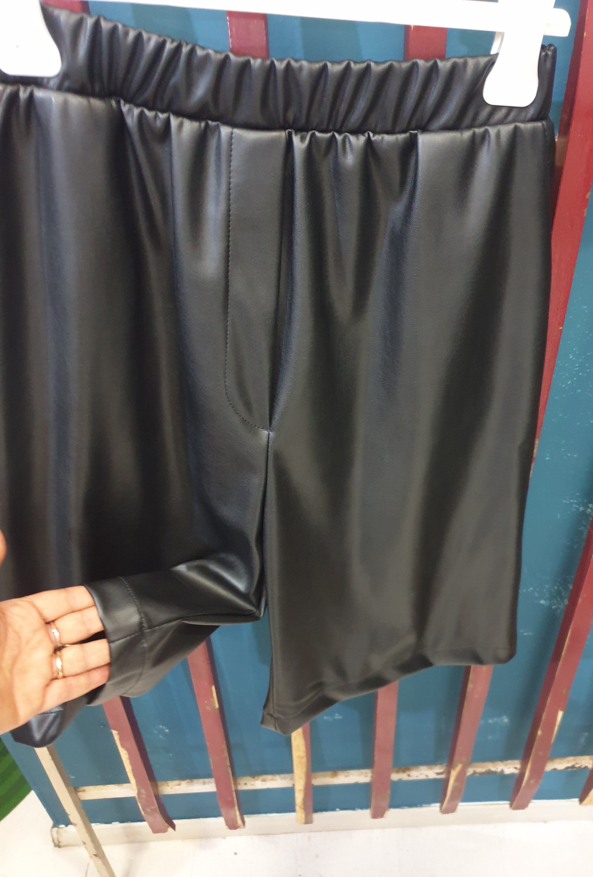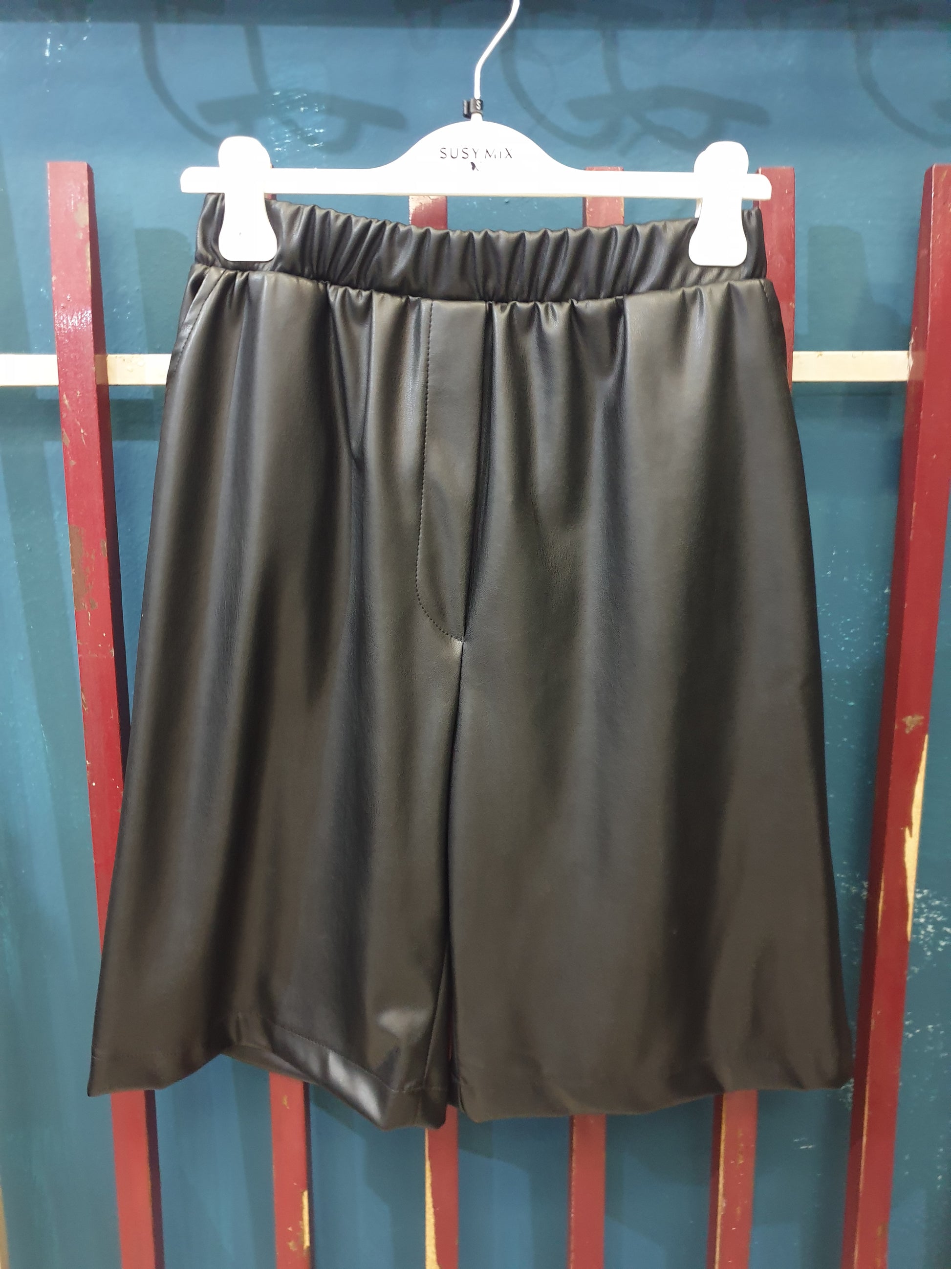 Bermuda in ecopelle modello con elastico in vita colore nero