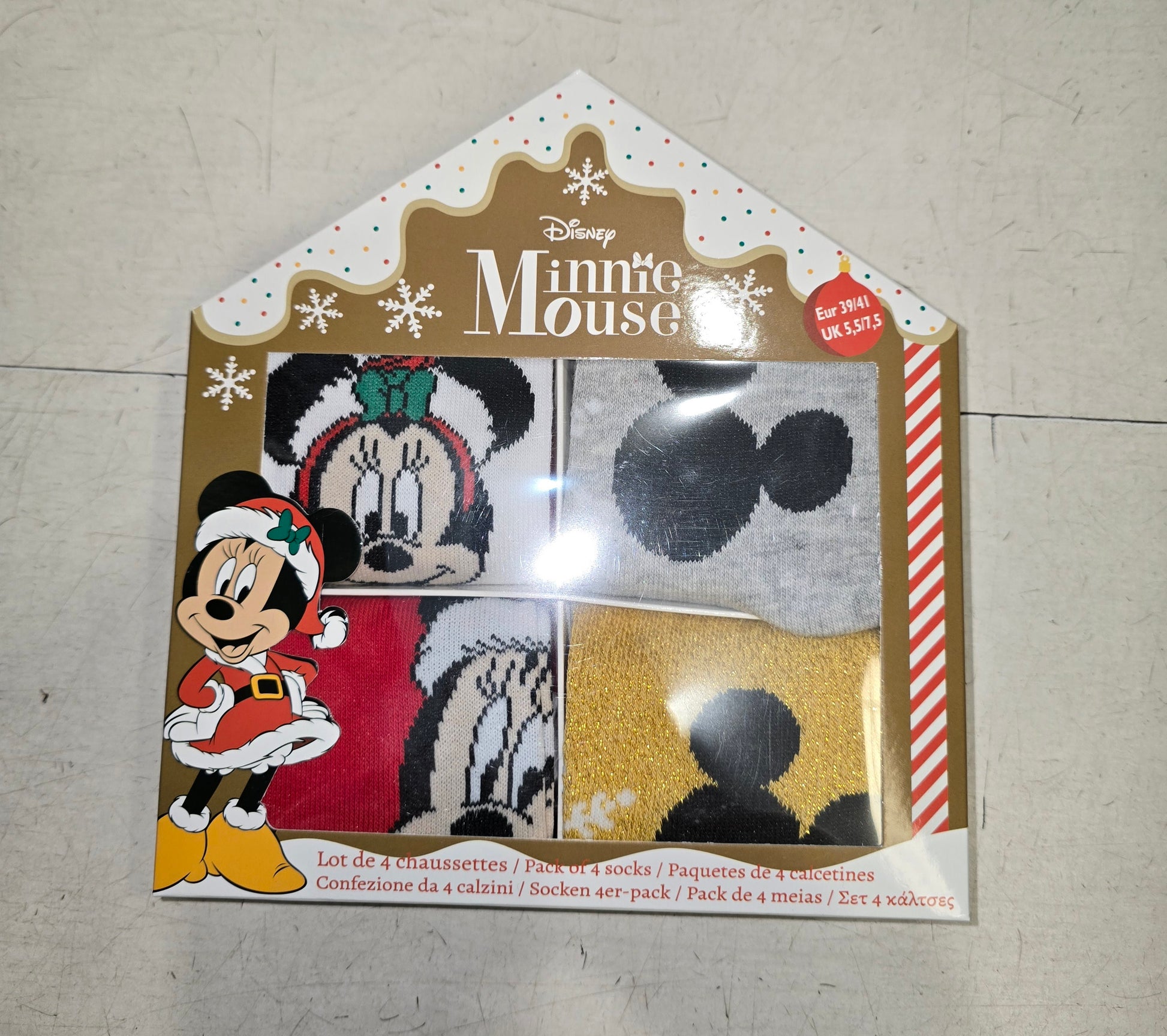 Confezione regalo con 4 paia di calzini corti donna con fantasie Minnie Mouse in caldo cotone misto a poliestere