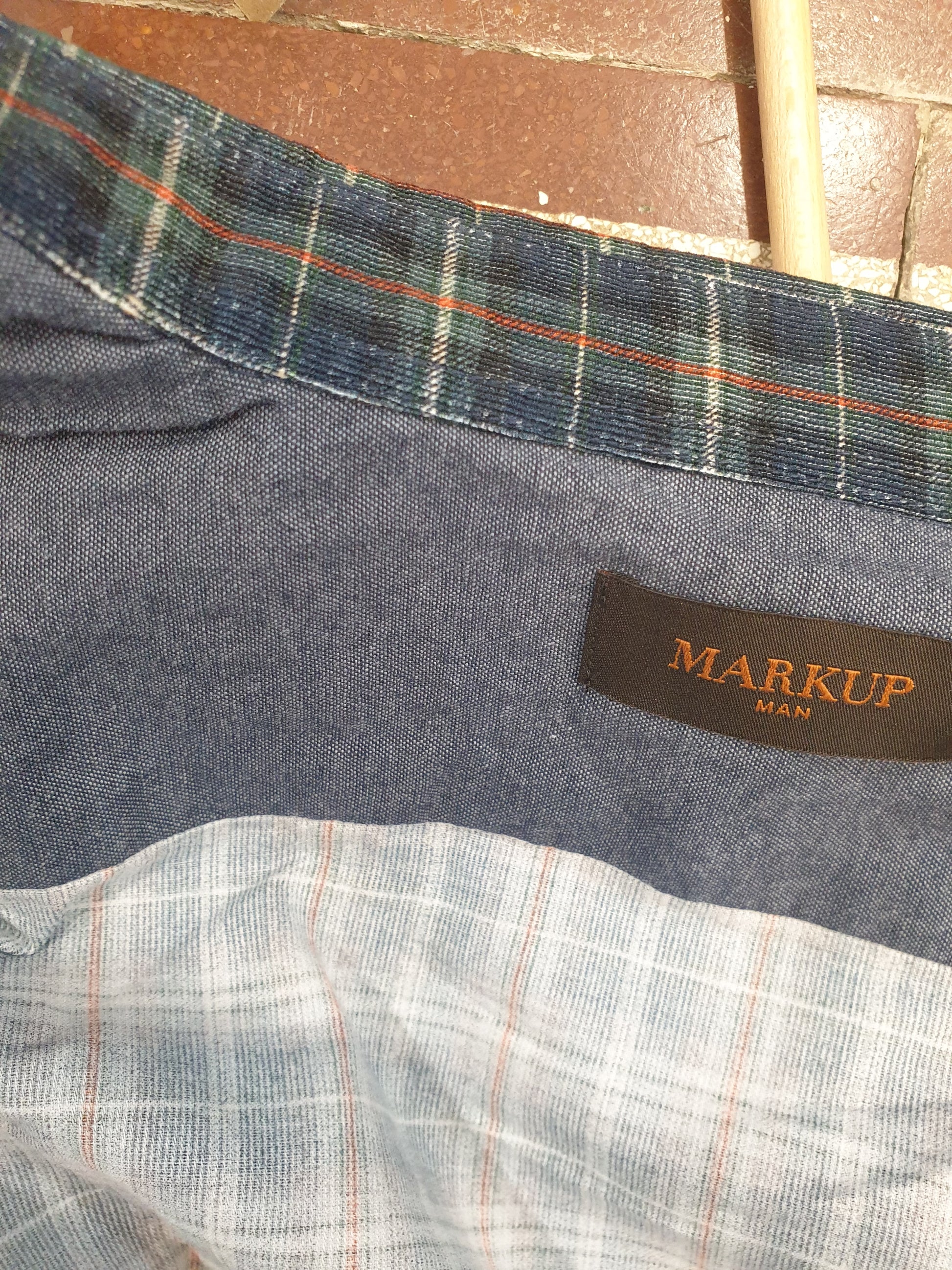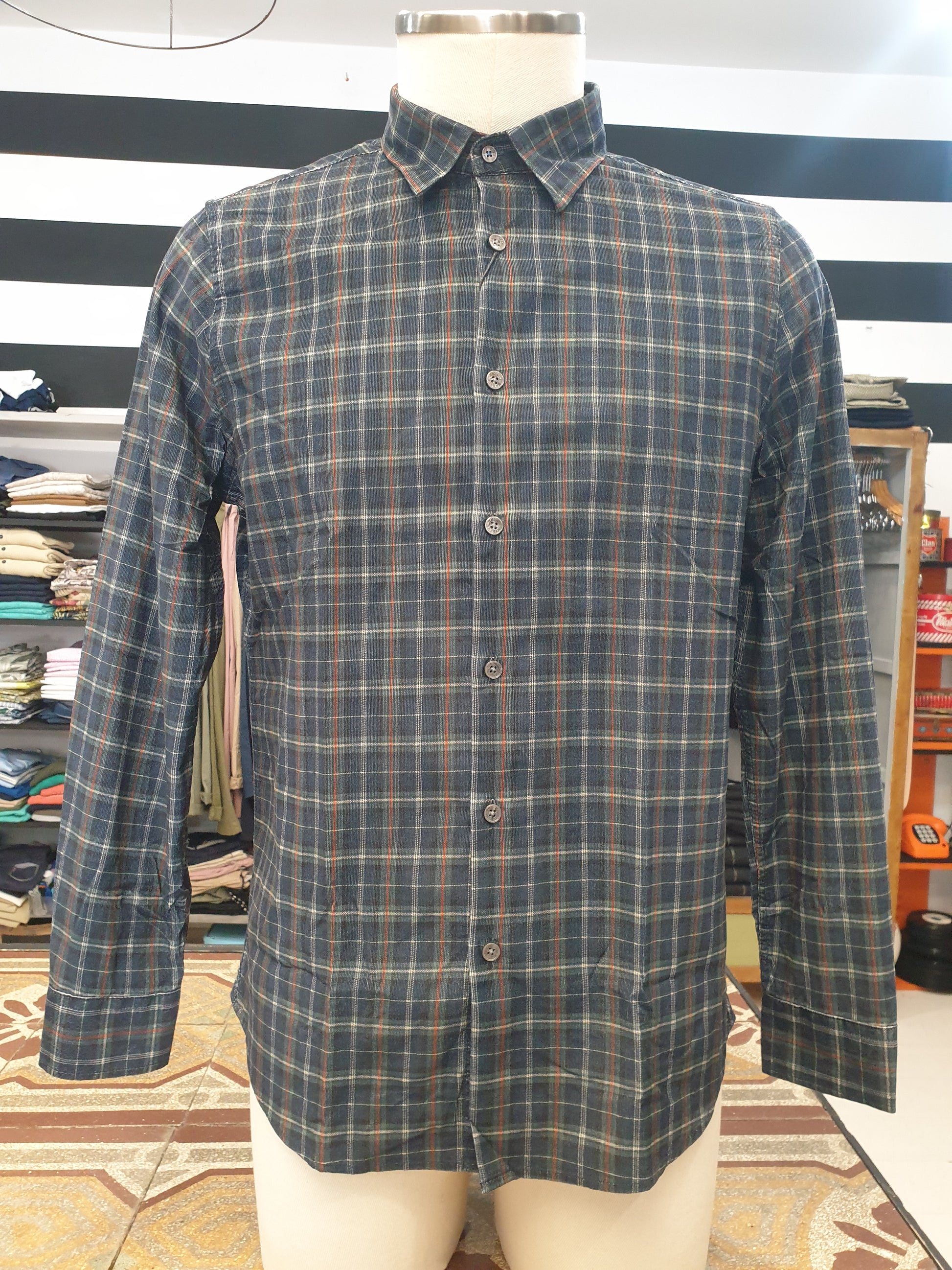 Camicia in velluto di cotone millerighe stampato a fantasia quadrettata sui toni del blu
