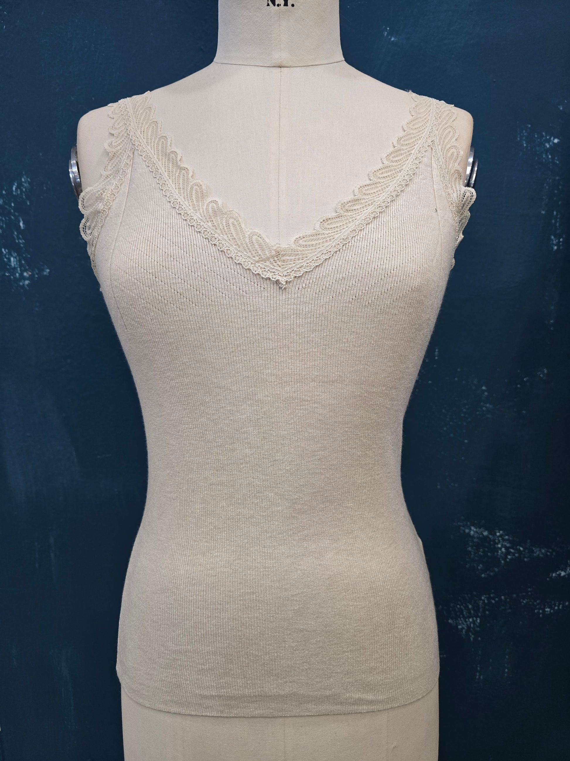 Canotta 50% Viscosa Costine Spallini Pizzo Scollatura