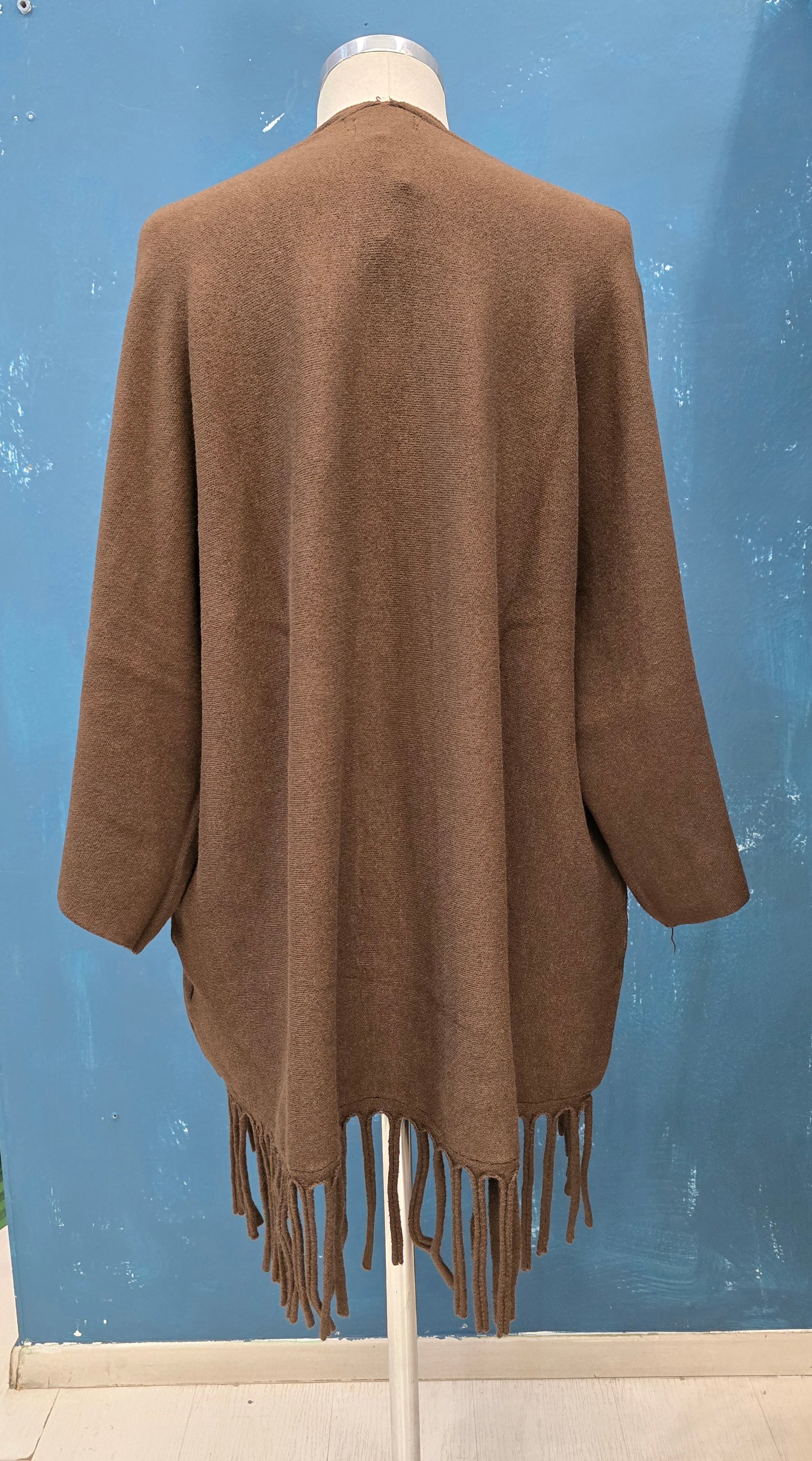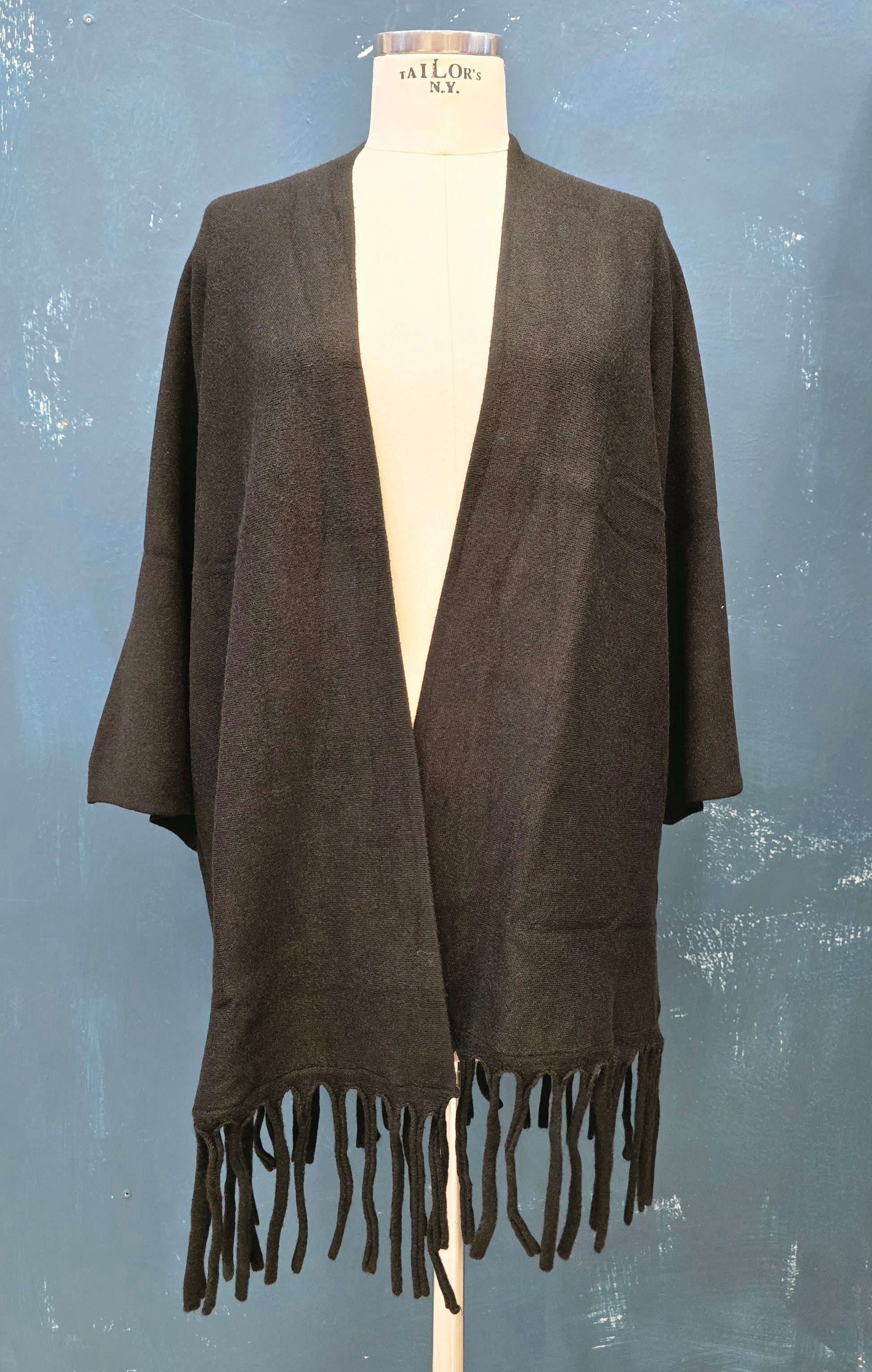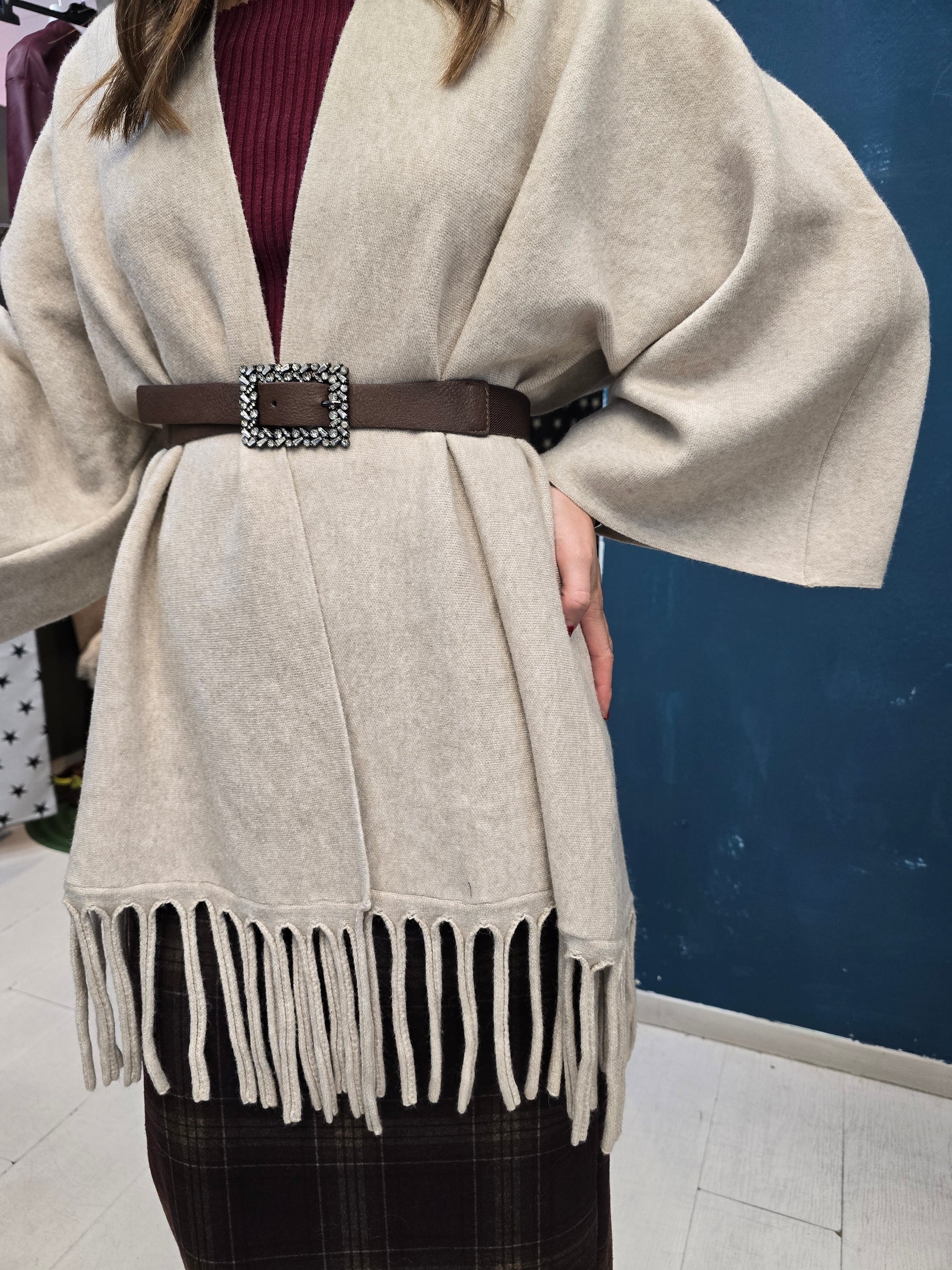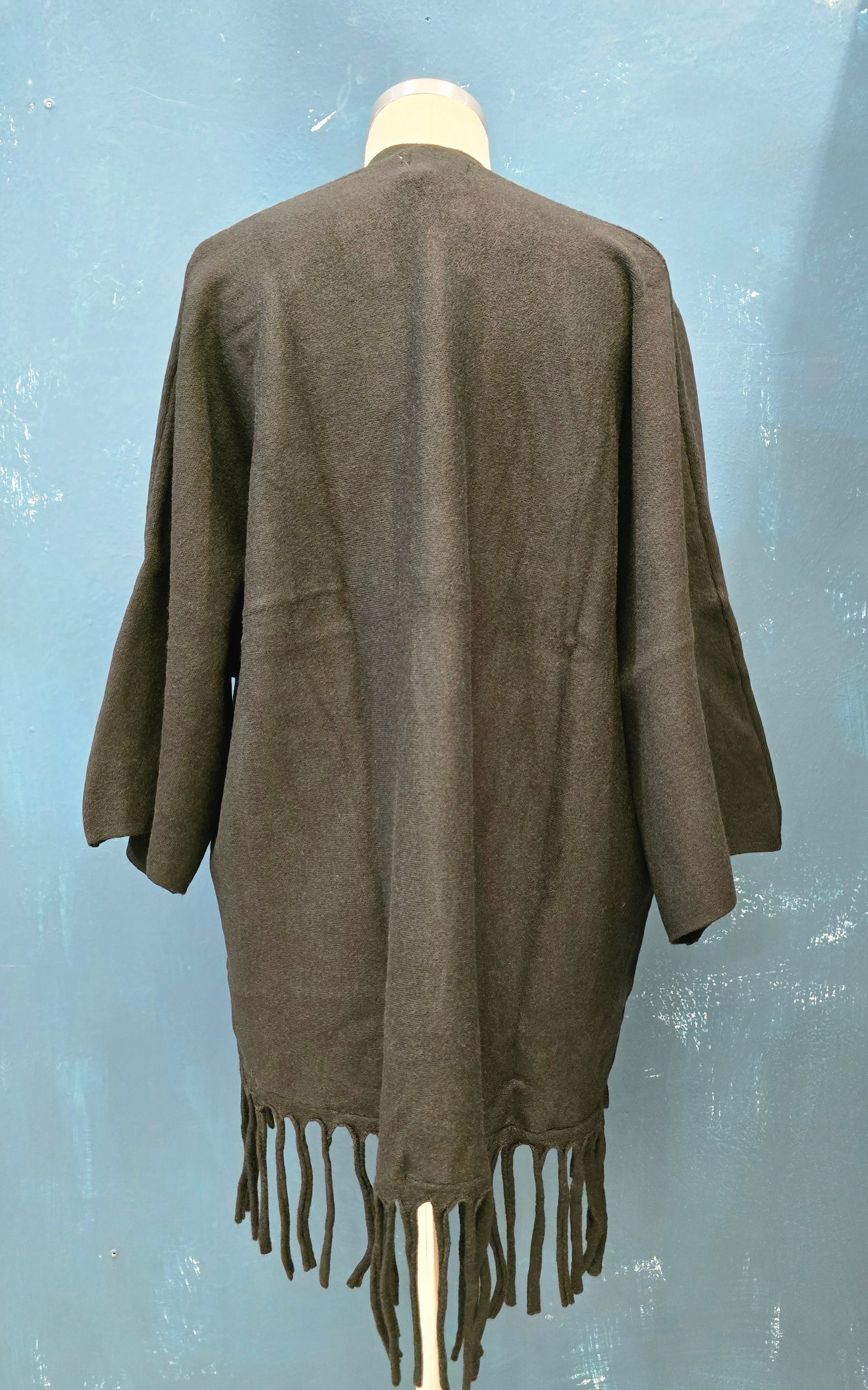 Cappa in viscosa pesante con frange decorative, taglia unica.