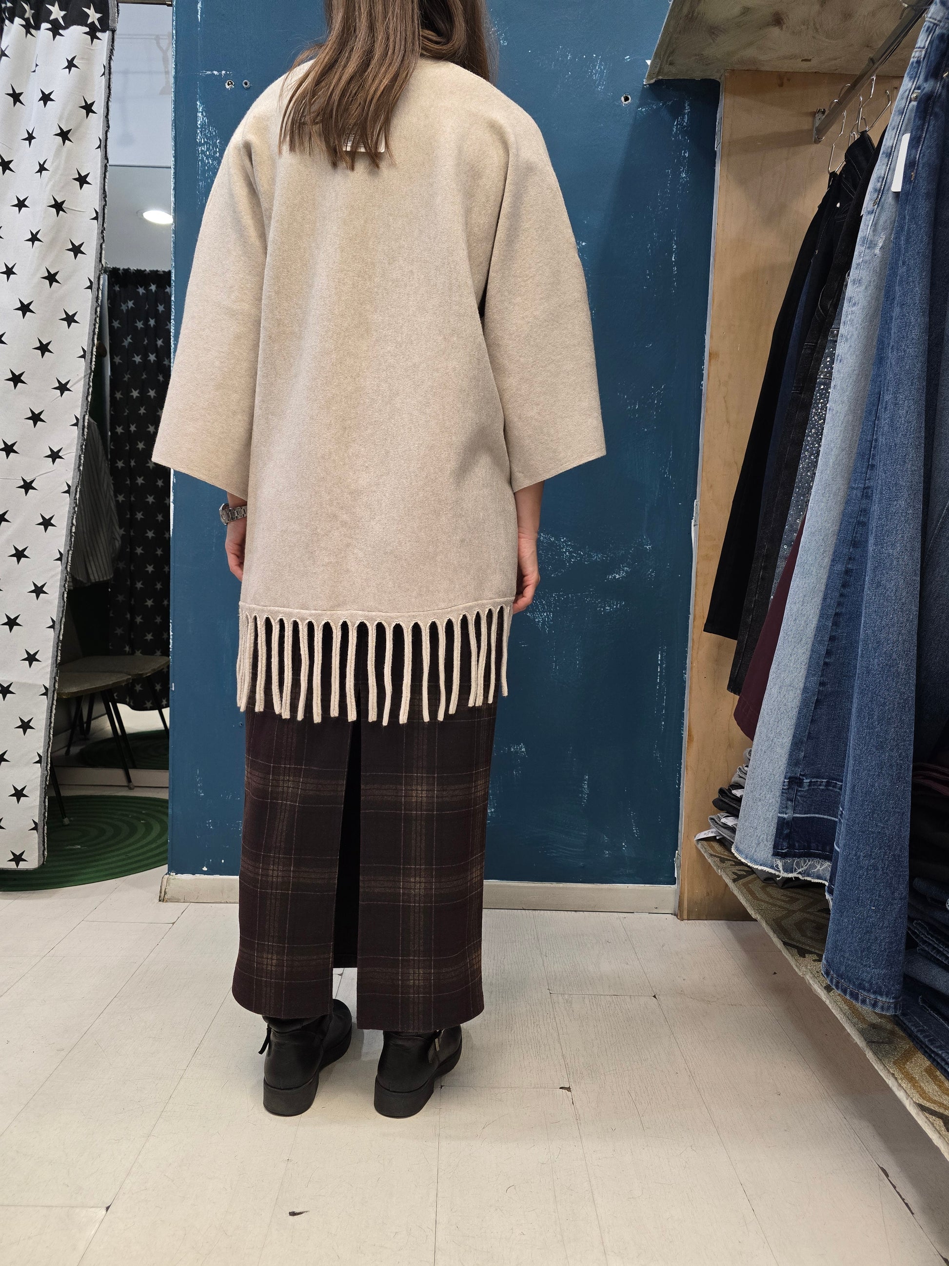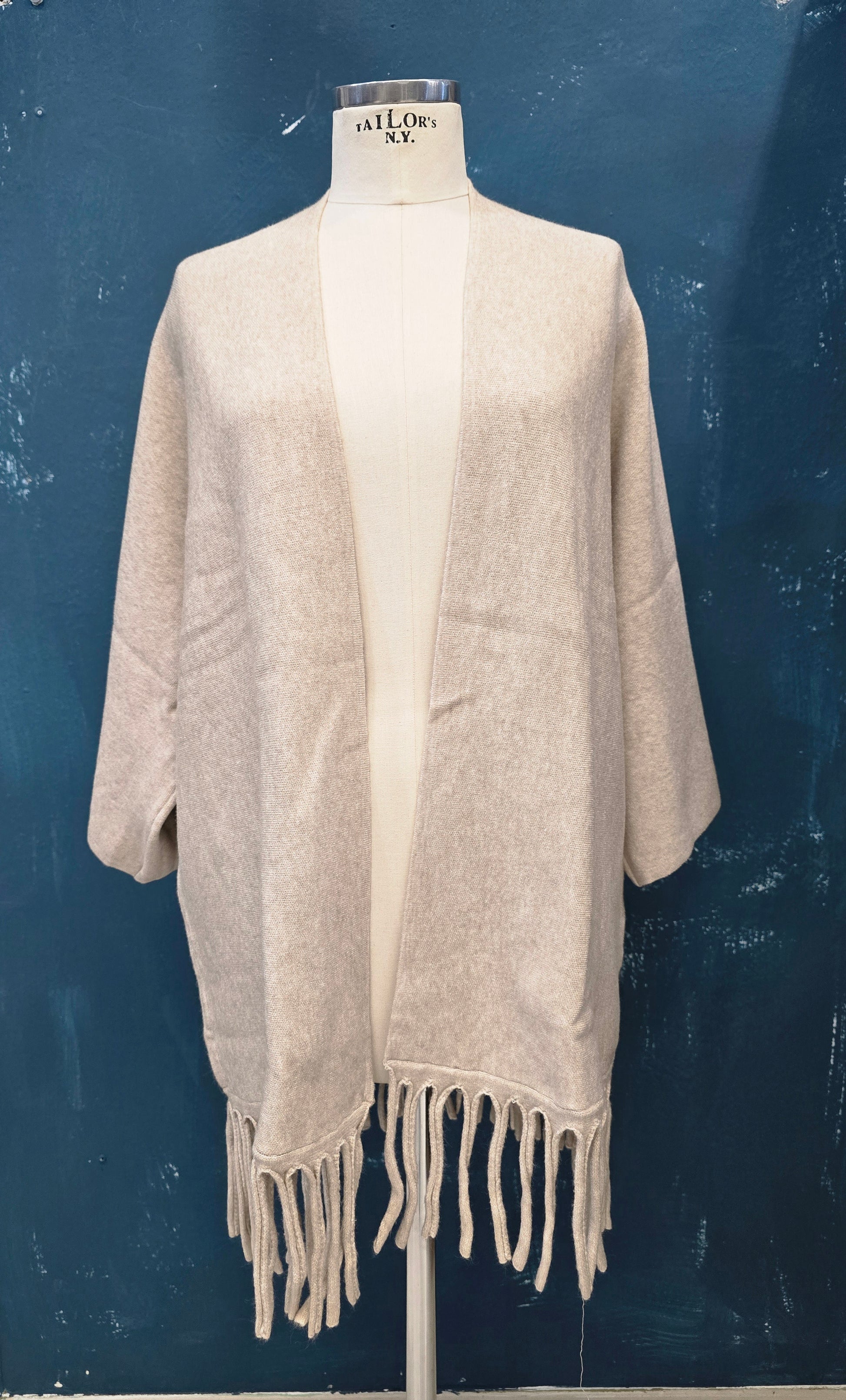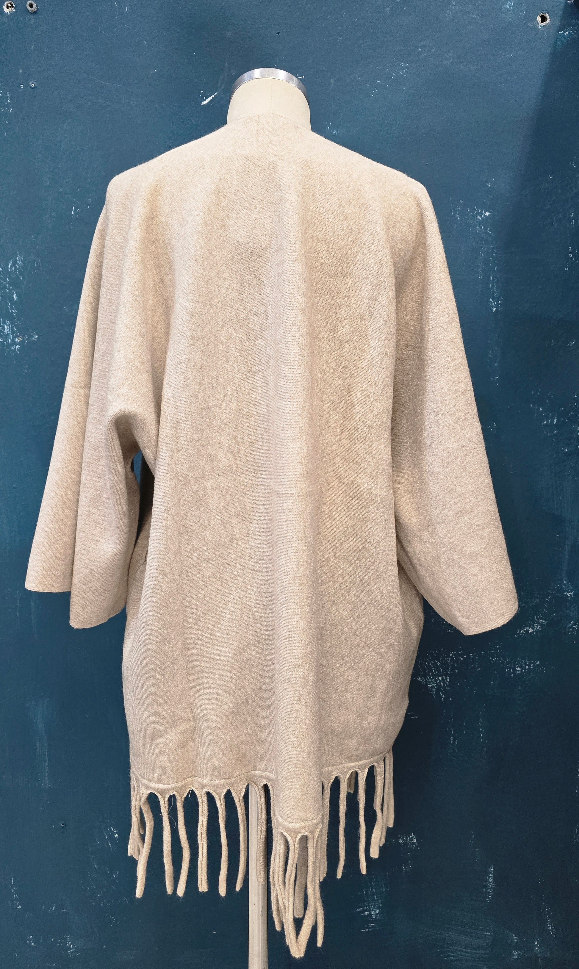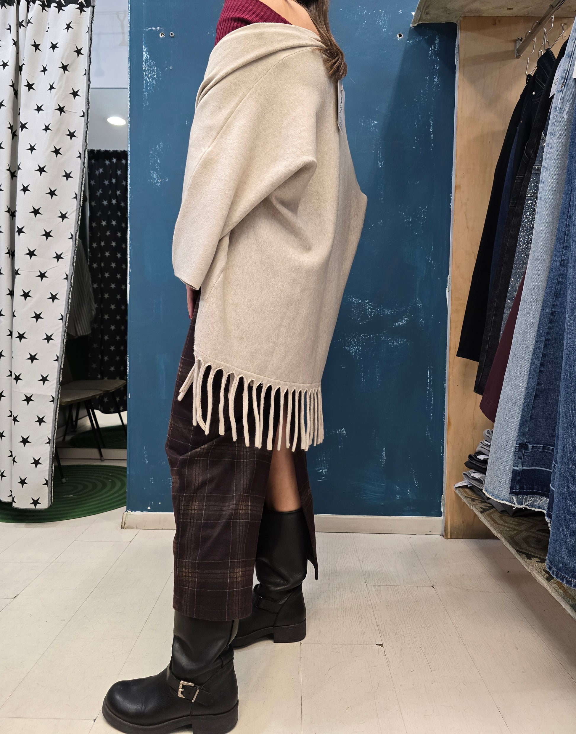 Cappa in viscosa pesante con frange decorative, taglia unica.
