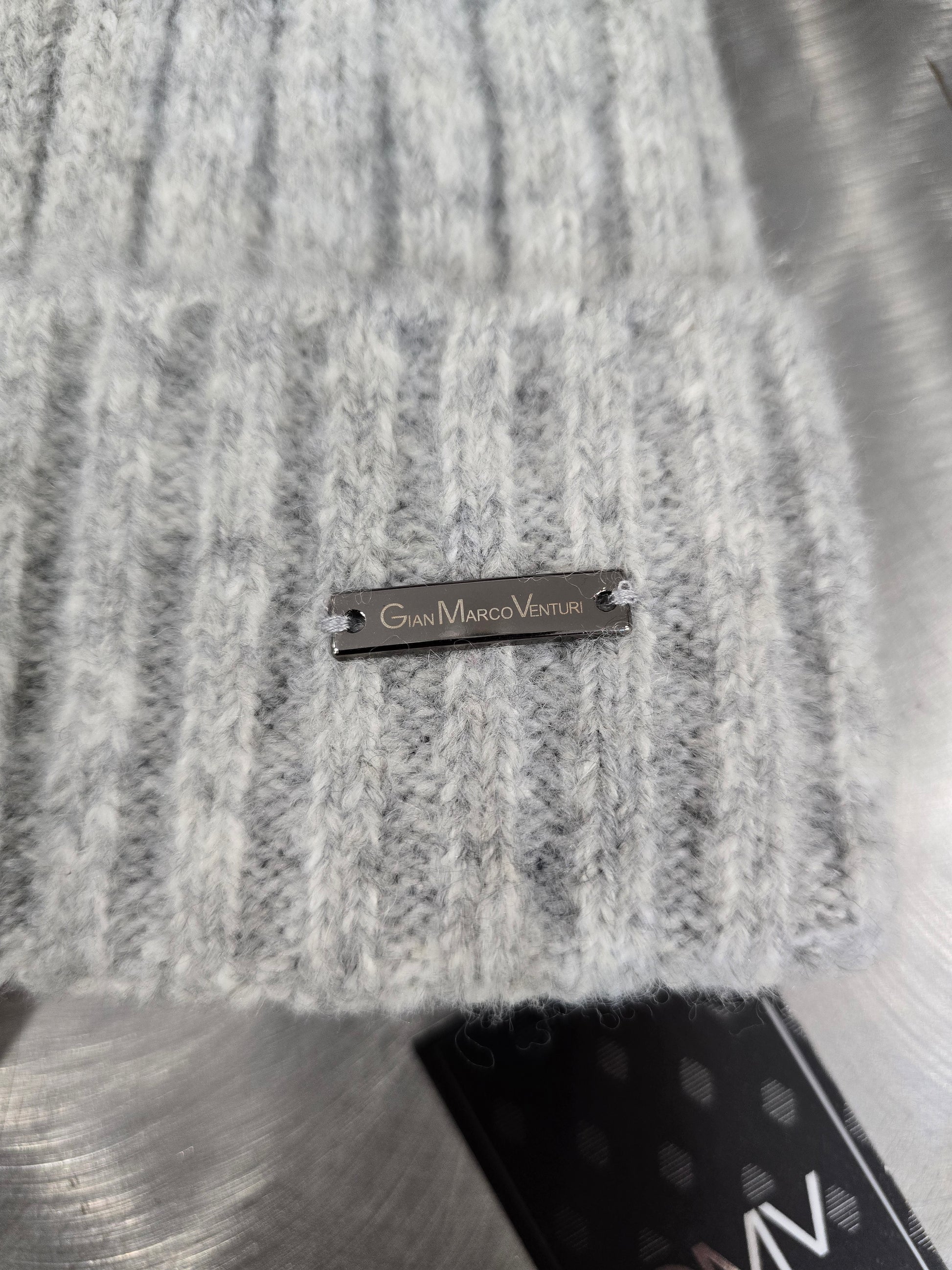 Cappello in maglia a costa inglese mistolana imbottito internamente in pile colore grigio chiaro taglia unica