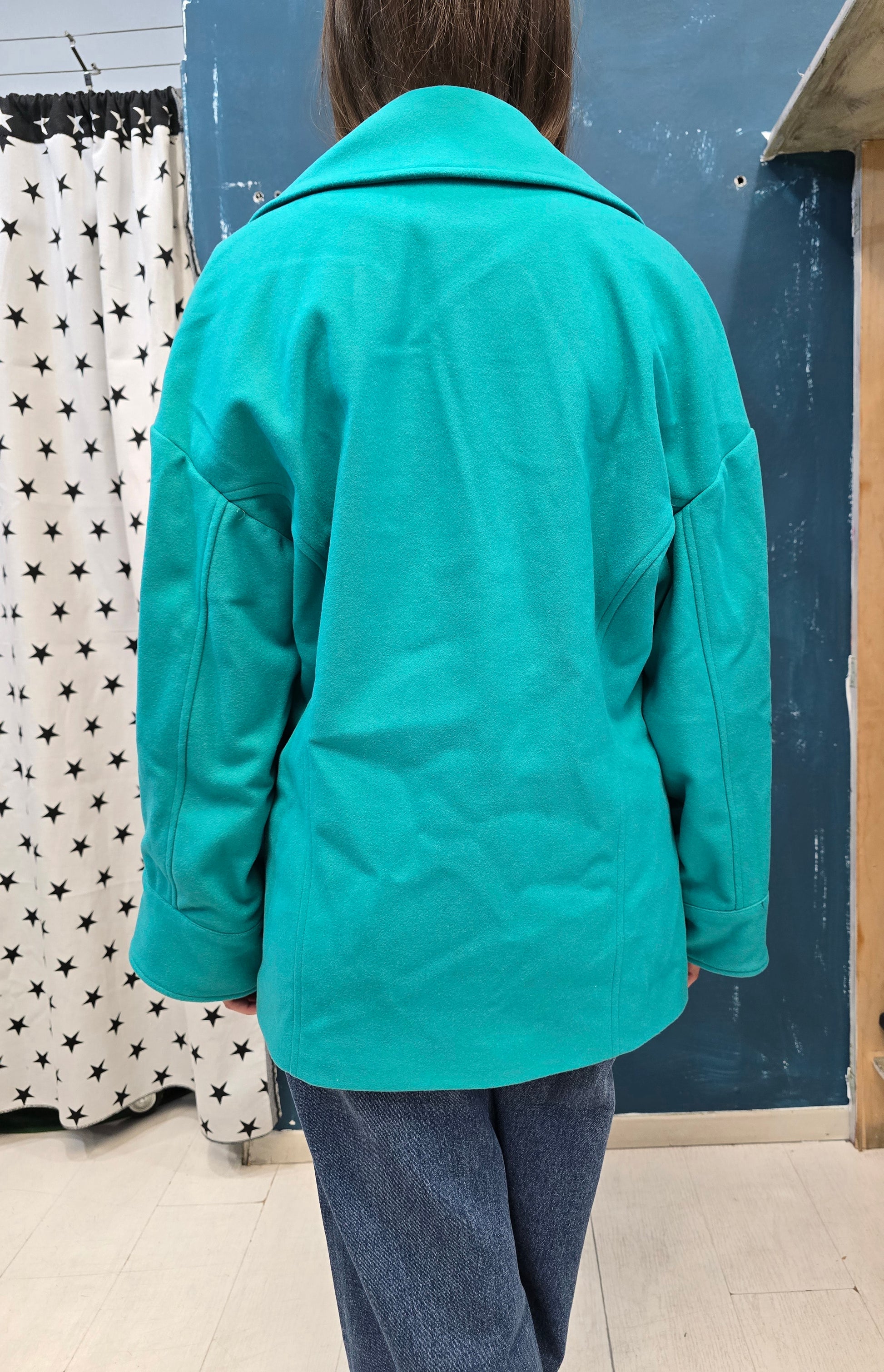 Cappotto Corto Doppiopetto Pannetto Verde Tiffany Taglia 42