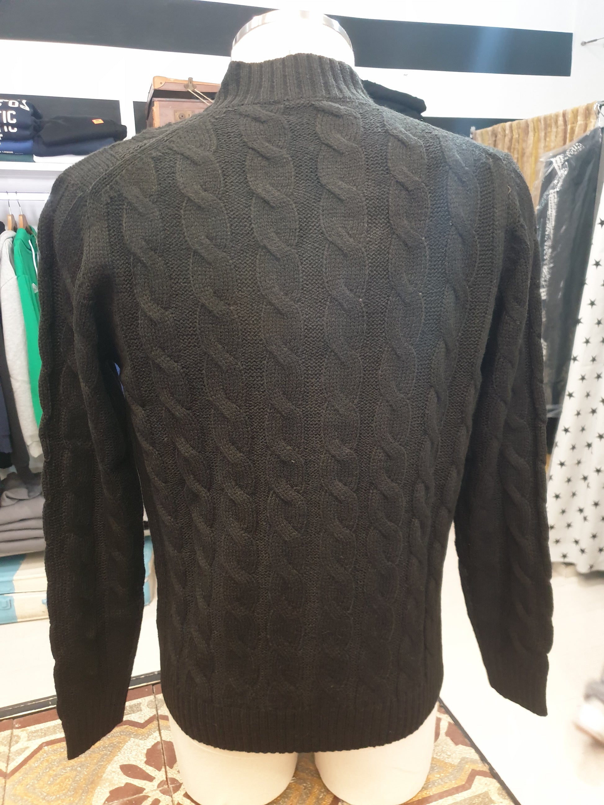 Cardigan abbottonato con lavorazione dalla maglia a treccia tasche davanti colore nero