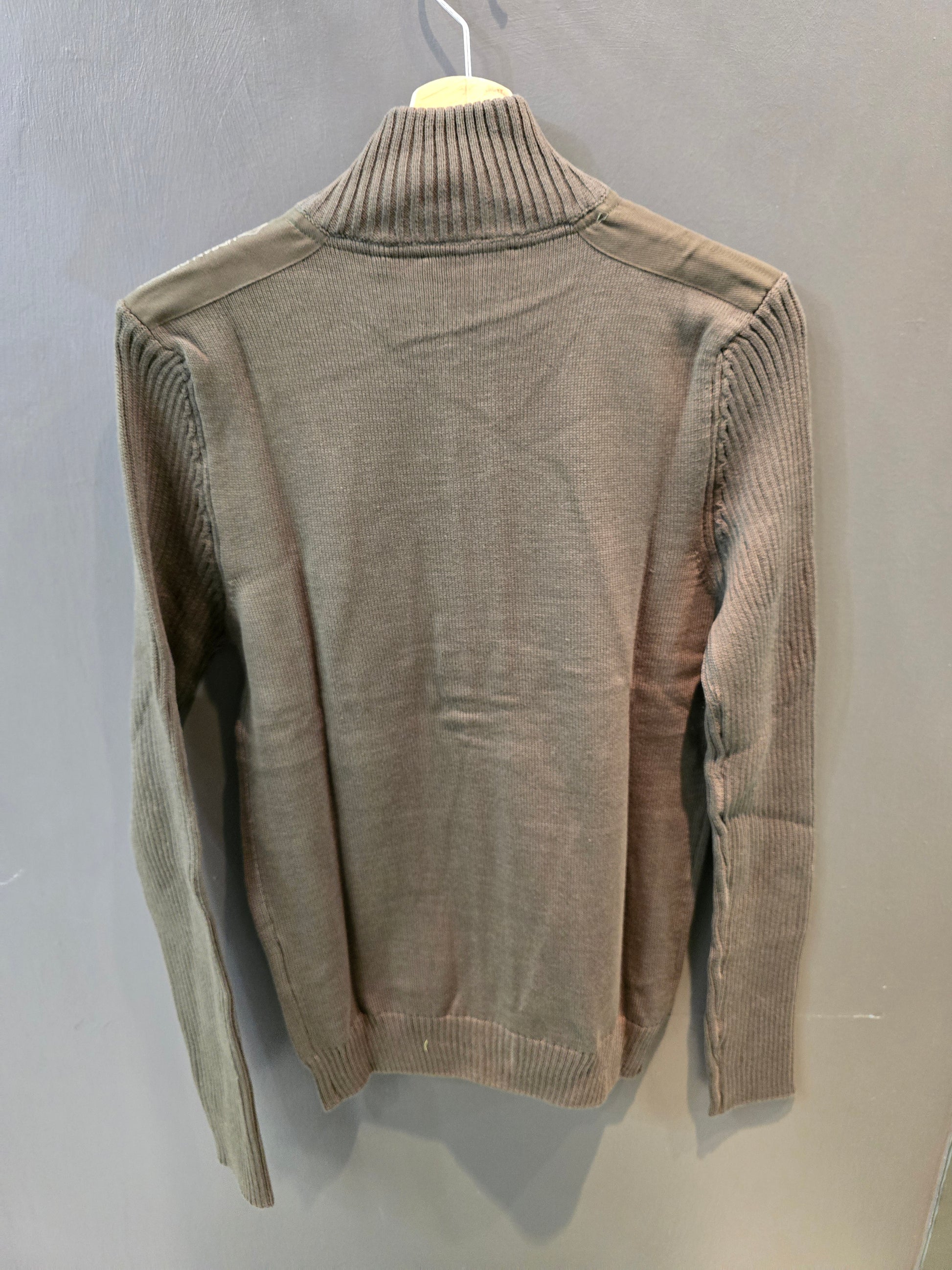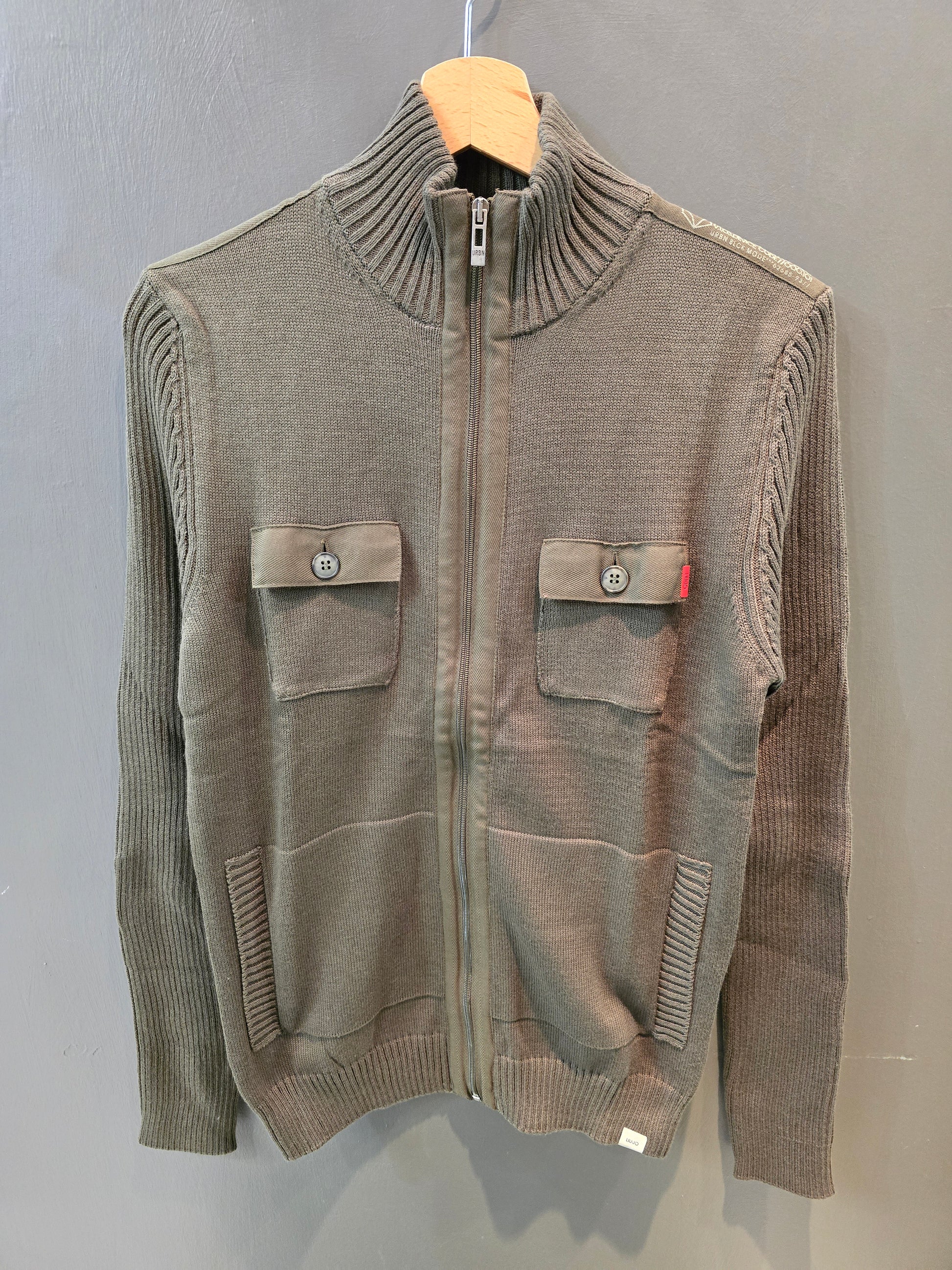Cardigan Aperto Zip Tasche Davanti Grigio Marrone Beige