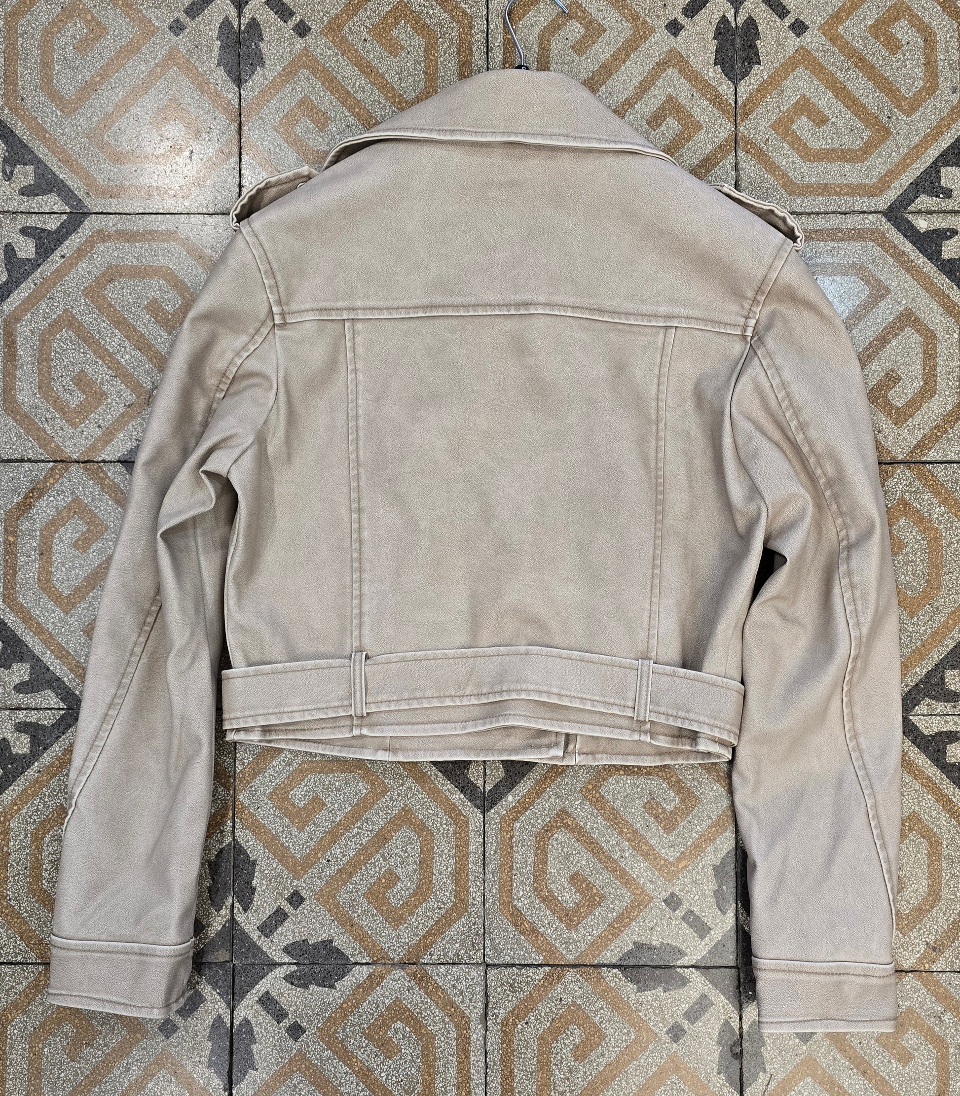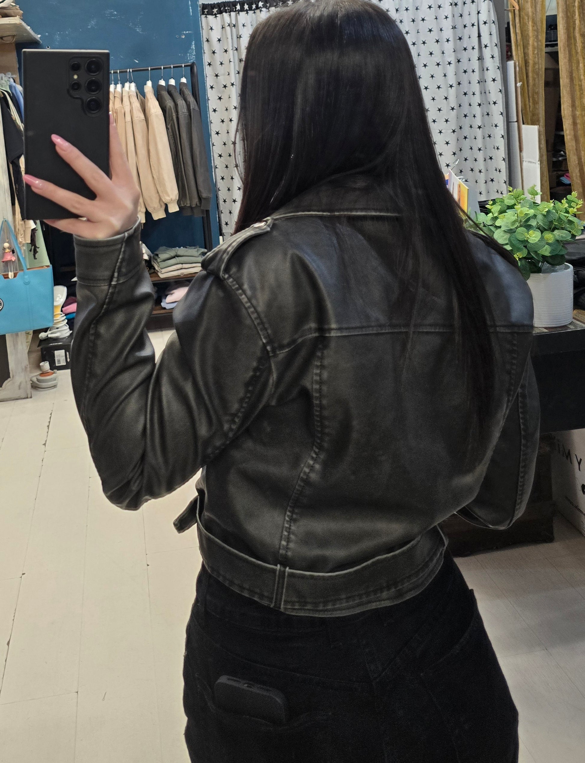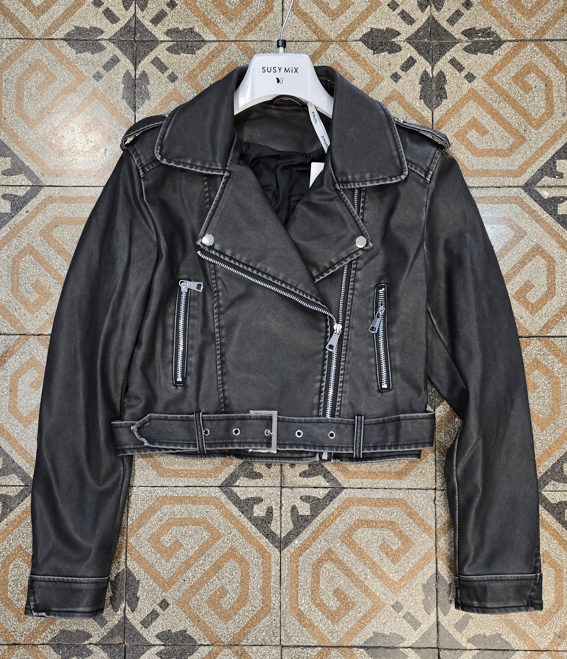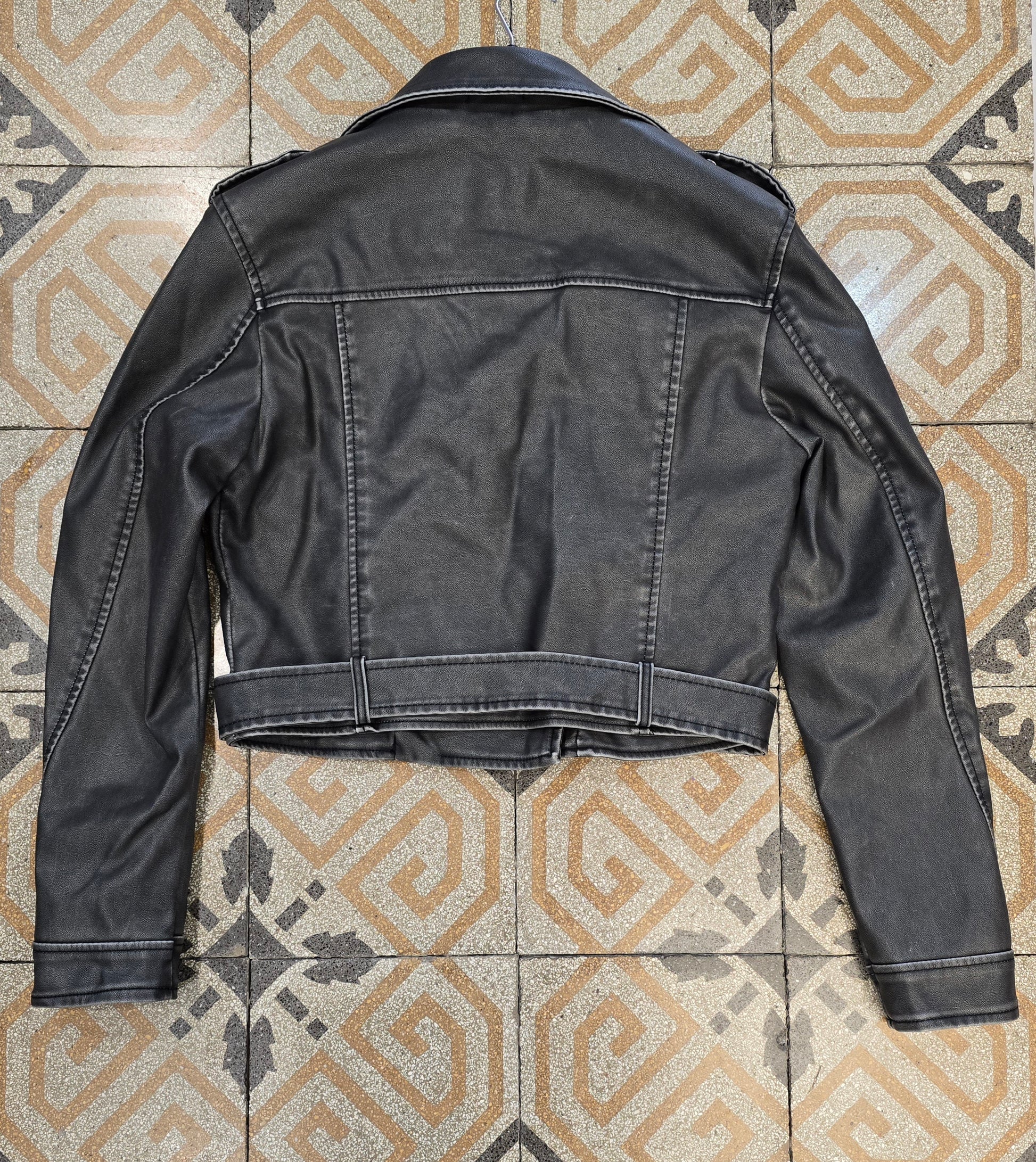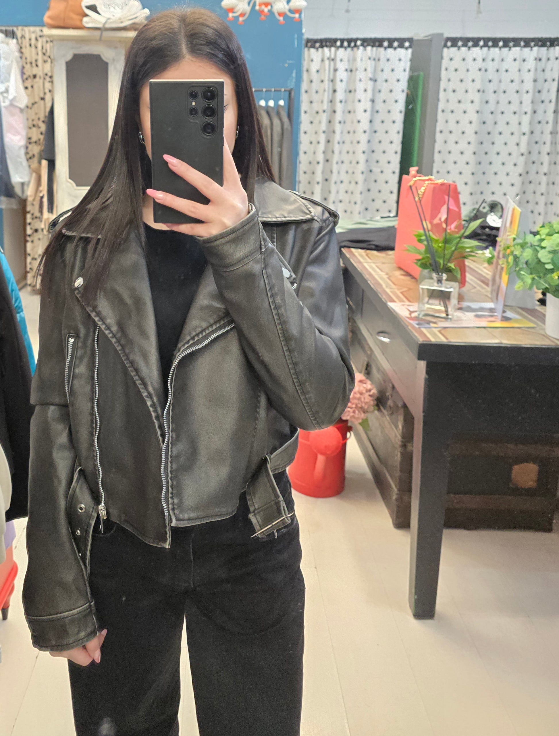 Rock sostenibile che fa carattere! Questo chiodo corto ecopelle con effetto maltinto è l'alleato perfetto per look casual grintosi e sostenibili.