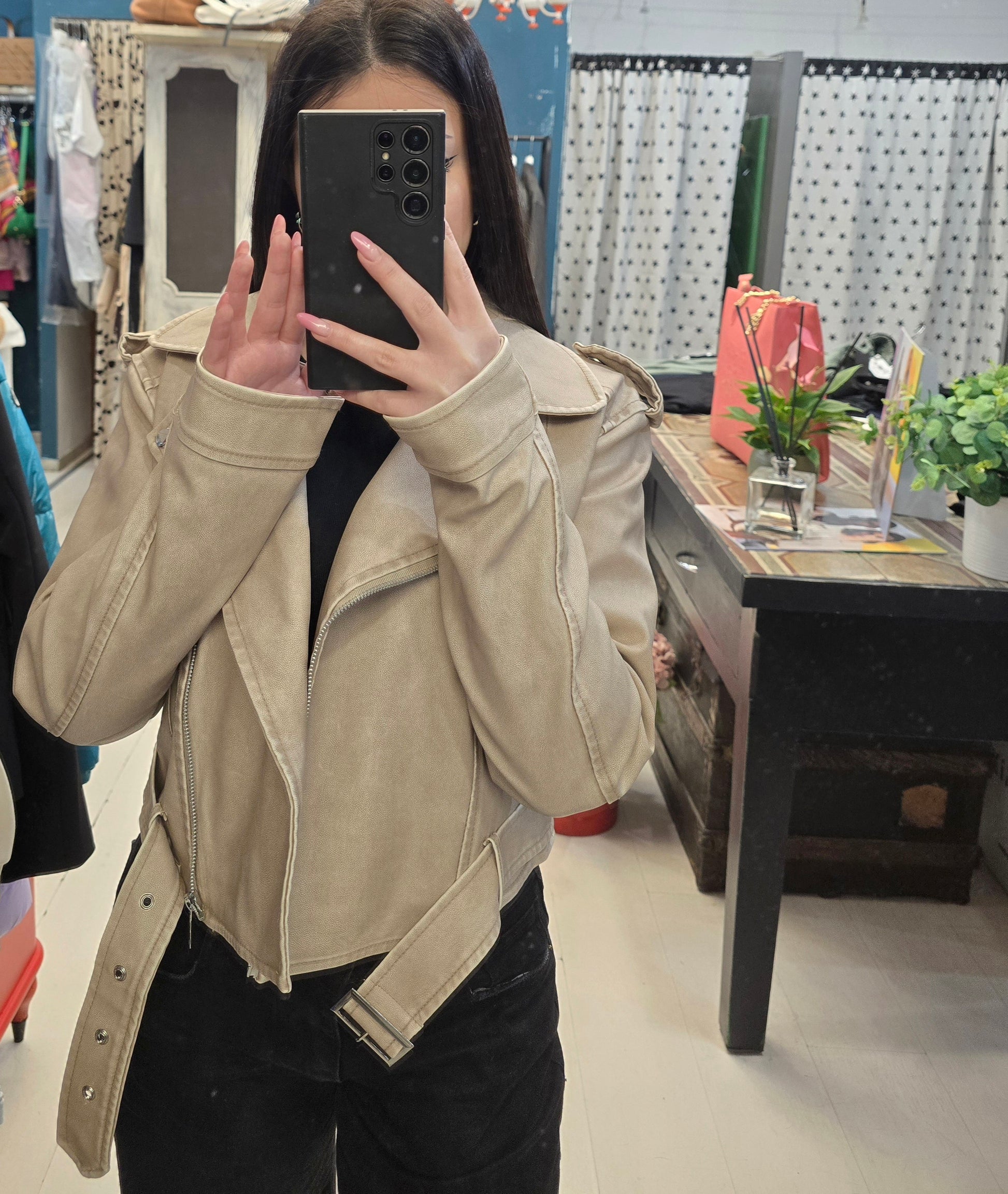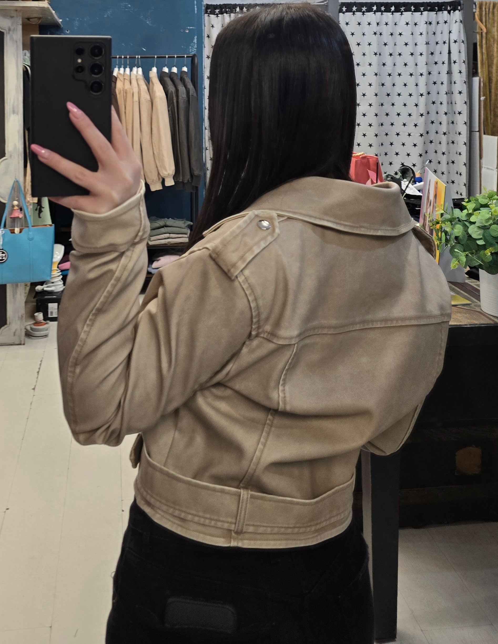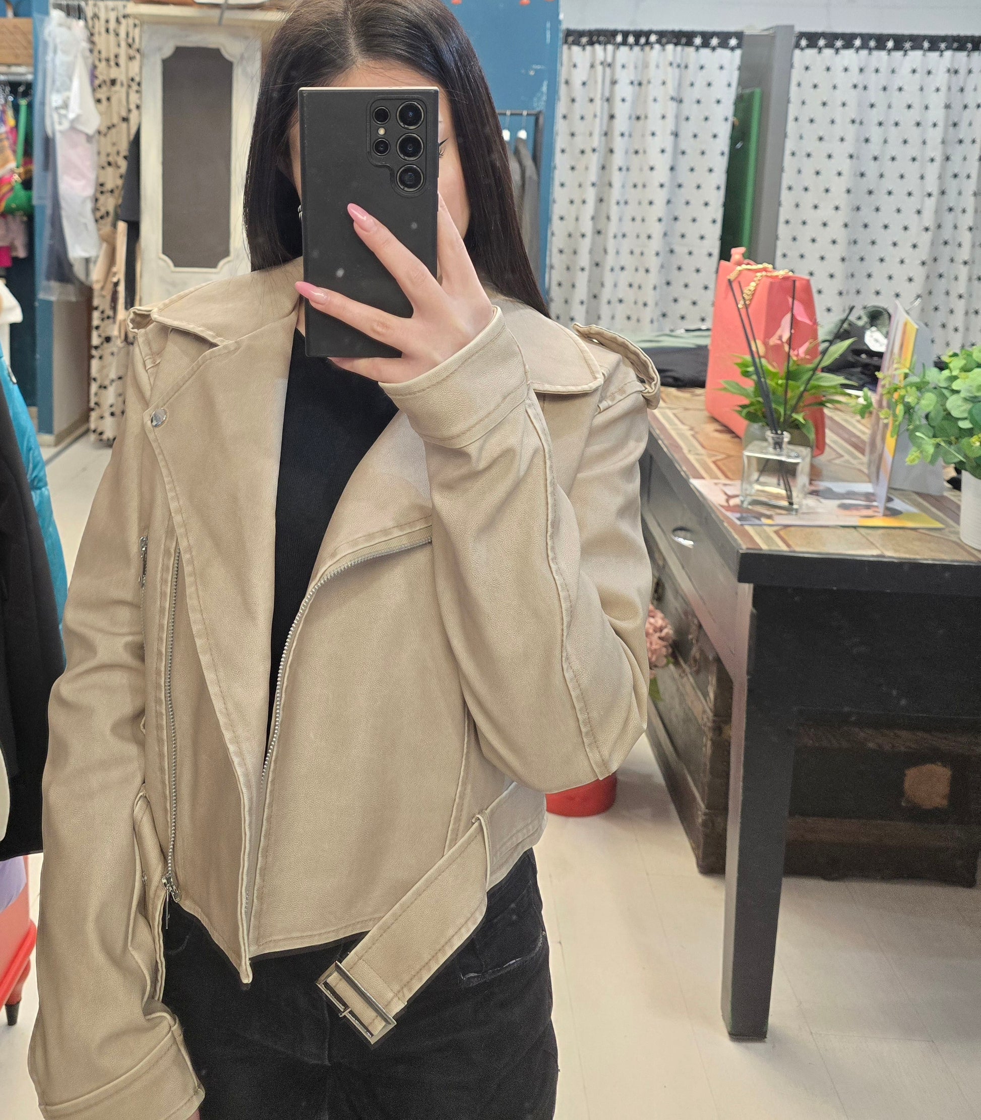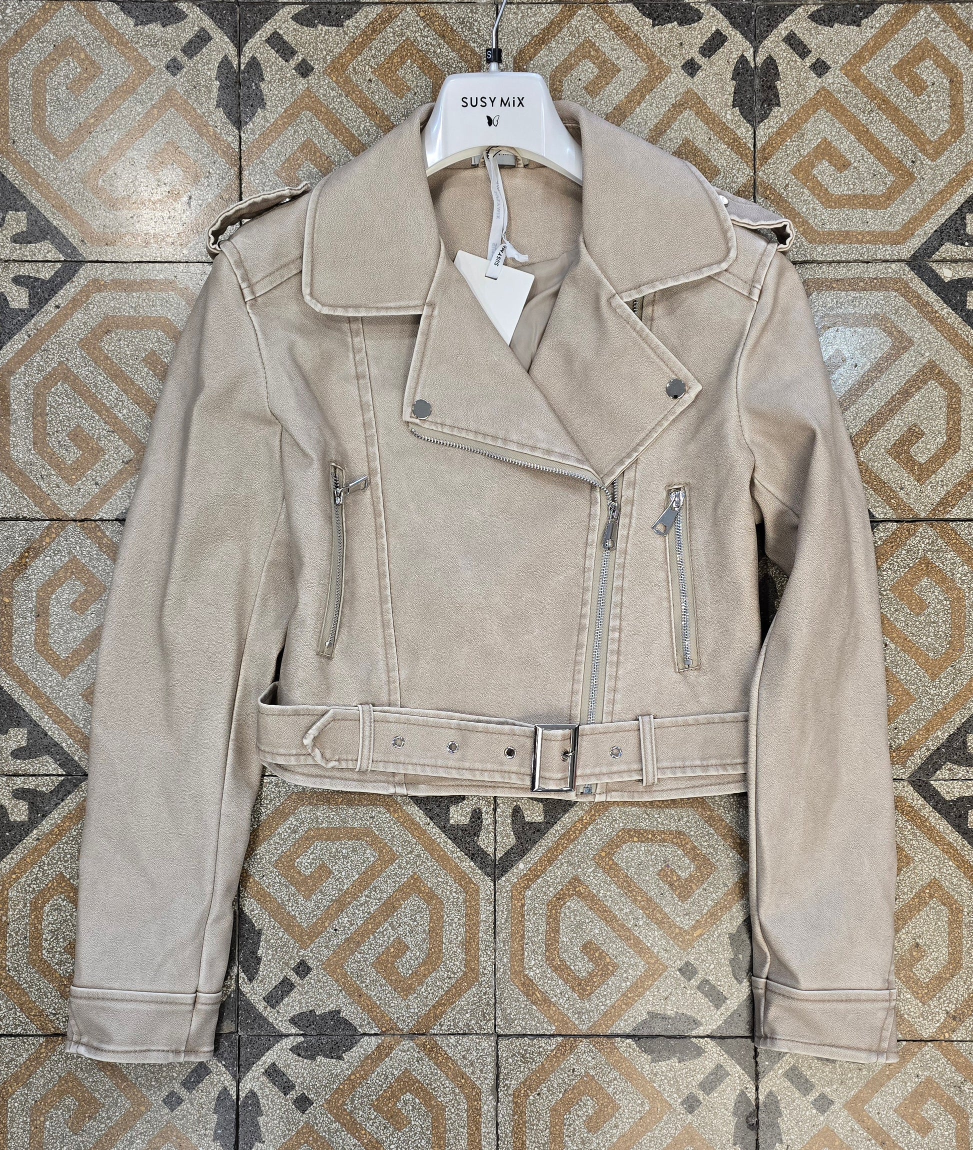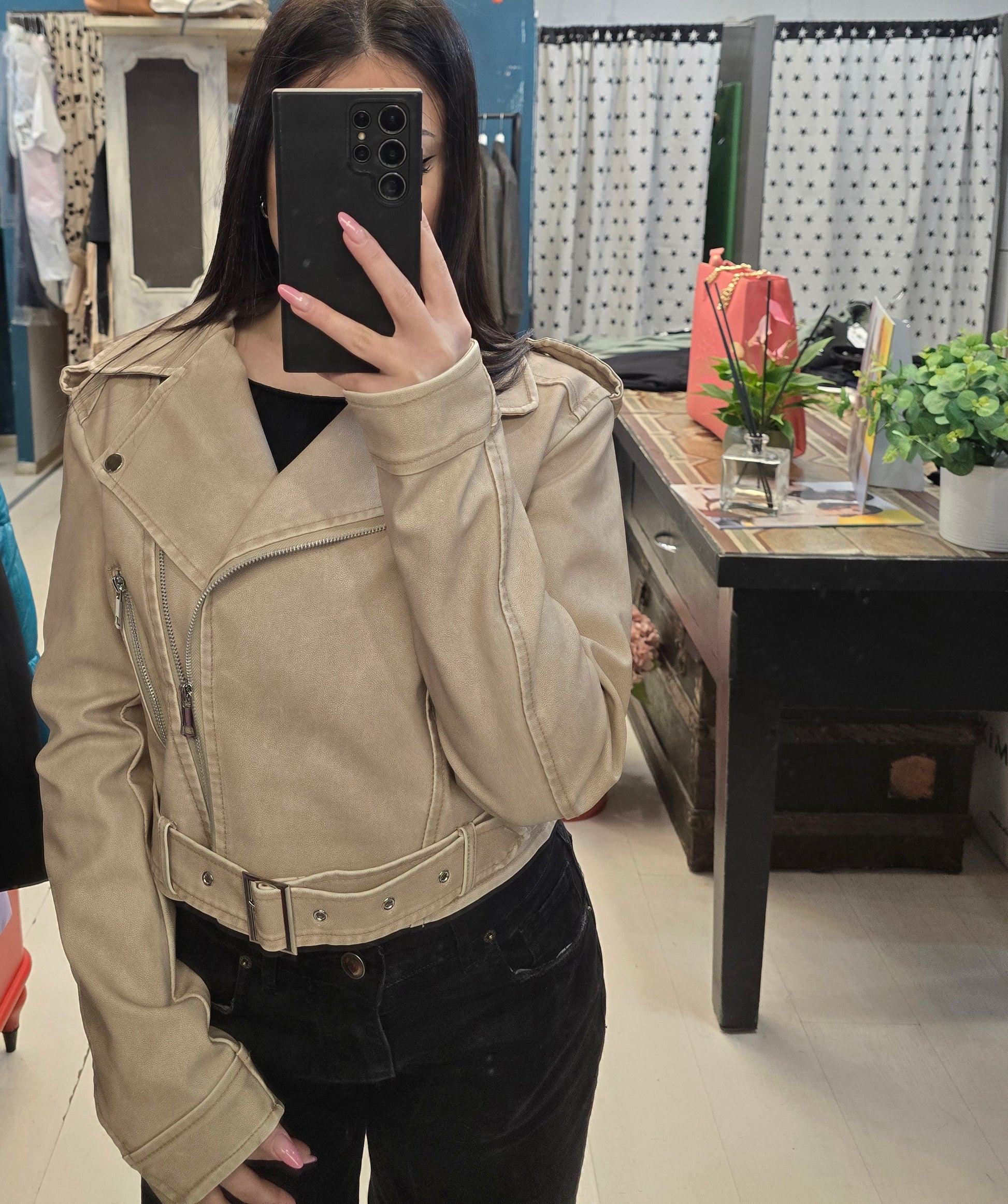 Rock sostenibile che fa carattere! Questo chiodo corto ecopelle con effetto maltinto è l'alleato perfetto per look casual grintosi e sostenibili.