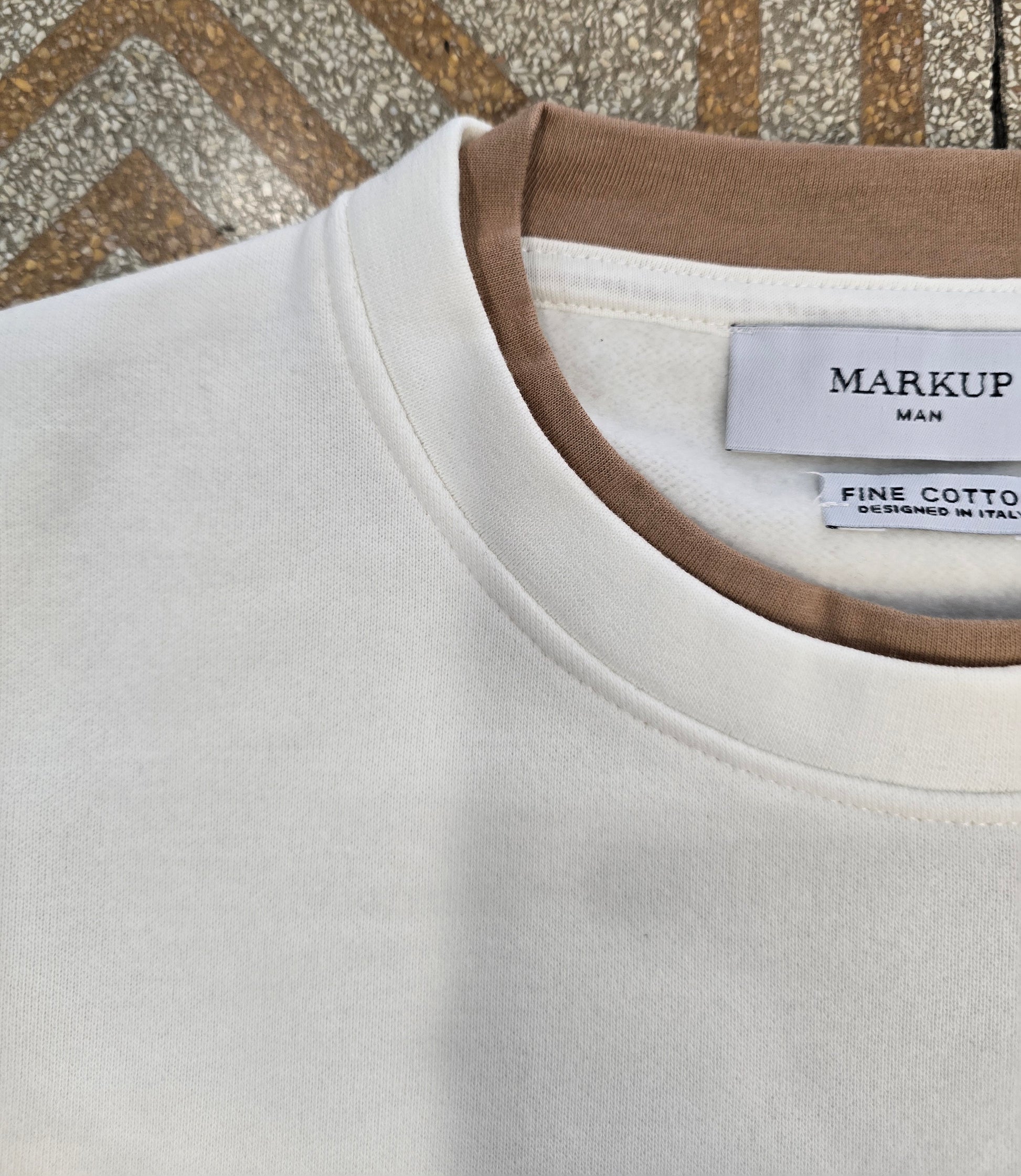 Felpa paricollo in cotone felpato avorio con inserti a contrasto nel collo e cinturino.