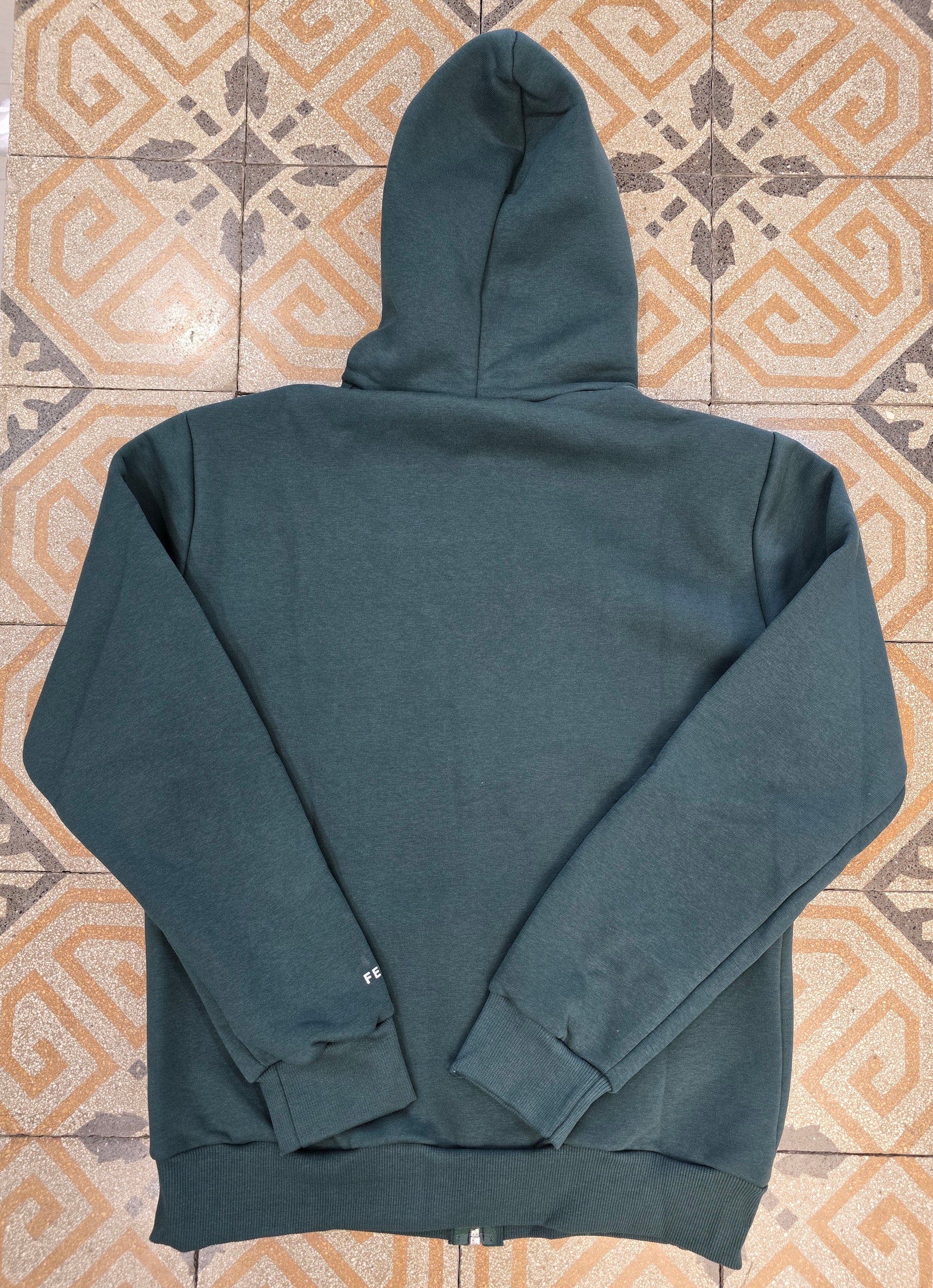 Felpa Cotone Felpato Cappuccio Tascone Zip Verde