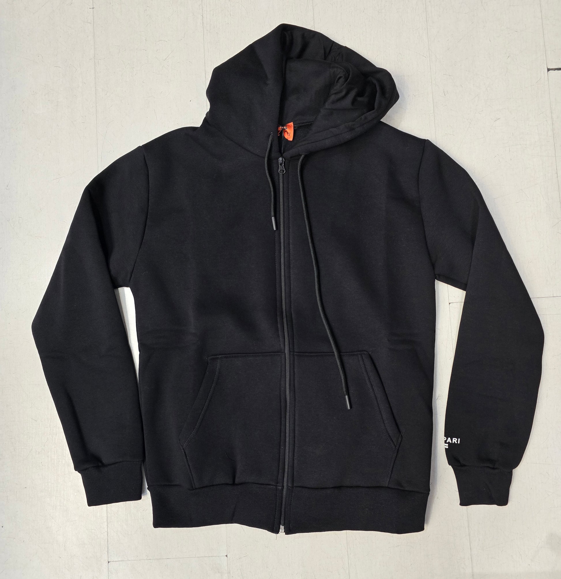 Protezione urban che funziona! Questa felpa cotone felpato verde militare con cappuccio, tascone e zip è perfetta per look casual funzionali e protettivi.