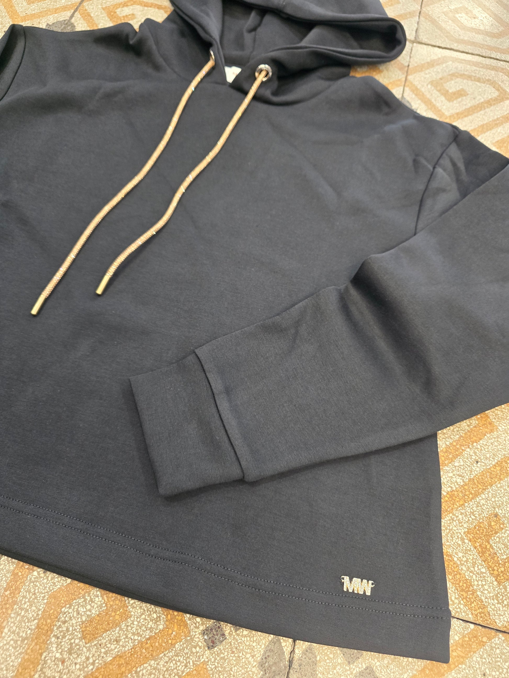 Felpa Cappuccio Interlock Viscosa Coulisse Strass