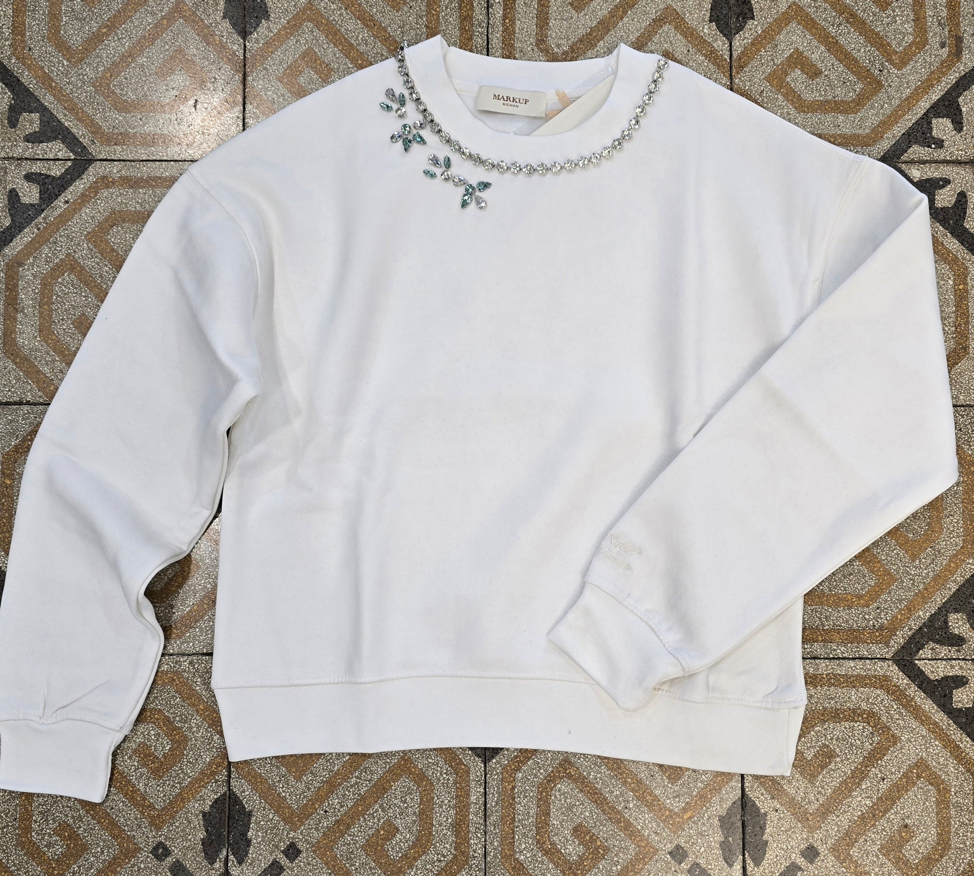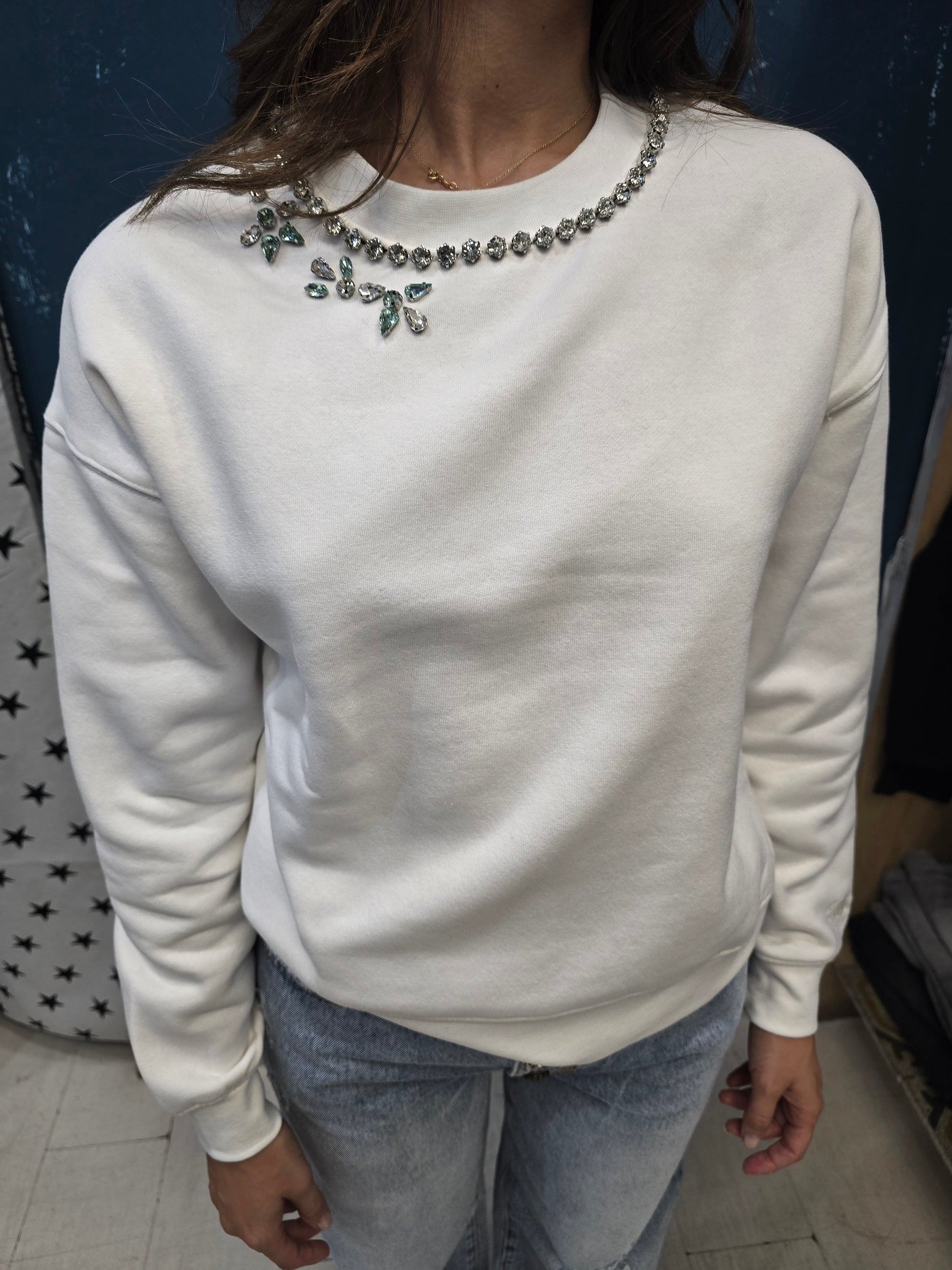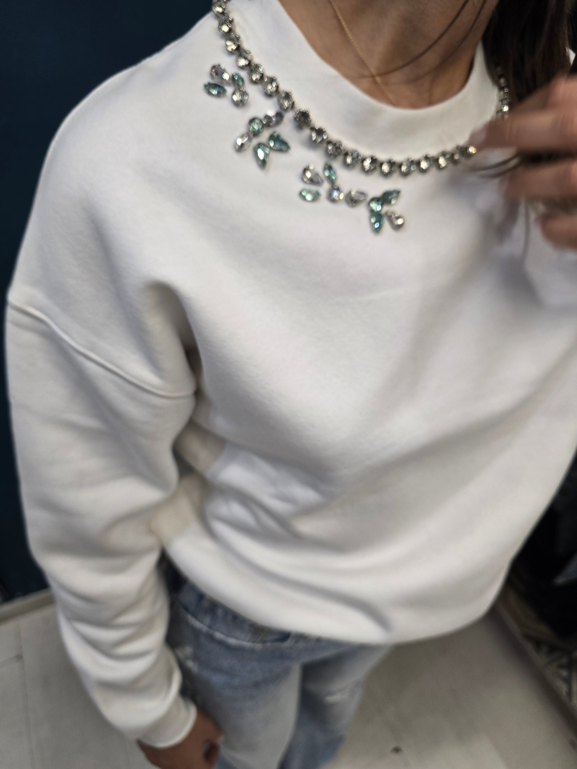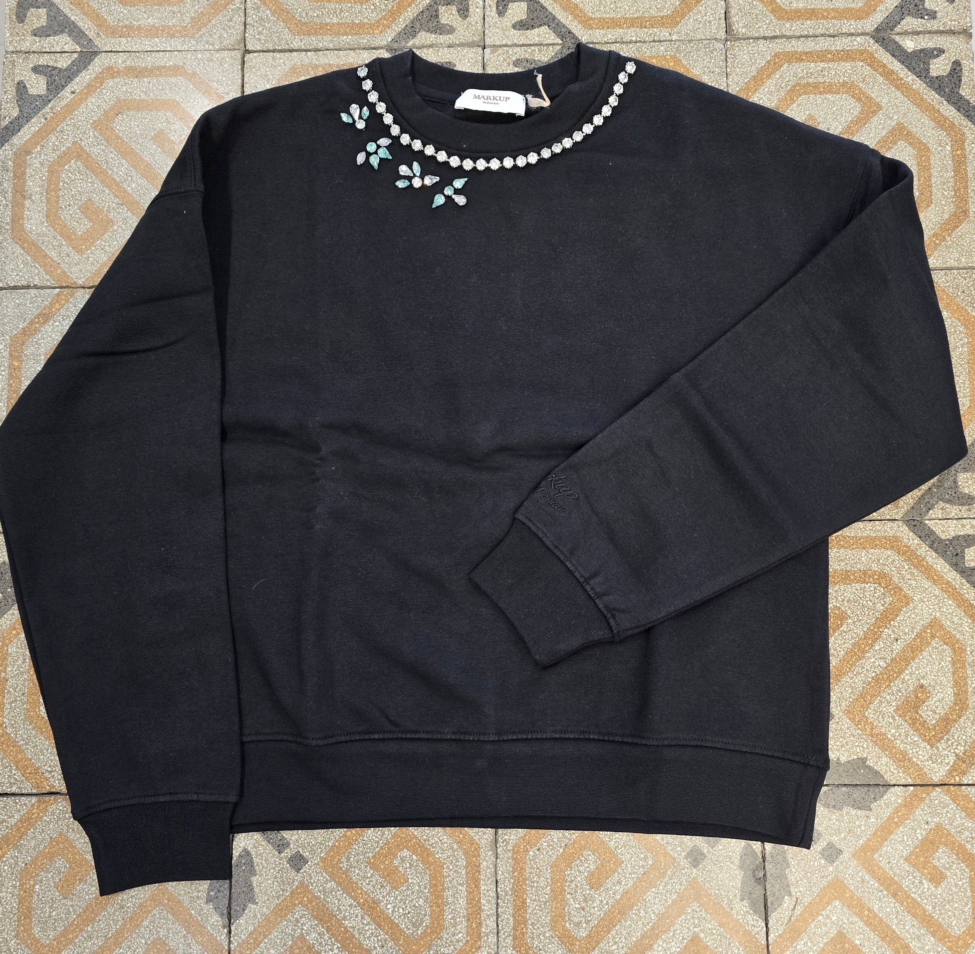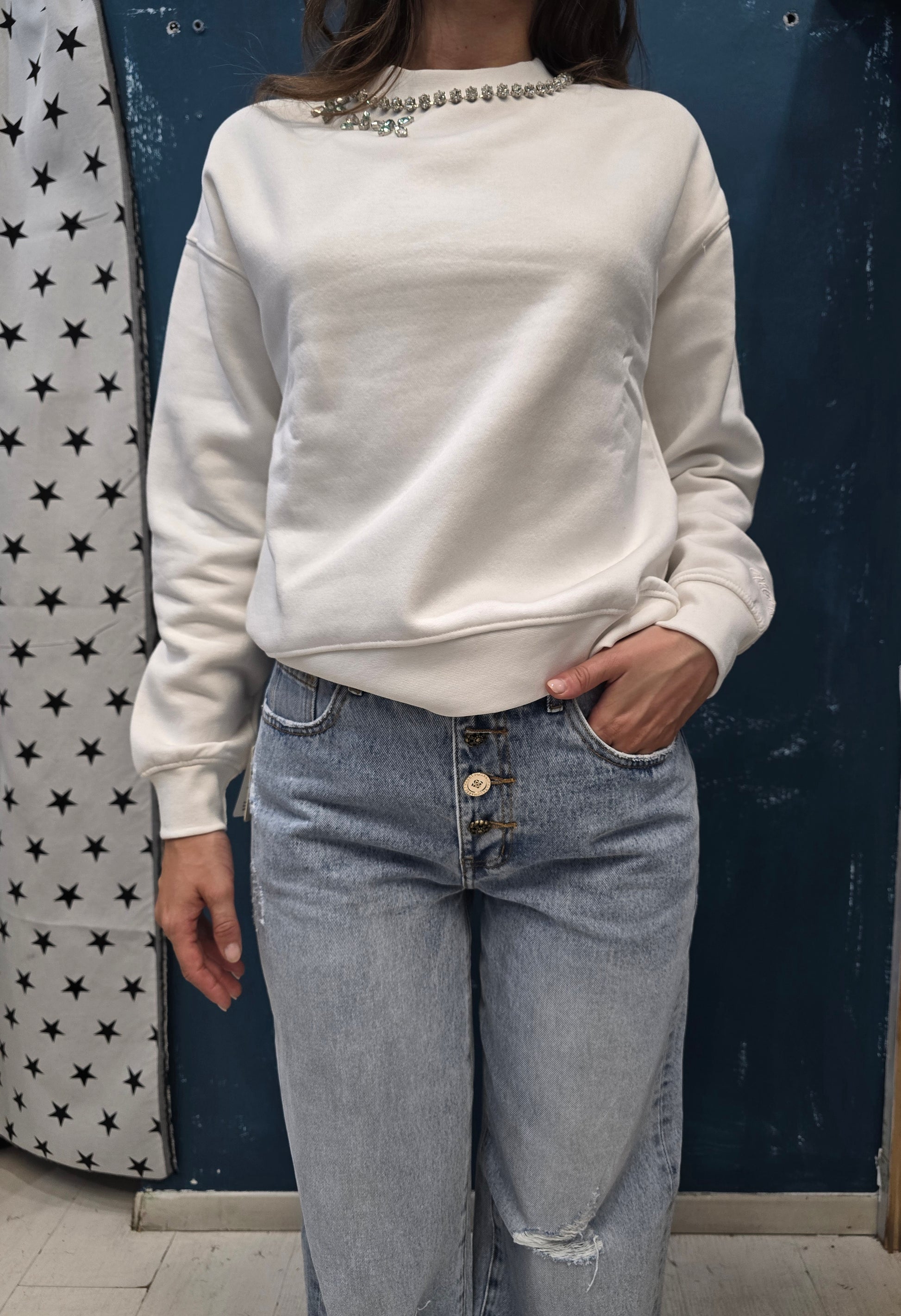 Felpa Paricollo Pietre Scollatura Cotone Felpato