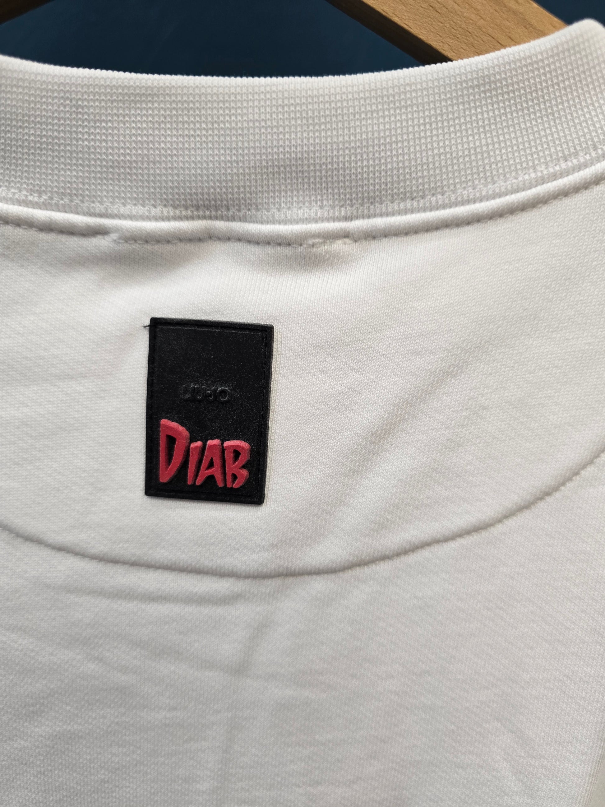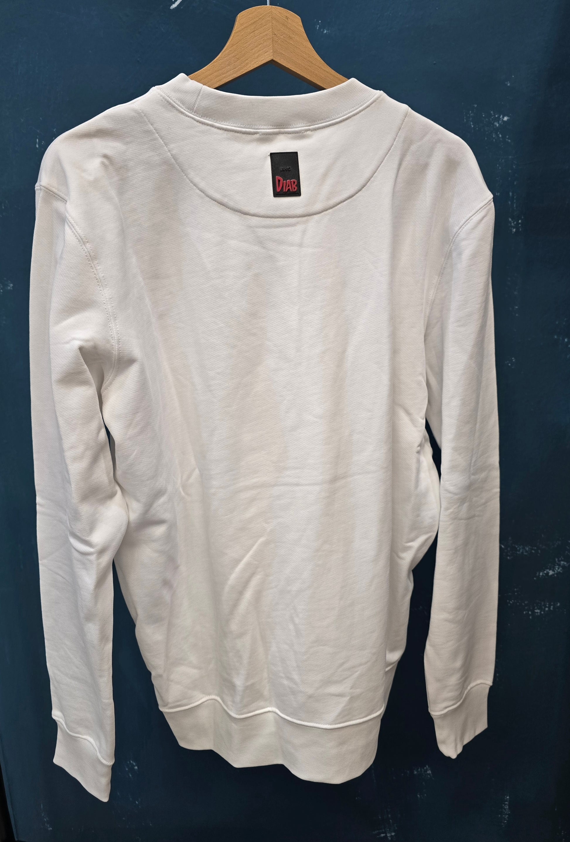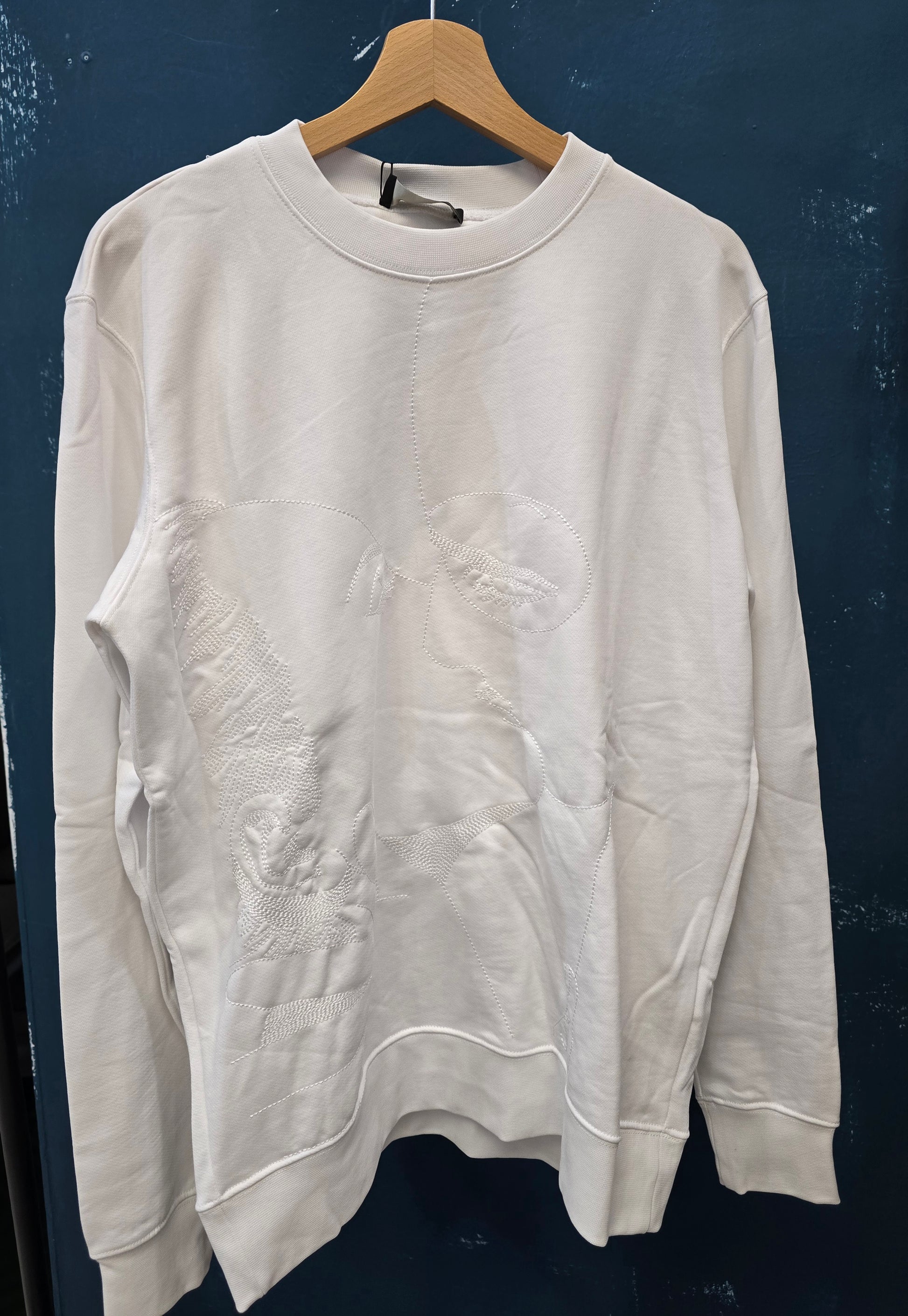Felpa paricollo in cotone garzato bianco con ricamo tono su tono, taglia L.