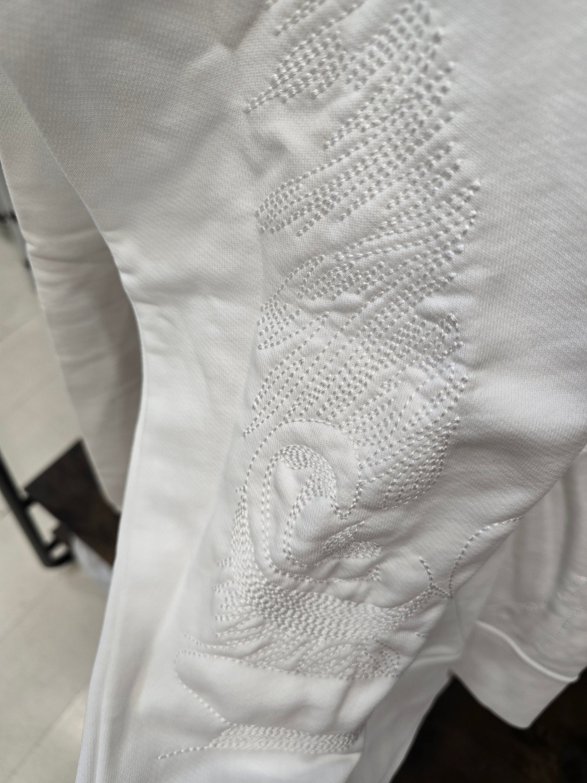 Felpa Paricollo Cotone Garzato Bianco Ricamata Tono Tono Taglia L