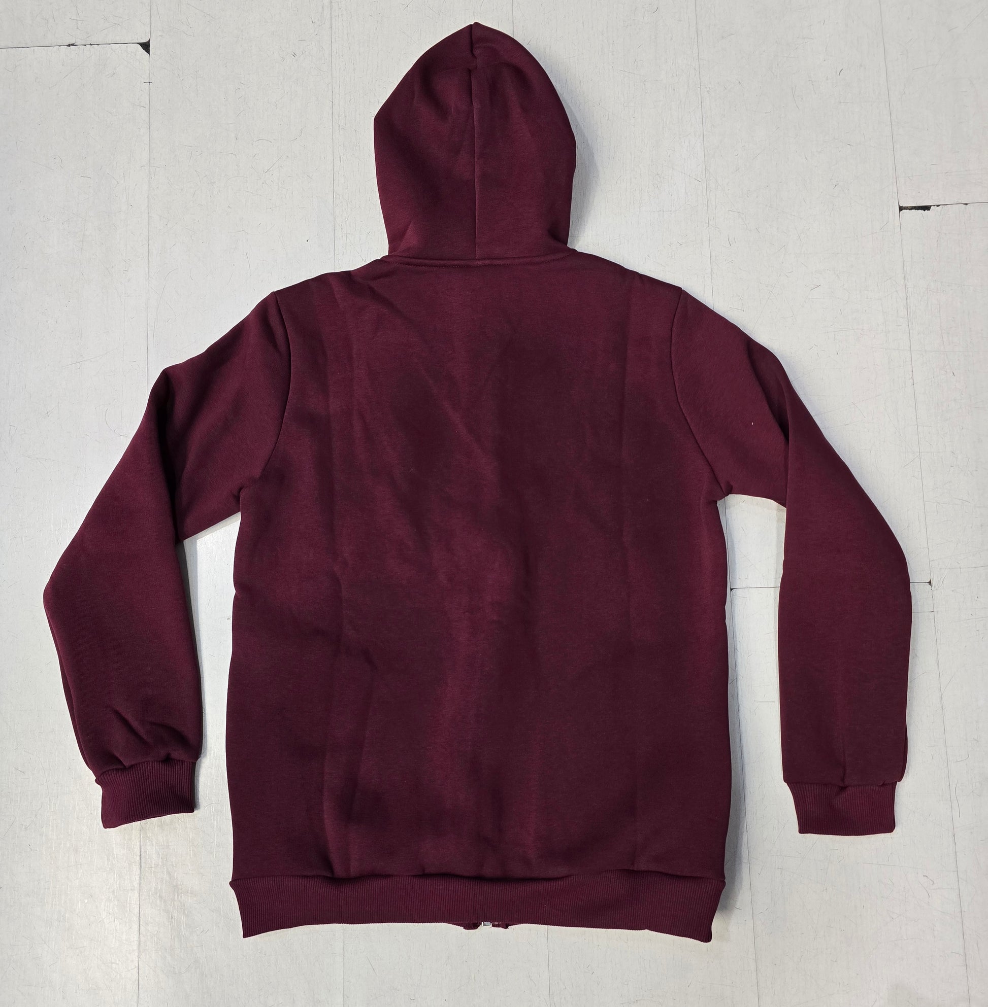 Felpa Cappuccio Zip Cotone Felpato Bordeaux