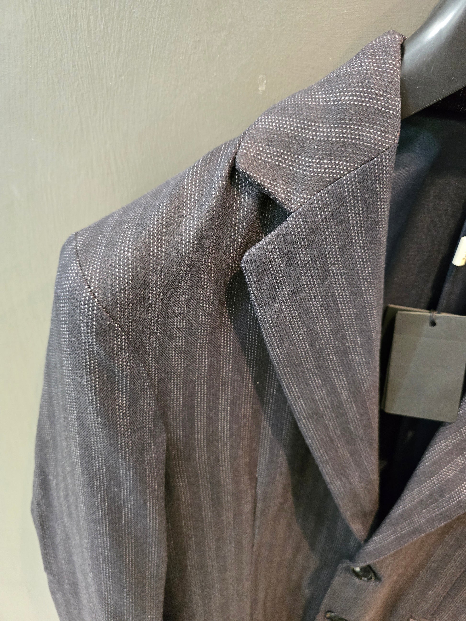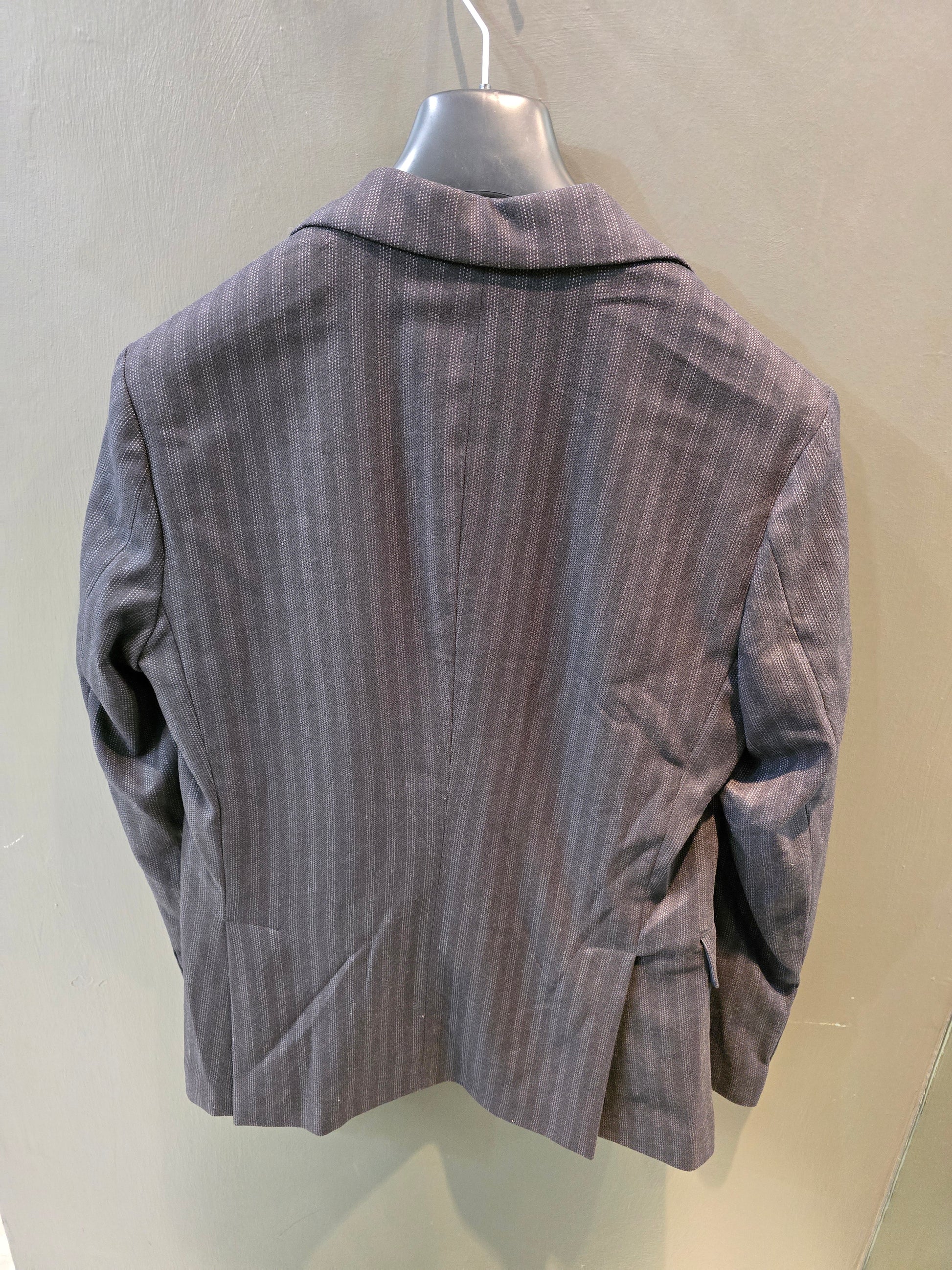 Giacca gessata blu scuro completabile con pantalone coordinato, taglia 44.