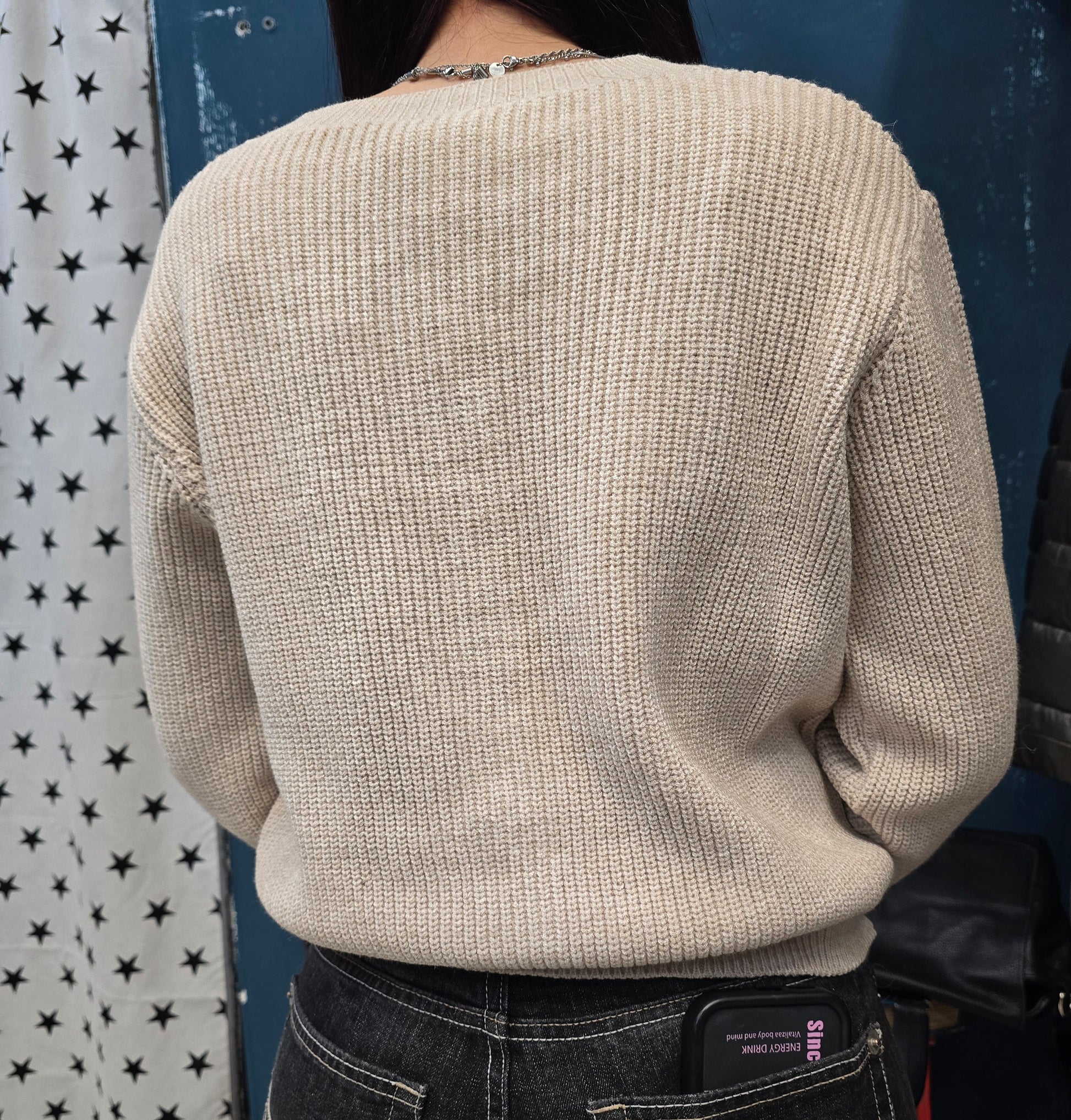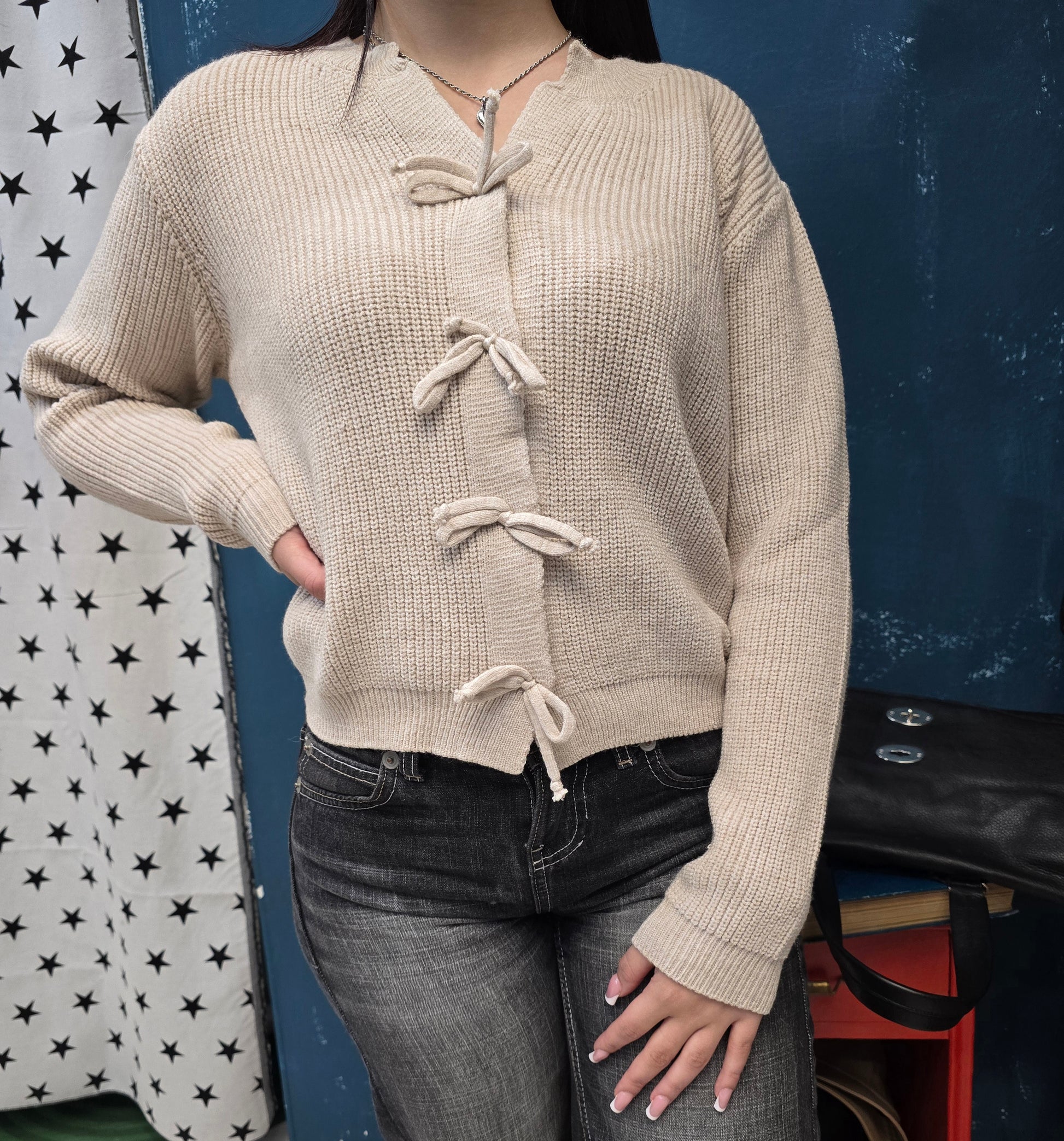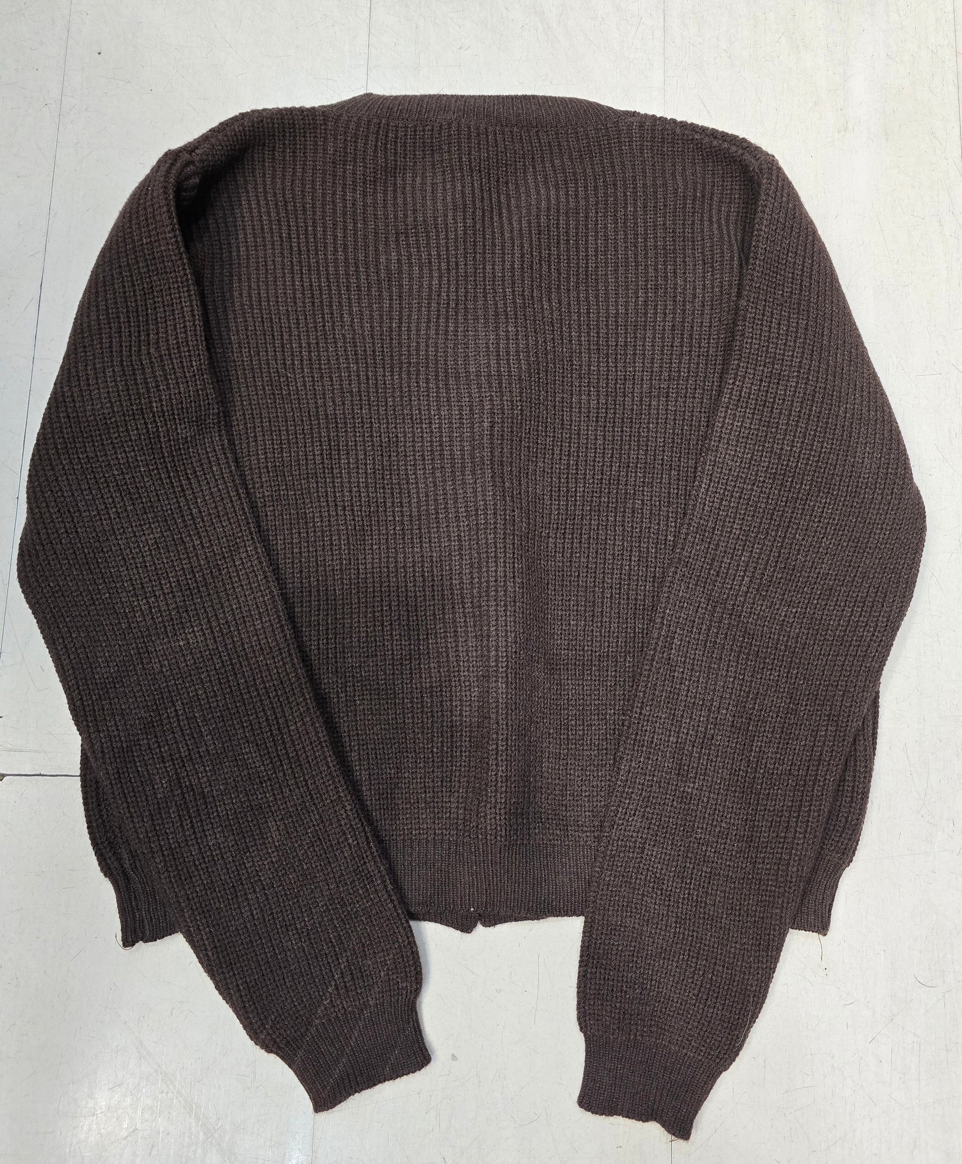 Giacca in maglia a costa inglese modello aperto con chiusura bottoni nascosti e fiocchetti di rifinitura modello in taglia unica con vestibilità regolare colore marrone e avorio