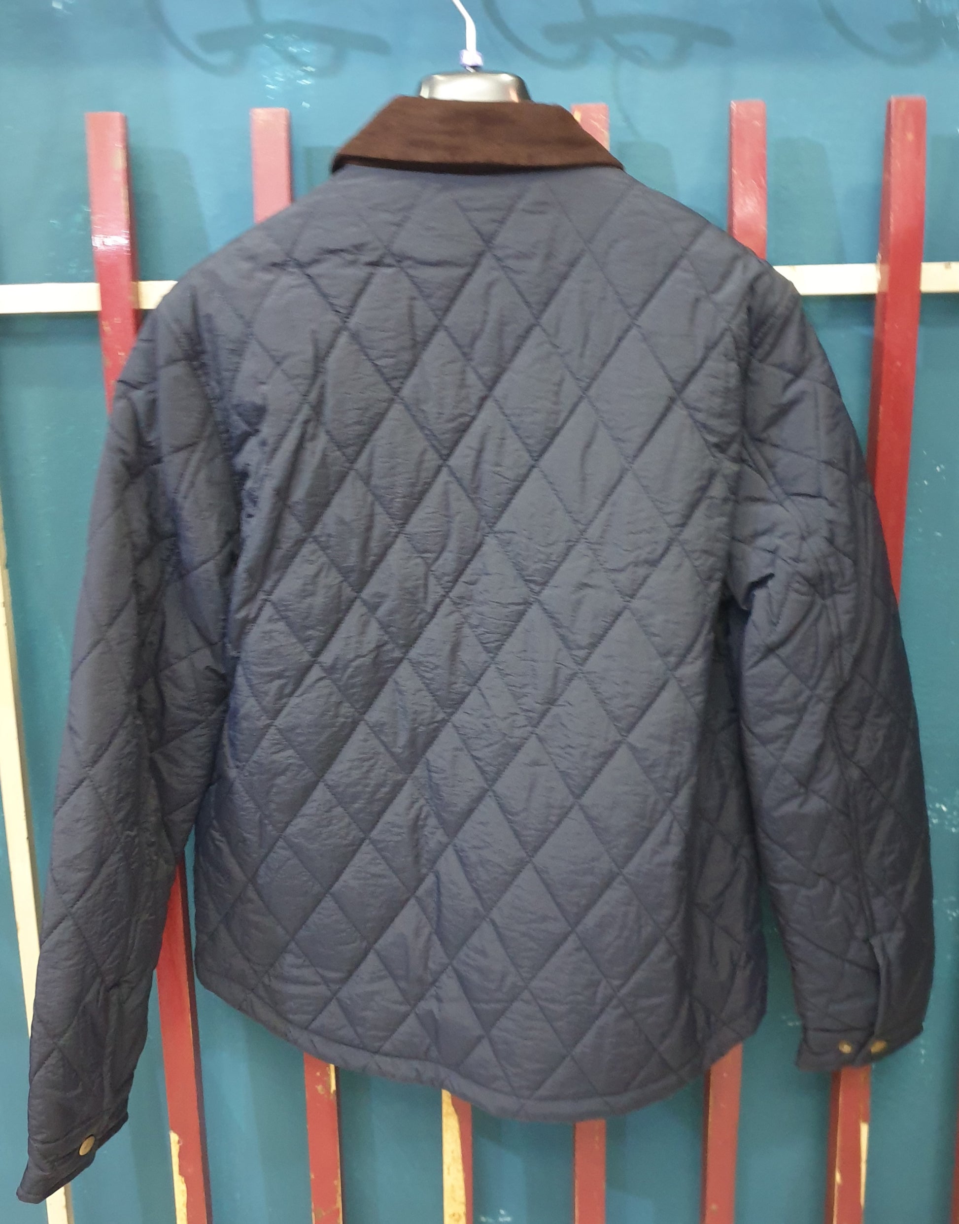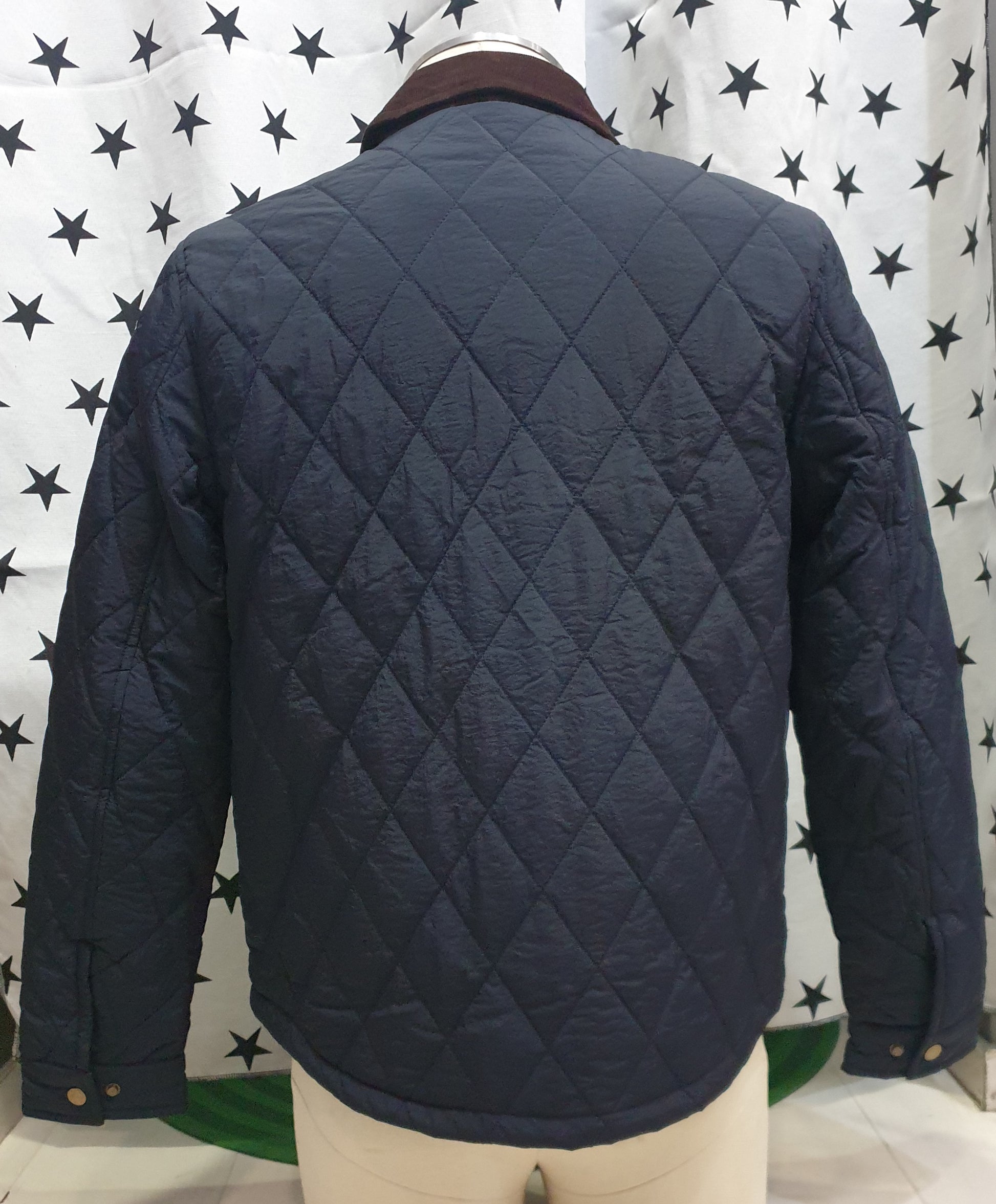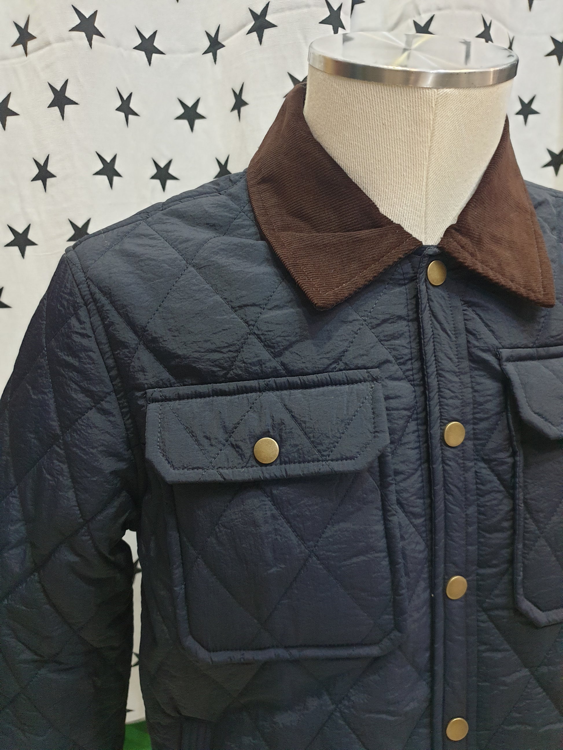 Giacca trapuntata impermeabile con colletto in velluto rigato marrone colore blu