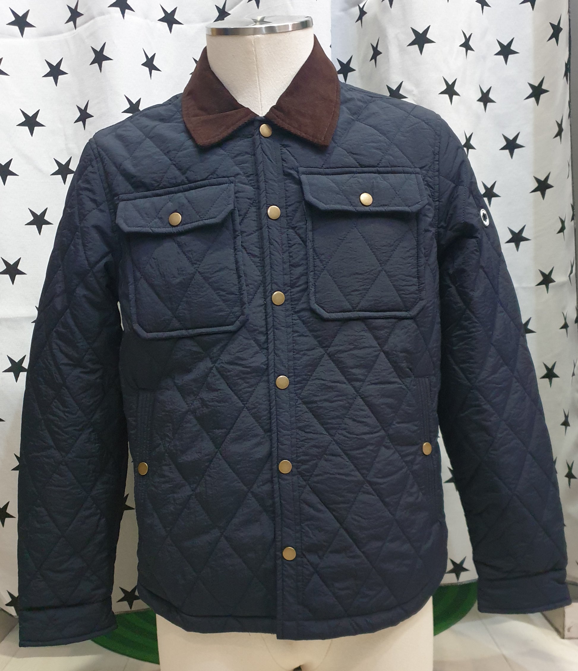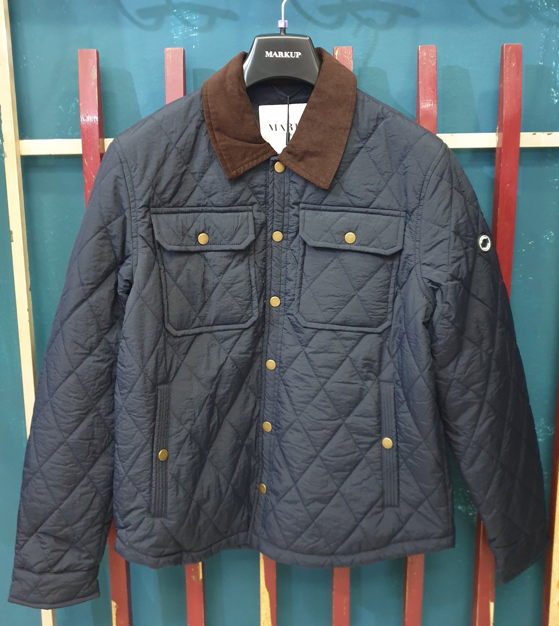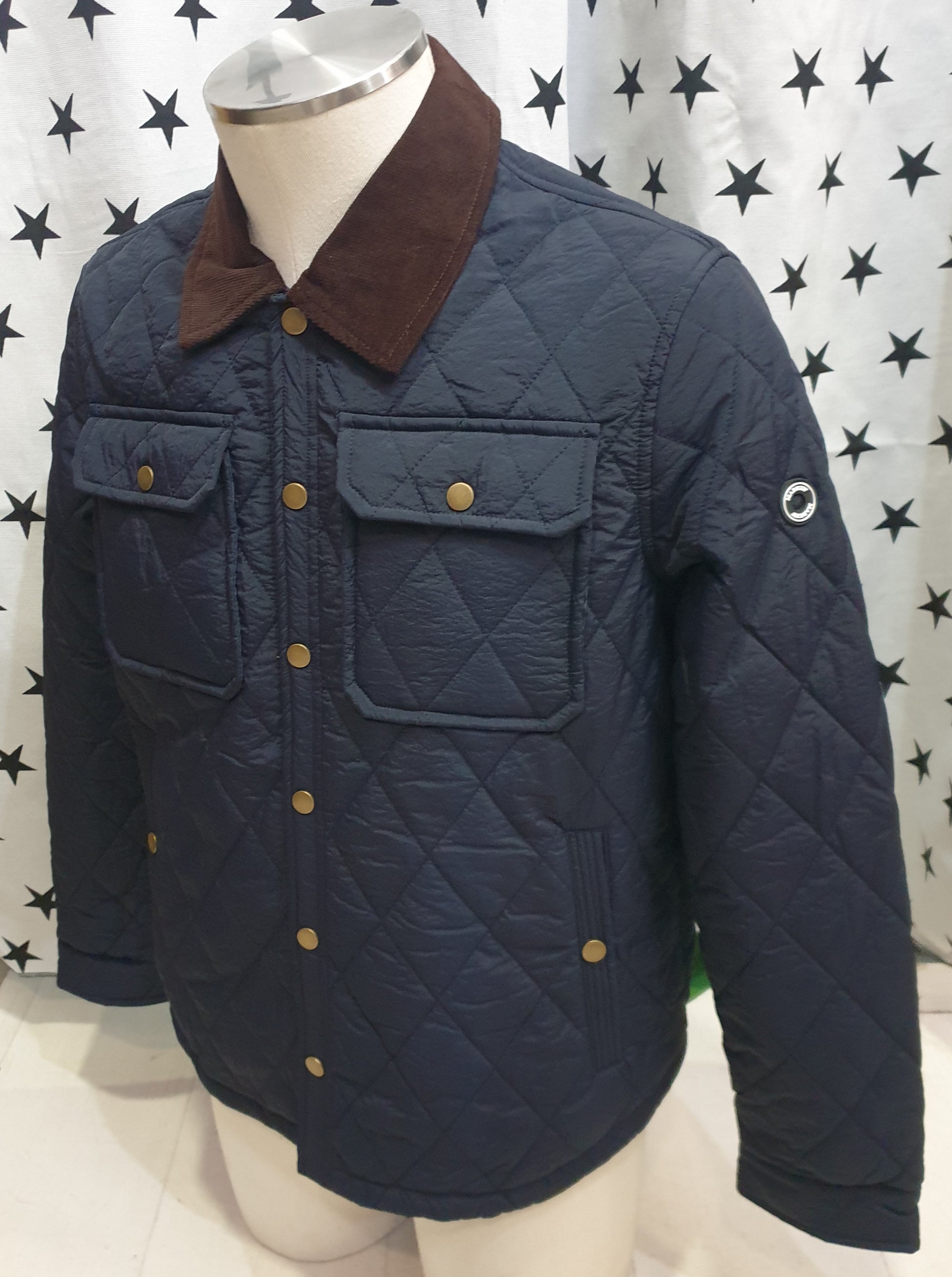 Giacca trapuntata impermeabile con colletto in velluto rigato marrone colore blu