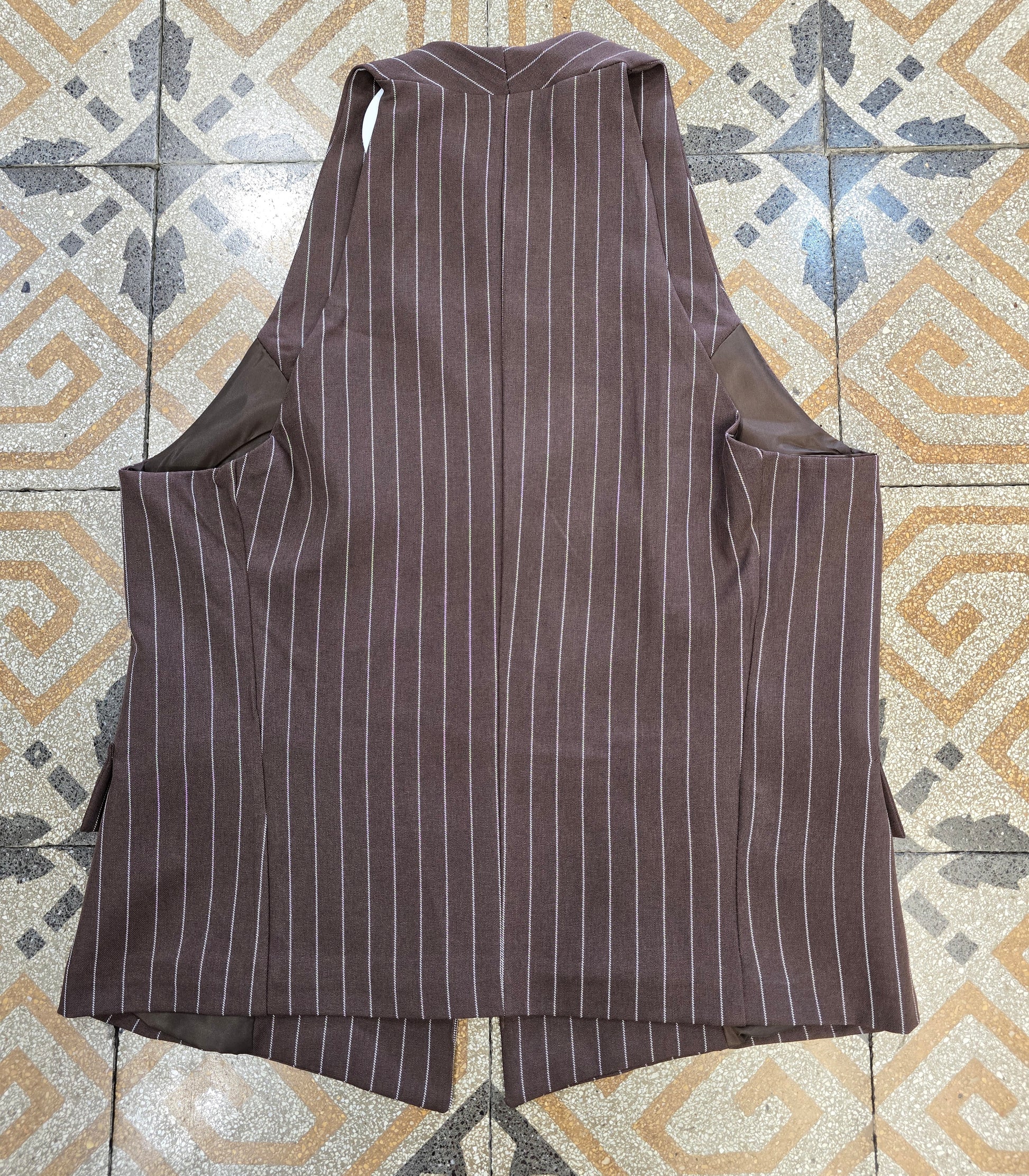 Gilet gessato marrone abbottonato, taglia unica coordinabile.