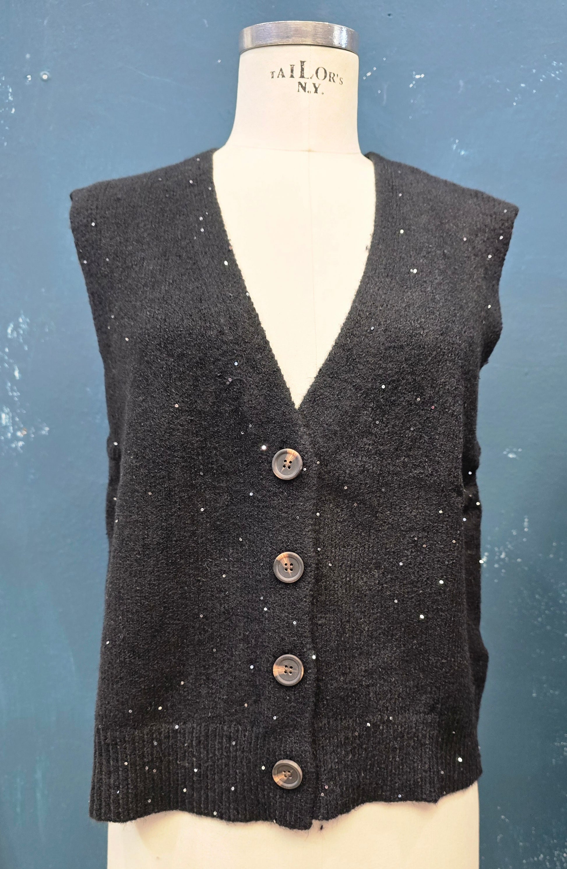Gilet in maglia abbottonato con paillettes integrate nel filato.