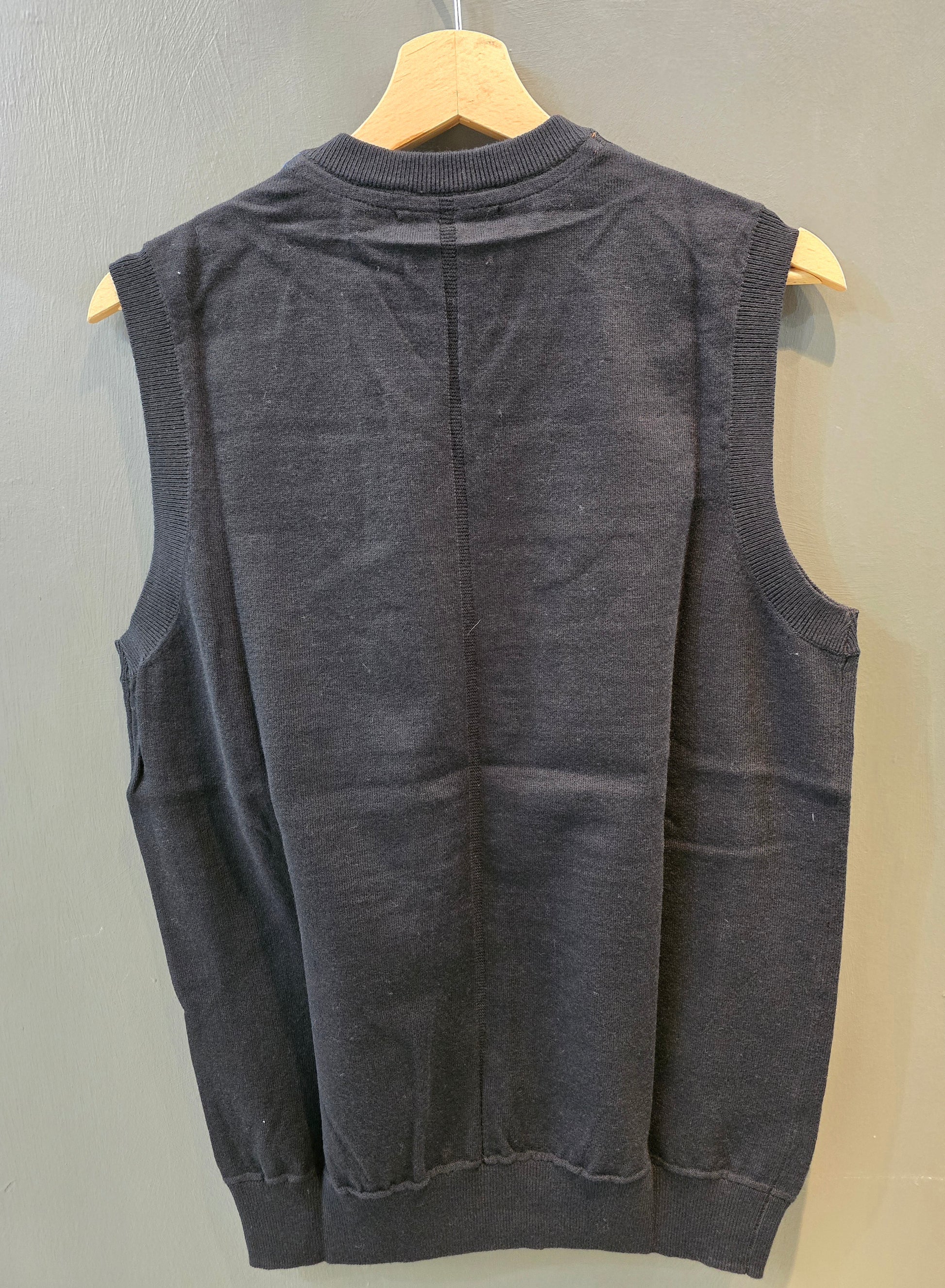 Gilet in maglia cotone e lana nero con scollo a V.