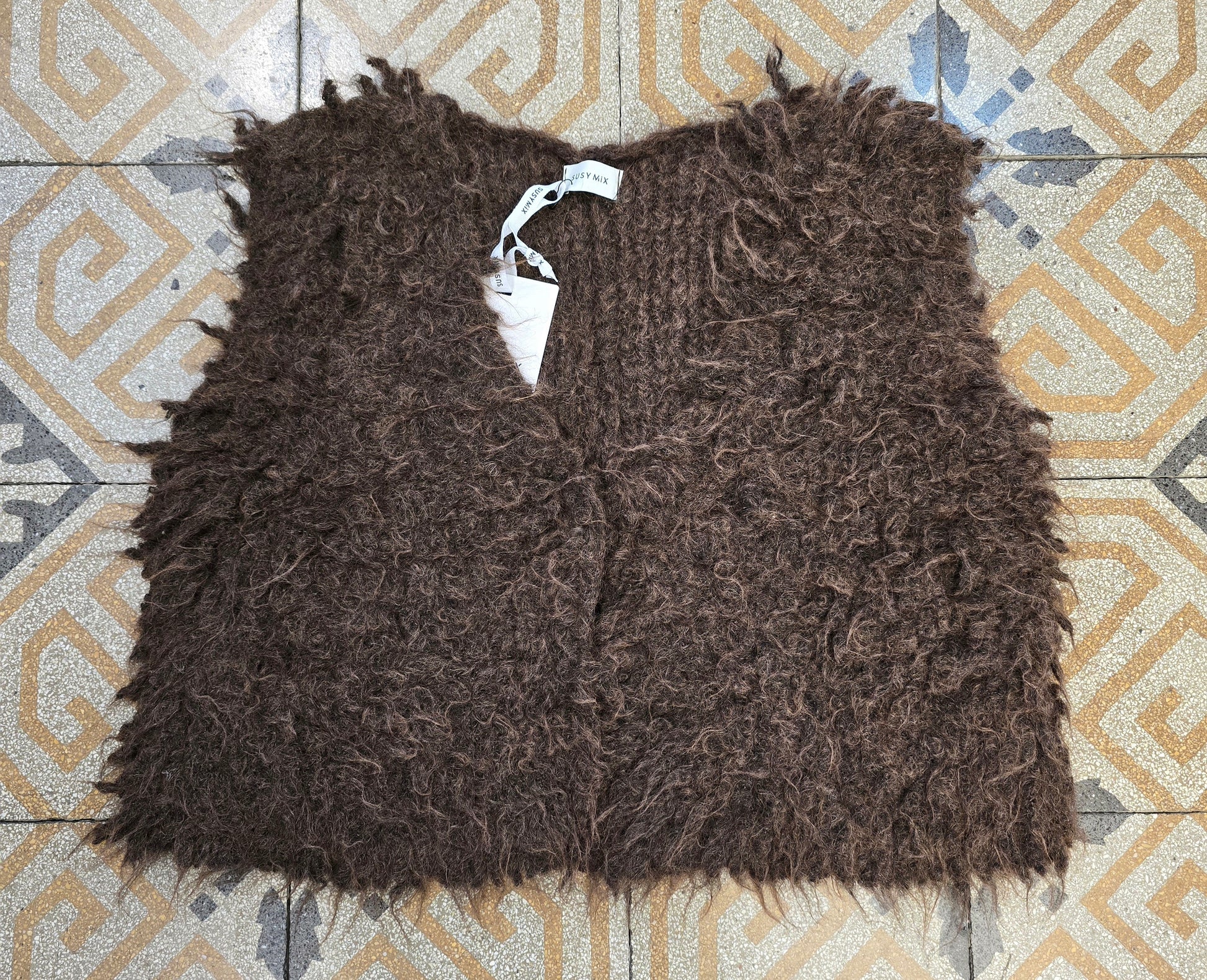 Gilet corto marrone in maglia con bottoni, taglia unica.