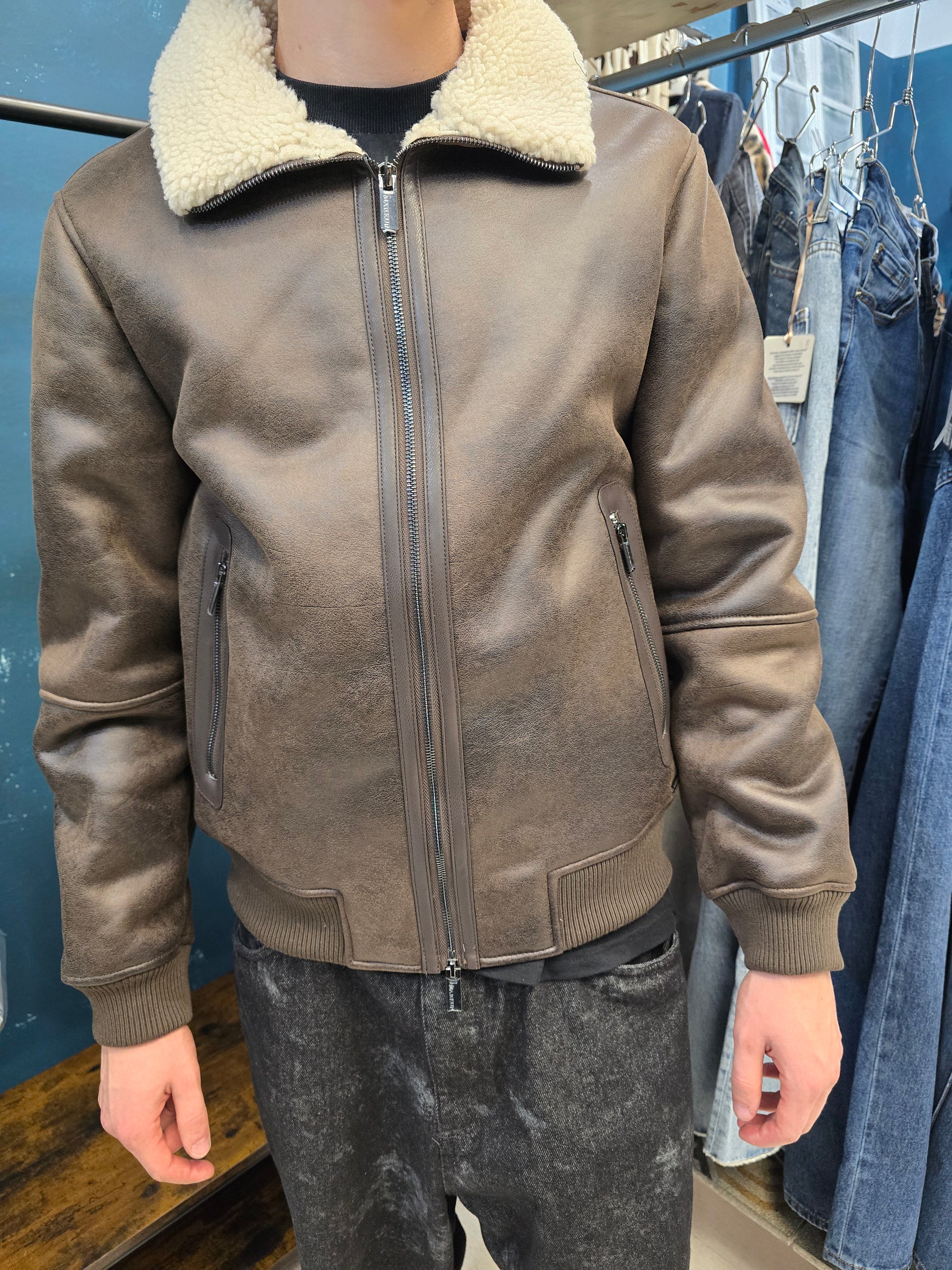 Giubbotto Ecopelle Imbottitura Aviatore Marrone