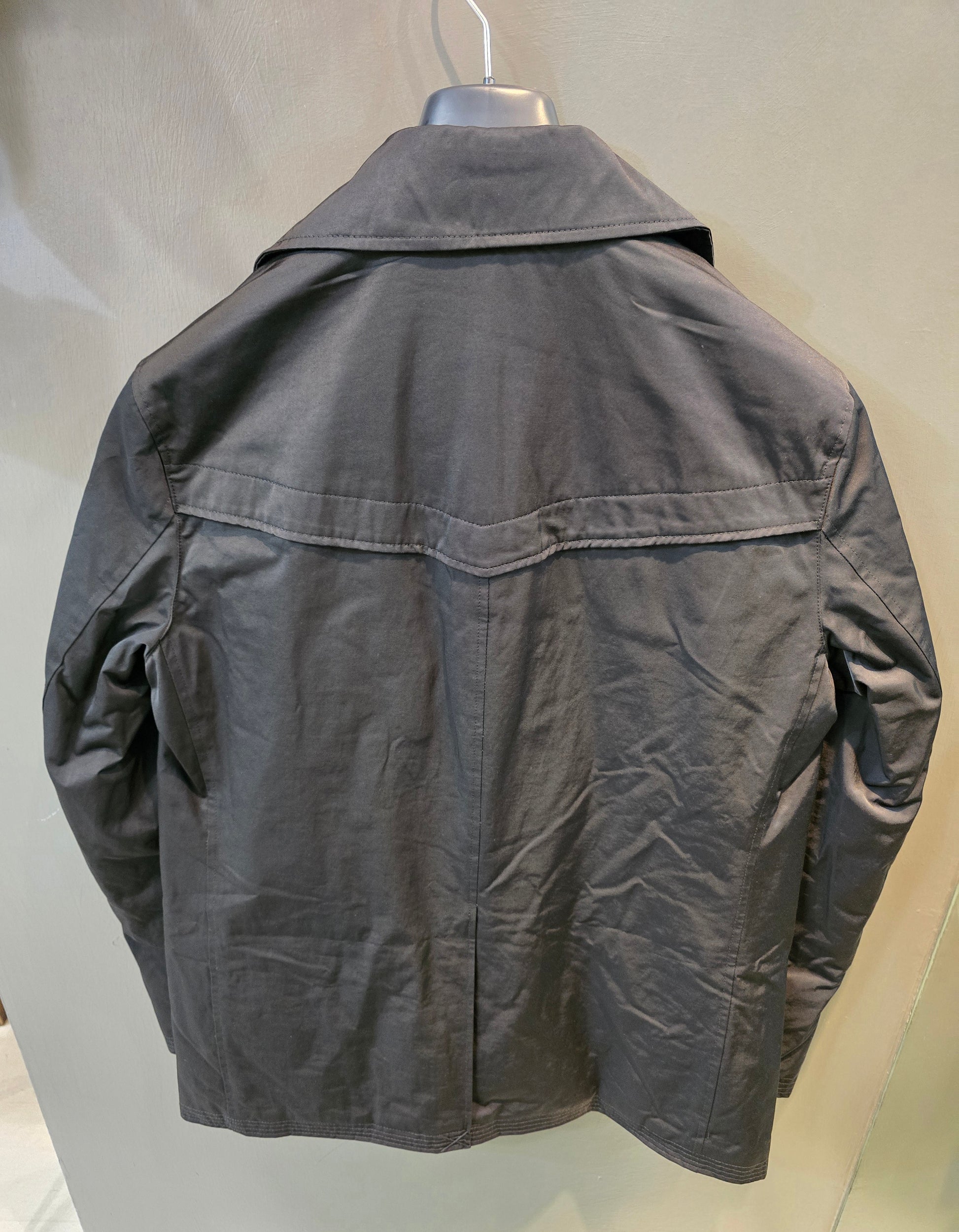 Giubbotto pea coat impermeabile nero con imbottitura media, doppiopetto e chiusura interna zip.