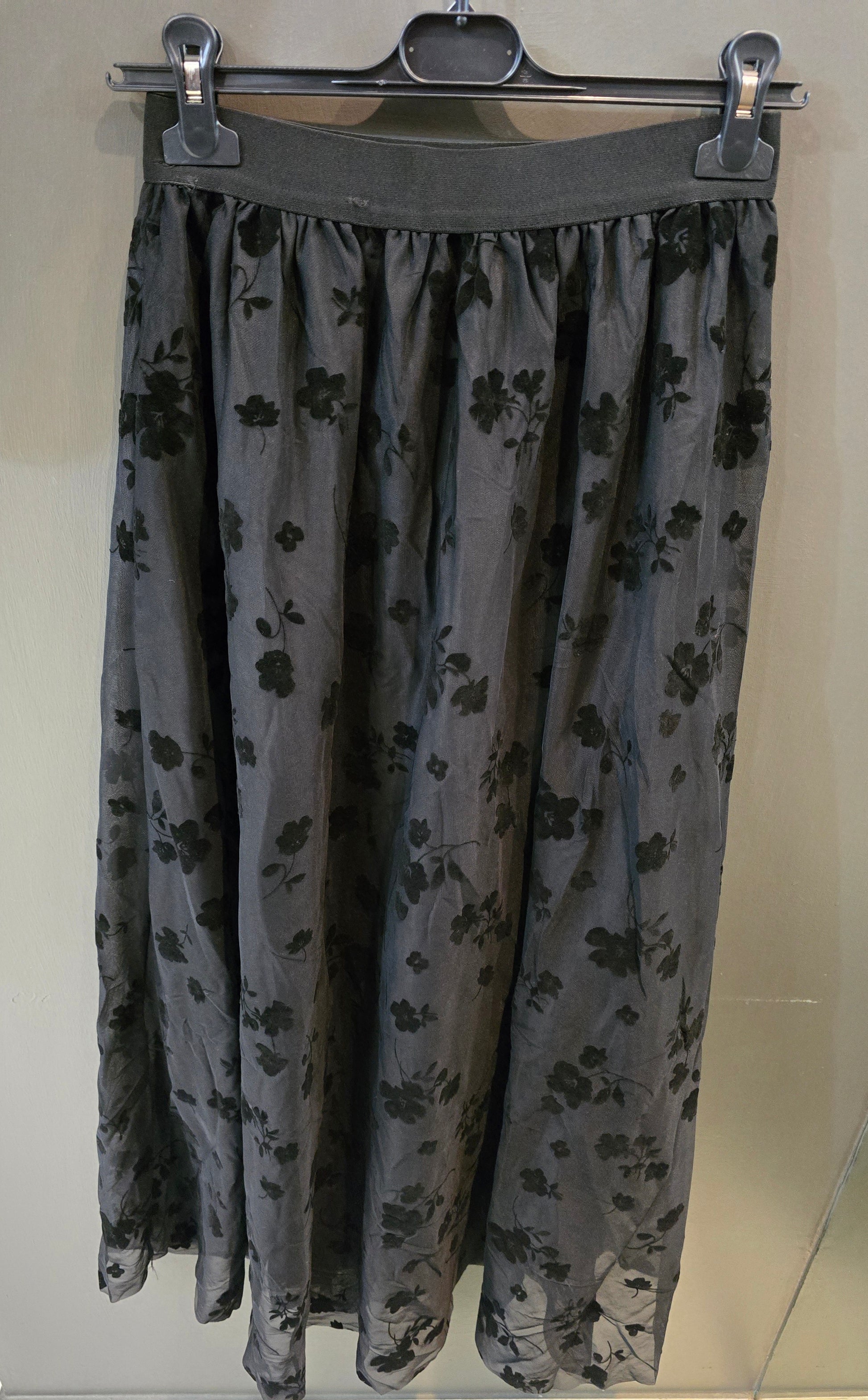 Gonna Lunga Elastico Vita Fiori Vellutati Nero