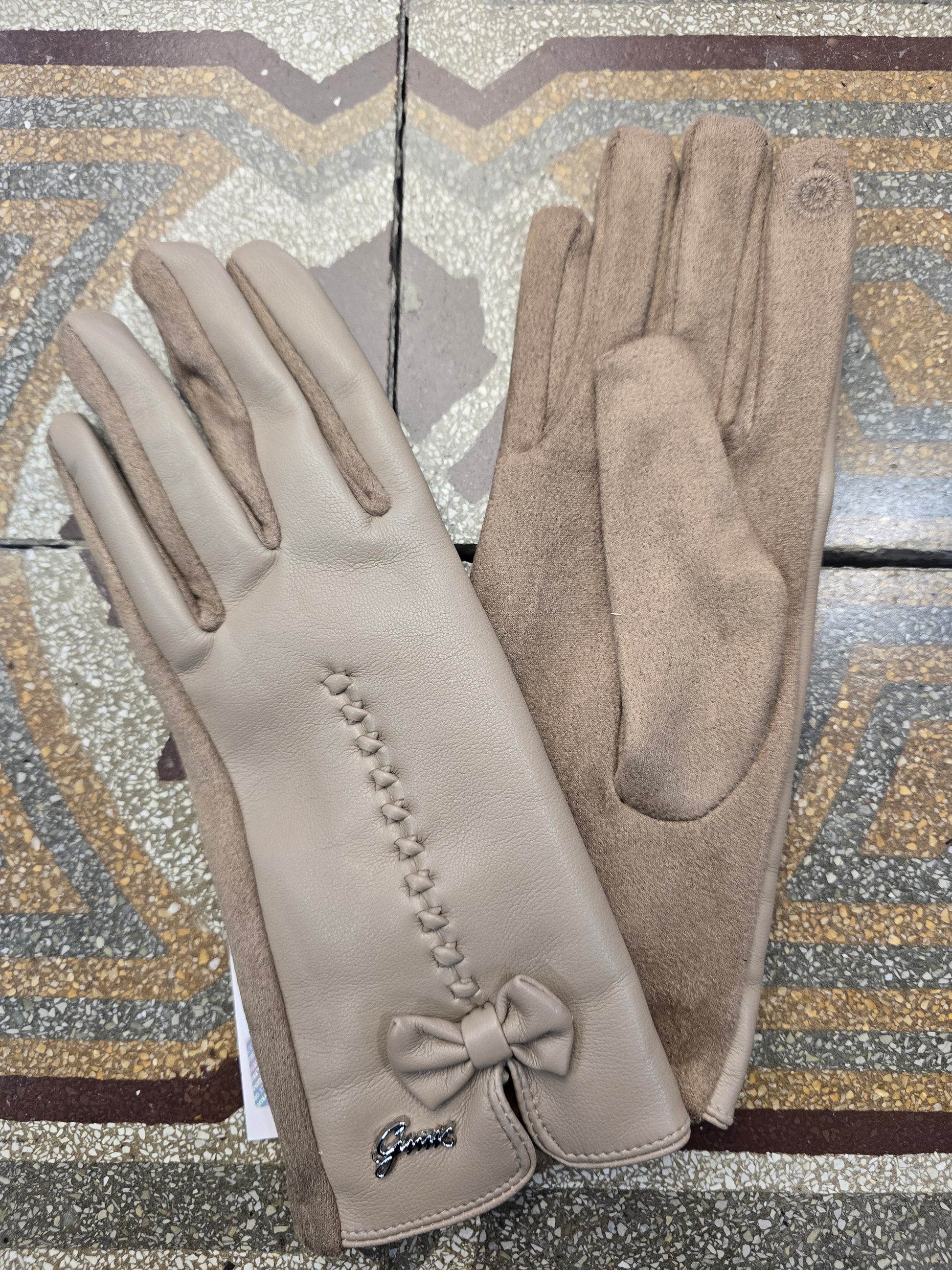 Guanti in ecopelle e stoffa con dito touch screen per telefono.