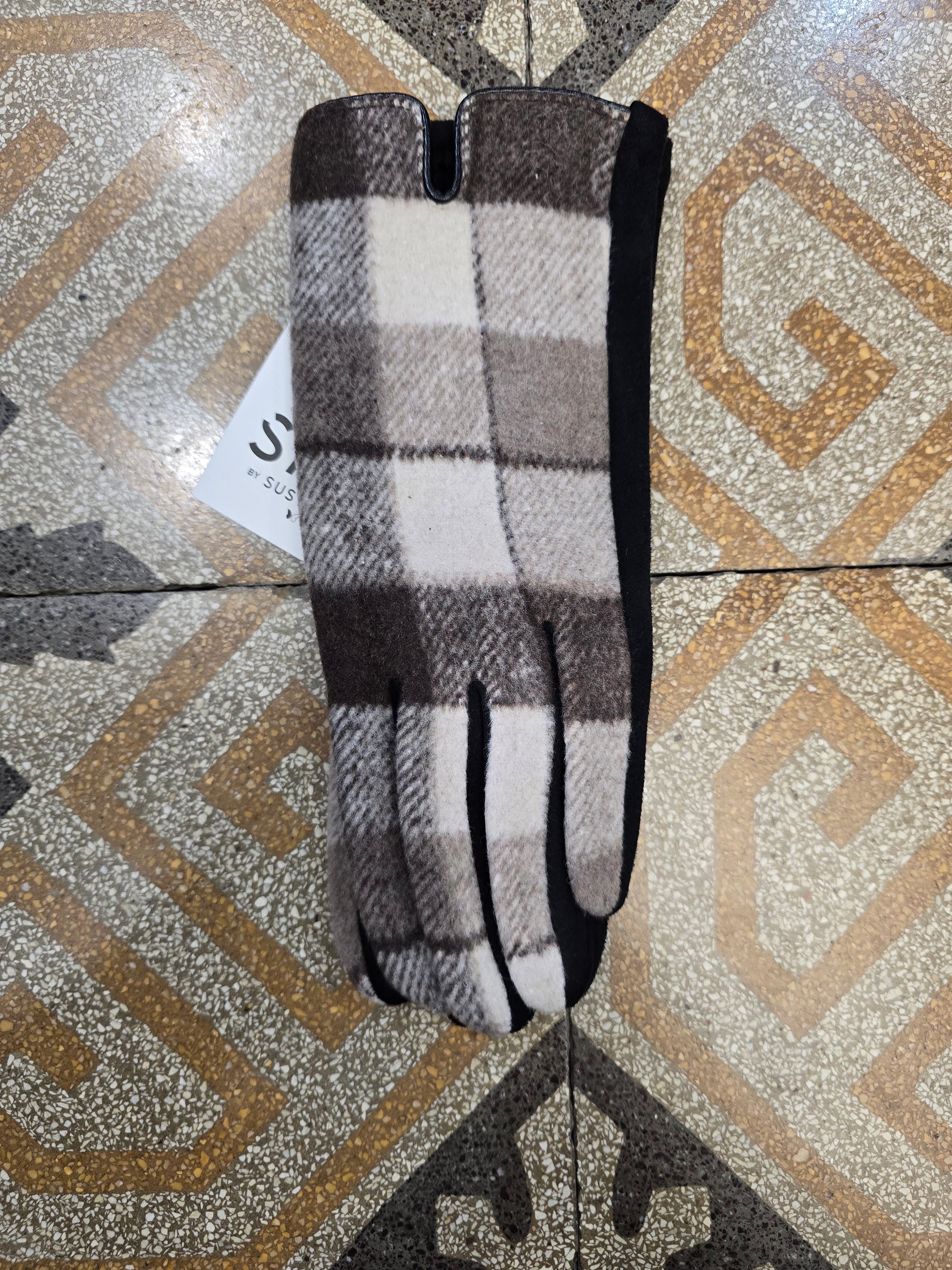 Guanti donna in taglia unica a fantasia check modello aderente alla mano e con ricamo nell'indice per il touch screen del telefono leggera imbottitura interna