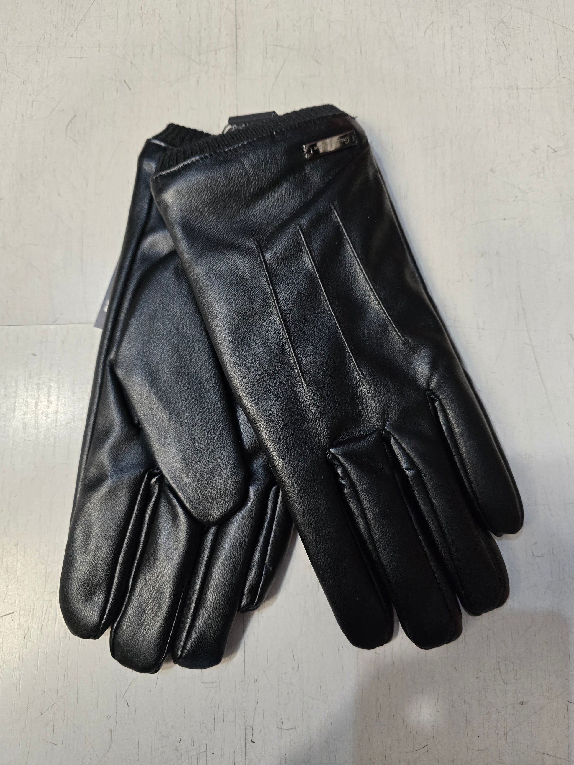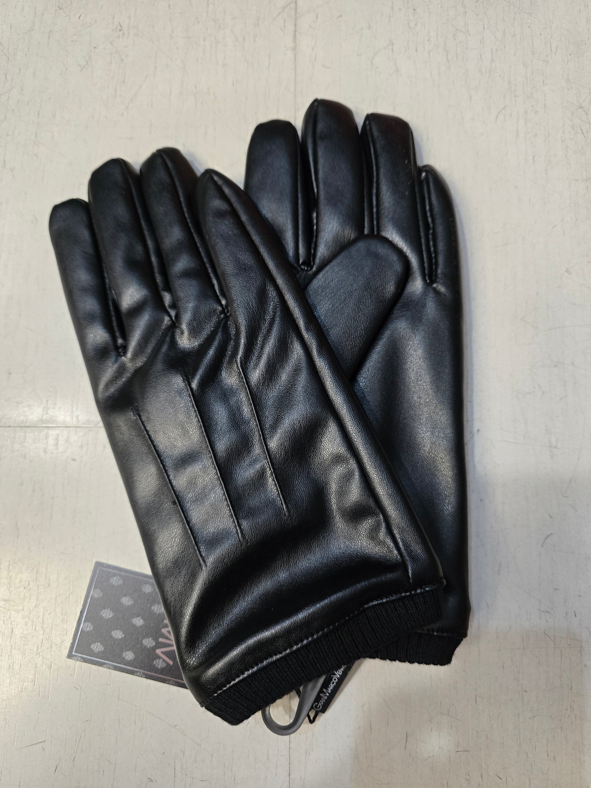 Guanti in ecopelle nera modello felpato internamente in ecopelliccia con dettaglio costurino che aderisce al polso e non fa passare il freddo in taglia unica