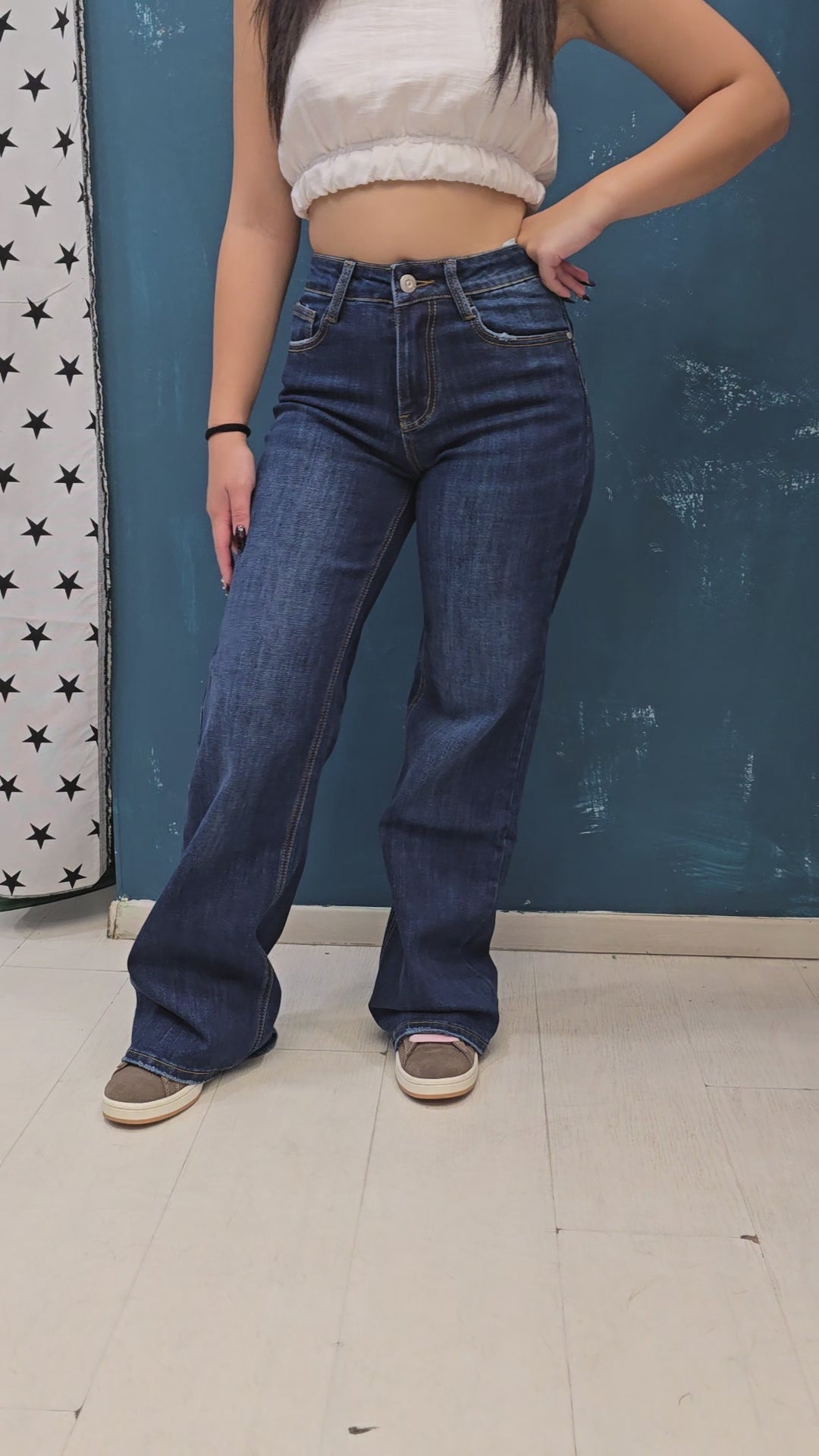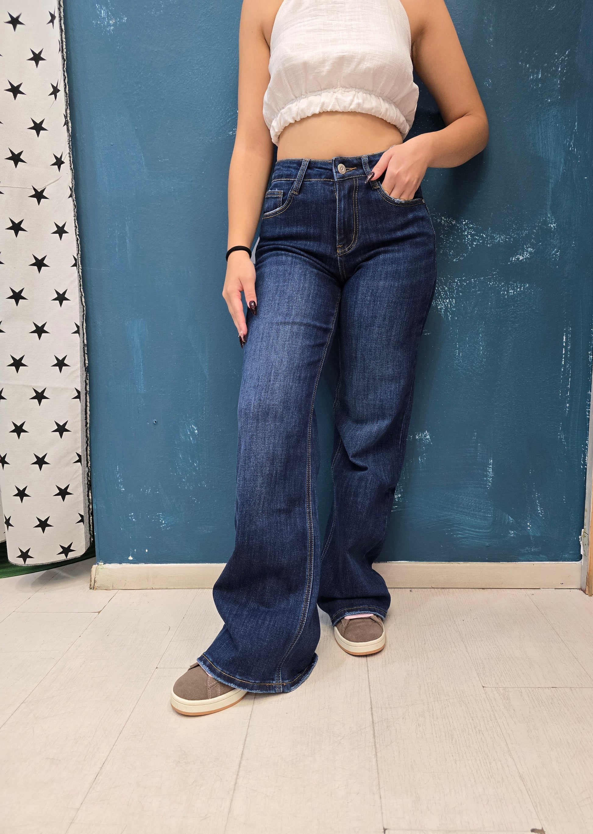 - Tessuto: Denim elasticizzato comfort