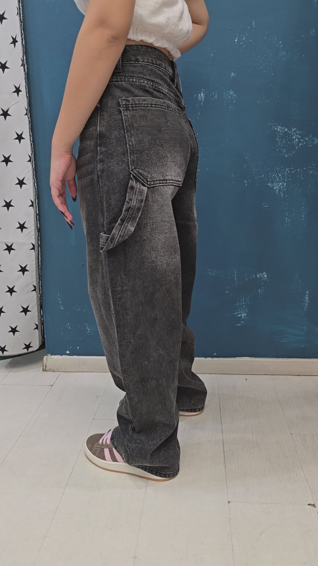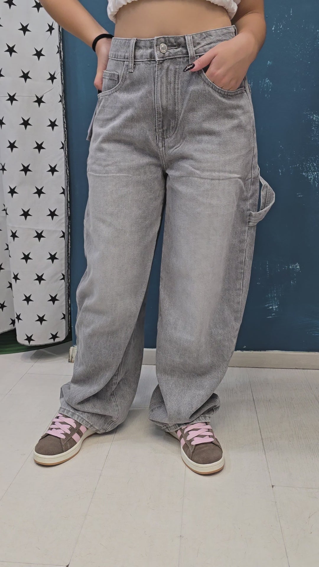- Tessuto: Denim fermo strutturato