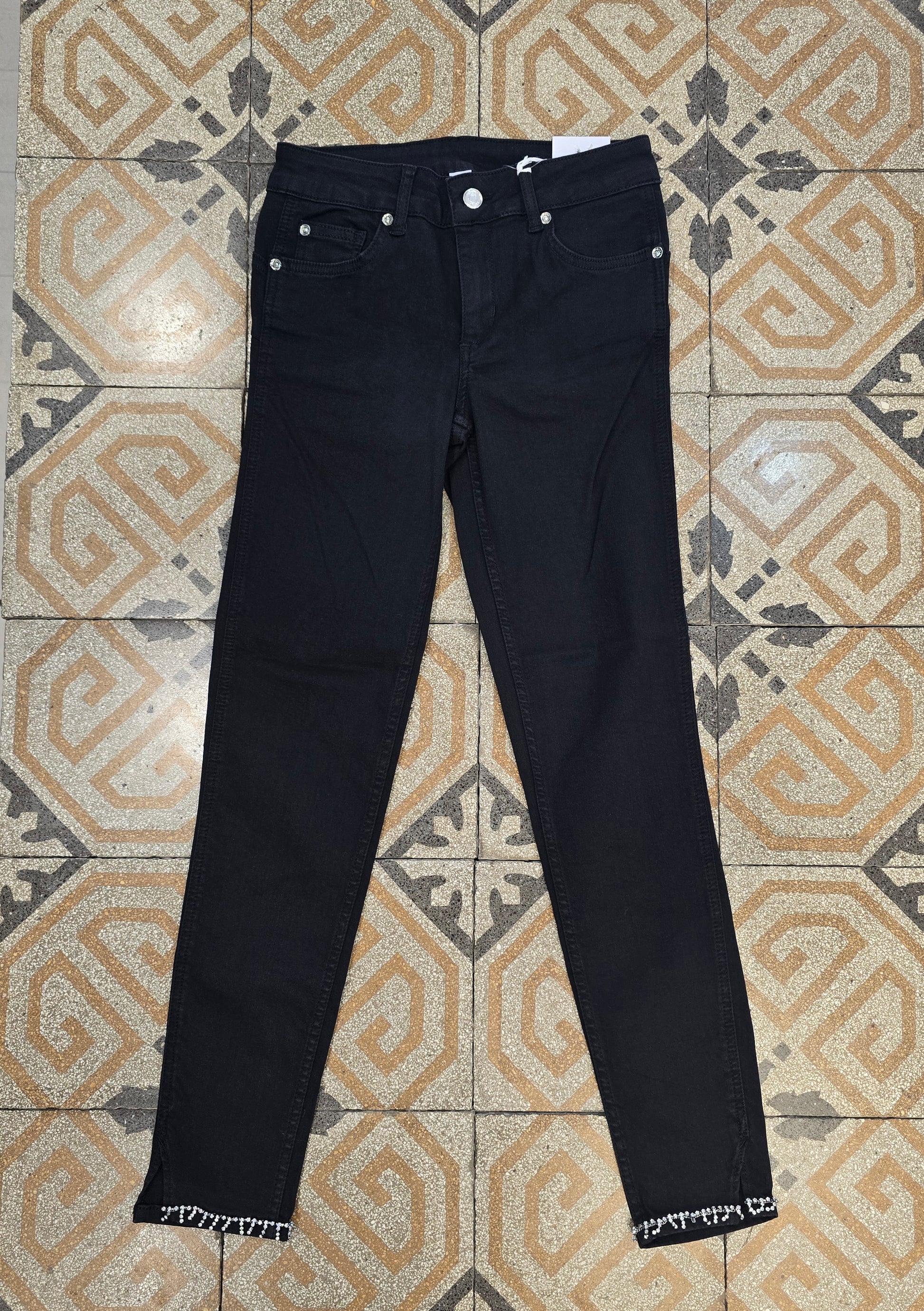 Jeans Elasticizzato Skinny Nero Strass Applicati Orlo Taglia 27