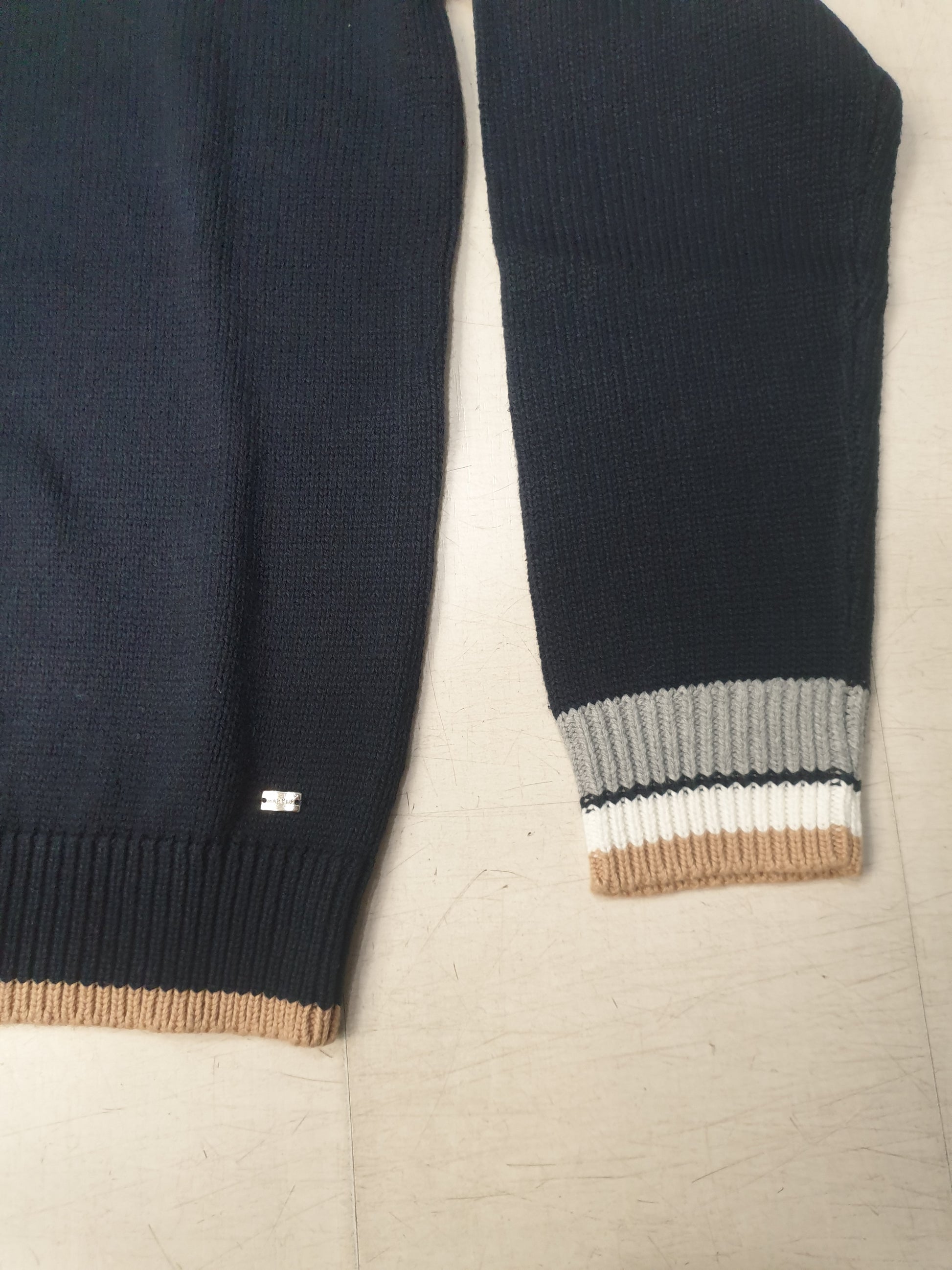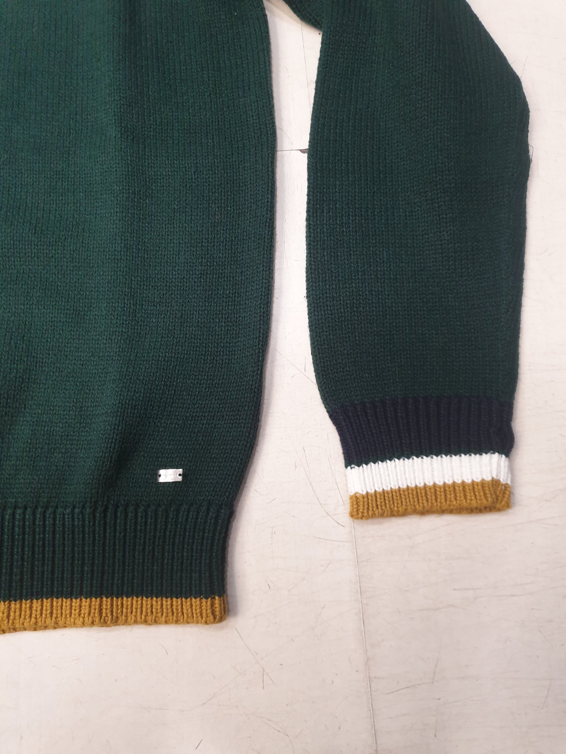 Maglia paricollo in cotone e lana modello con bordature a contrasto sui polsi cinturino e collo