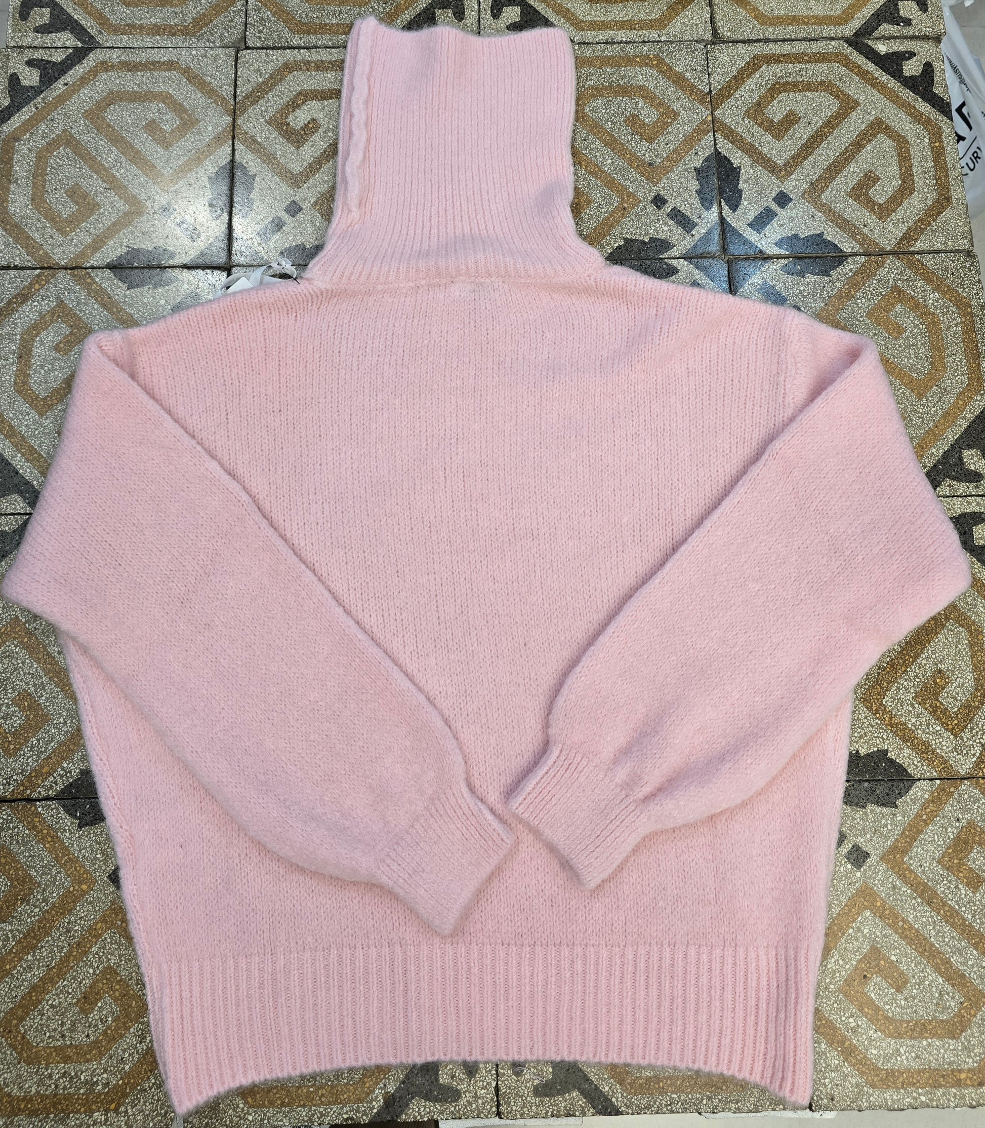 Maglia a collo alto in misto lana e Alpaca molto calda modello in taglia unica con vestibilità comoda proposta nei colori pastello giallo e rosa