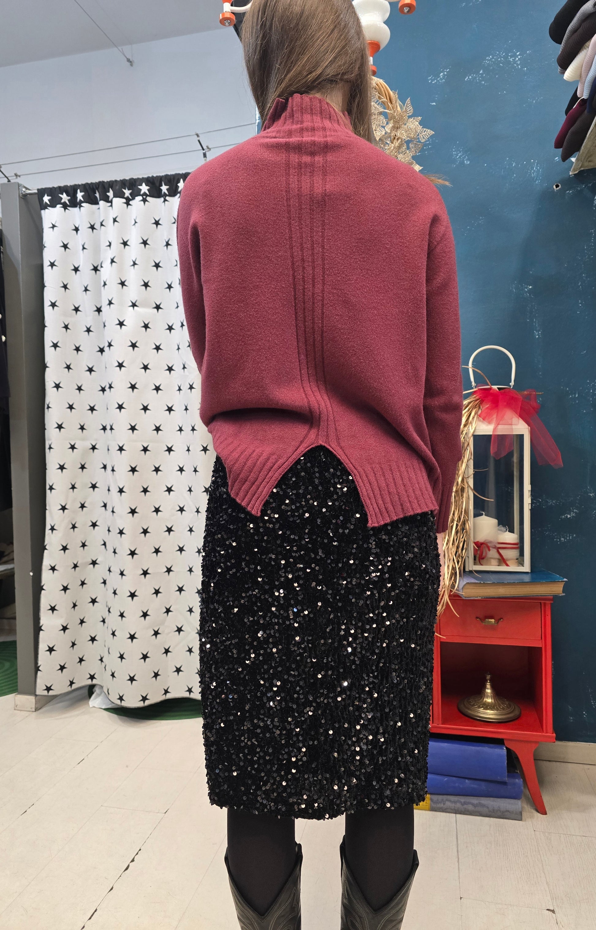 Maglia in calda e morbida viscosa modello a dolcevita con cannettatura nel collo nei polsi e nell'orlo e spacco dietro taglia unica con vestibilità larga